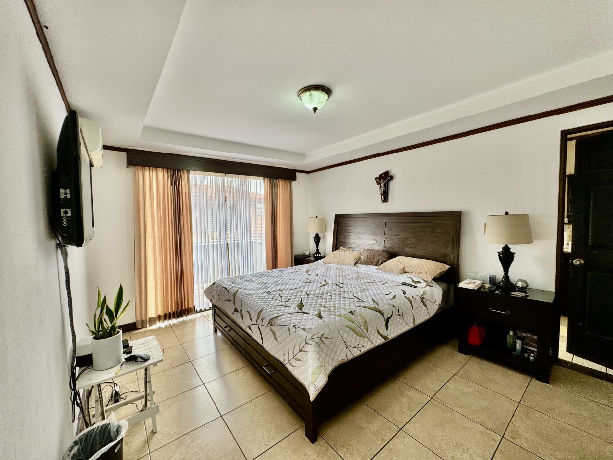 La habitación principal cuenta con un amplio walk-in closet para satisfacer todas tus necesidades de almacenamiento, mientras que el balcón te invita a disfrutar de las vistas serenas del entorno.