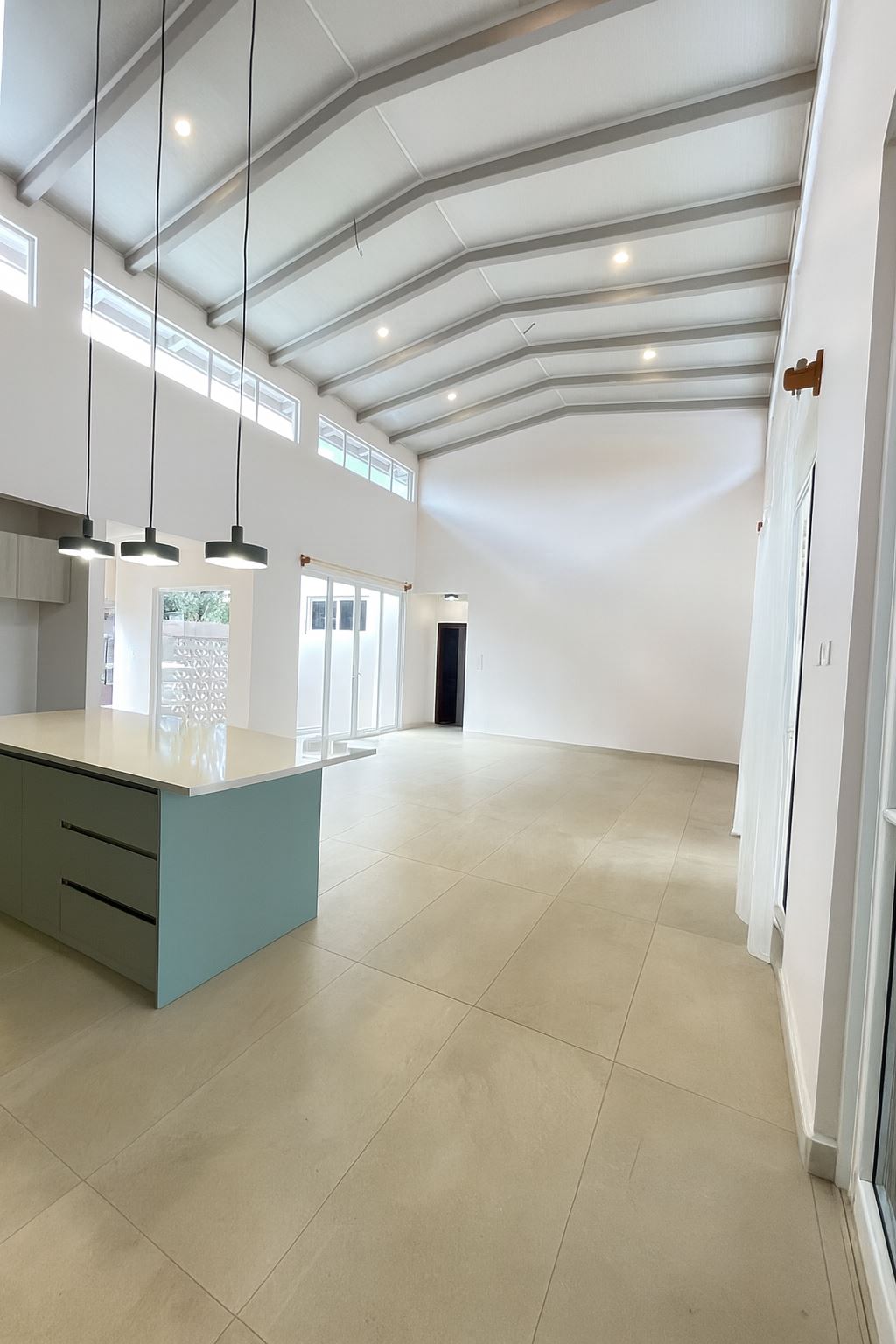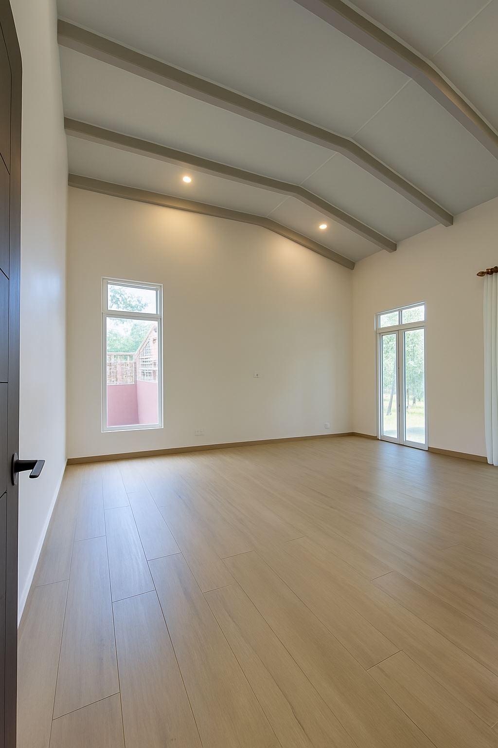 Cathedral-style high ceilings for improved airflow and a modern touch.
