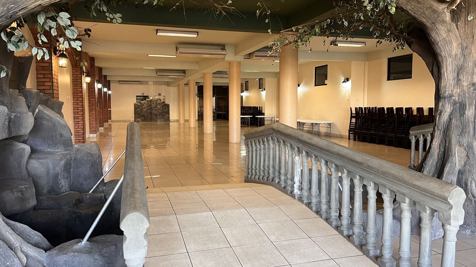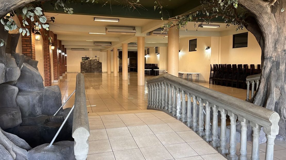 Primer nivel: dos amplias áreas interconectadas, cocina industrial, barra de preparación de bebidas, 2 baterías de baños y doble acceso al segundo nivel.