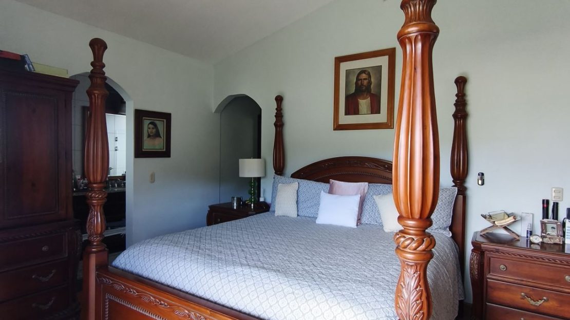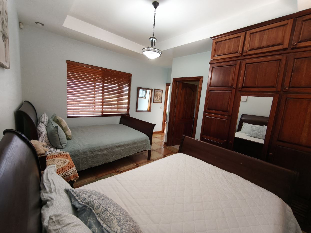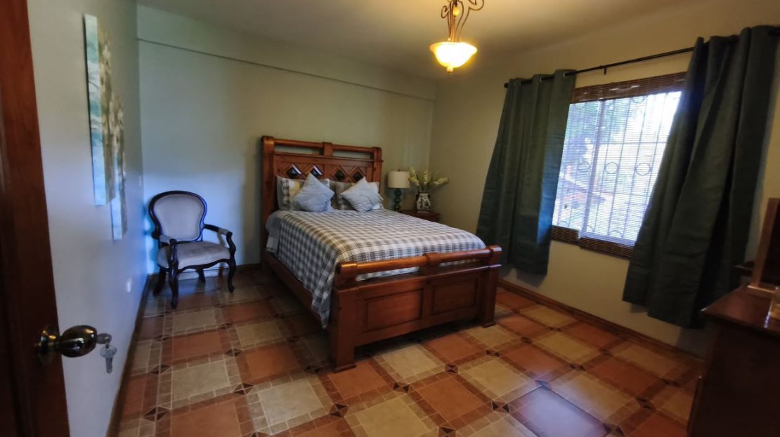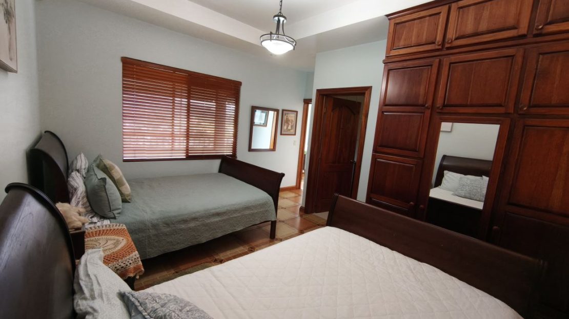 La casa cuenta con 3 habitaciones y 2.5 baños. El dormitorio principal corresponde a una master suite que integra walking closet, baño y sanitario privados, y un balcón con vistas abiertas hacia la montaña y la ciudad de San Pablo de León Cortés. Una segunda habitación funciona también como suite, con baño privado, sanitario independiente y tina de baño. La tercera habitación es de uso sencillo y complementario.