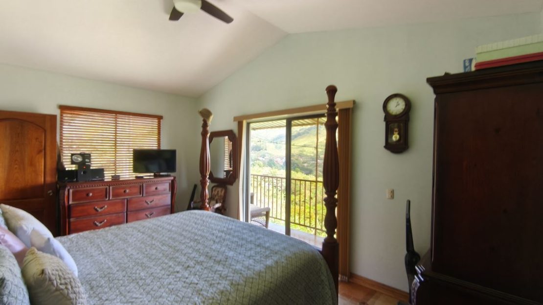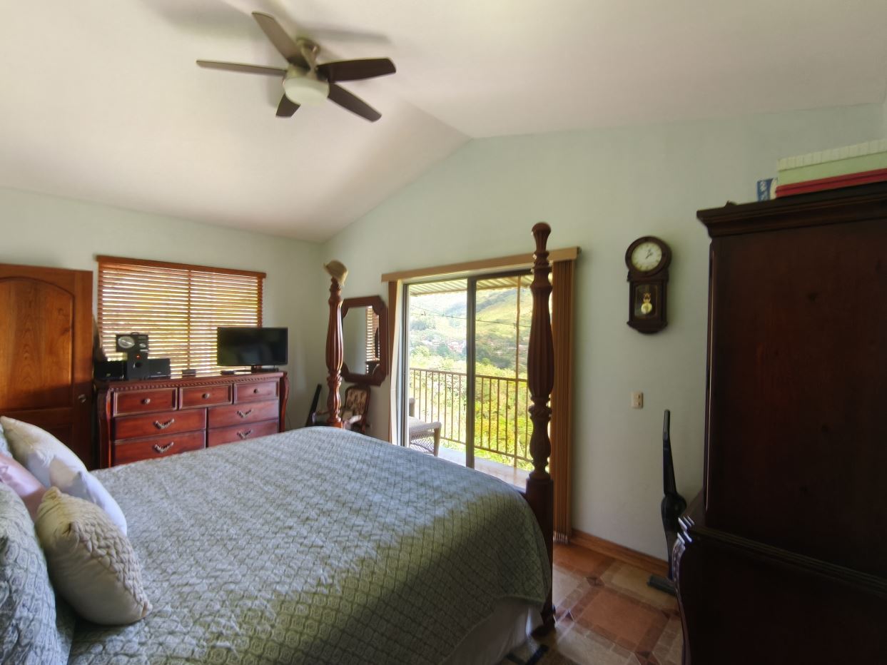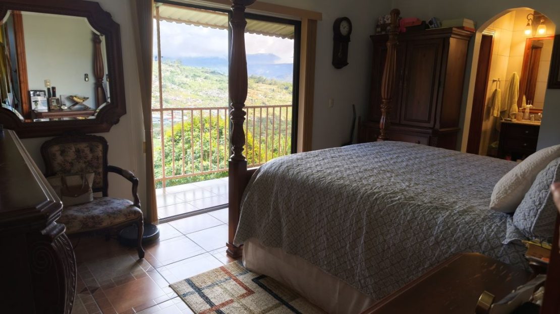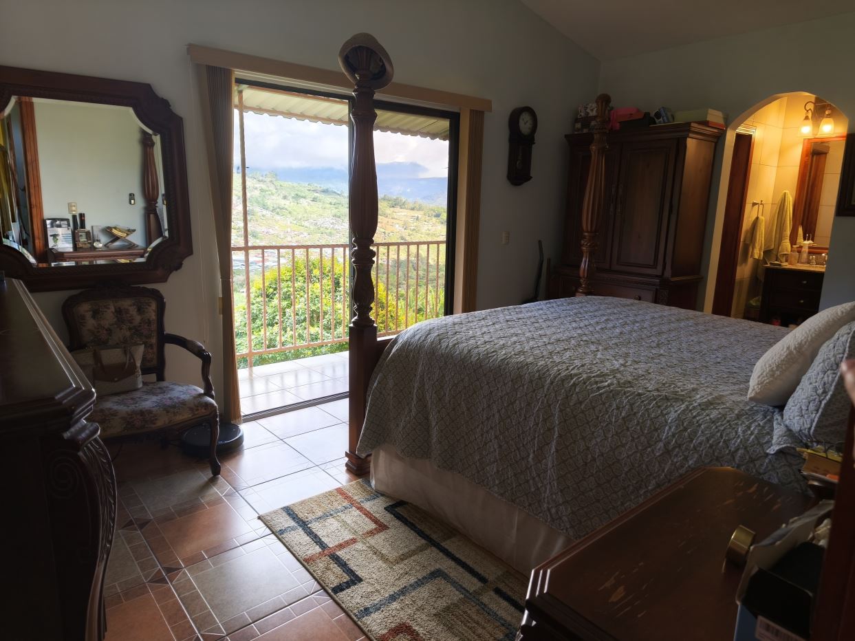 The house includes 3 bedrooms and 2.5 bathrooms. The master bedroom is a true master suite, featuring a walk-in closet, private bathroom and toilet, and a private balcony with open views of the surrounding mountains and the city of San Pablo de León Cortés. A second bedroom also functions as a suite, with a private bathroom, separate toilet, and a bathtub. The third bedroom is a standard room, suitable for family members, guests, or flexible use.