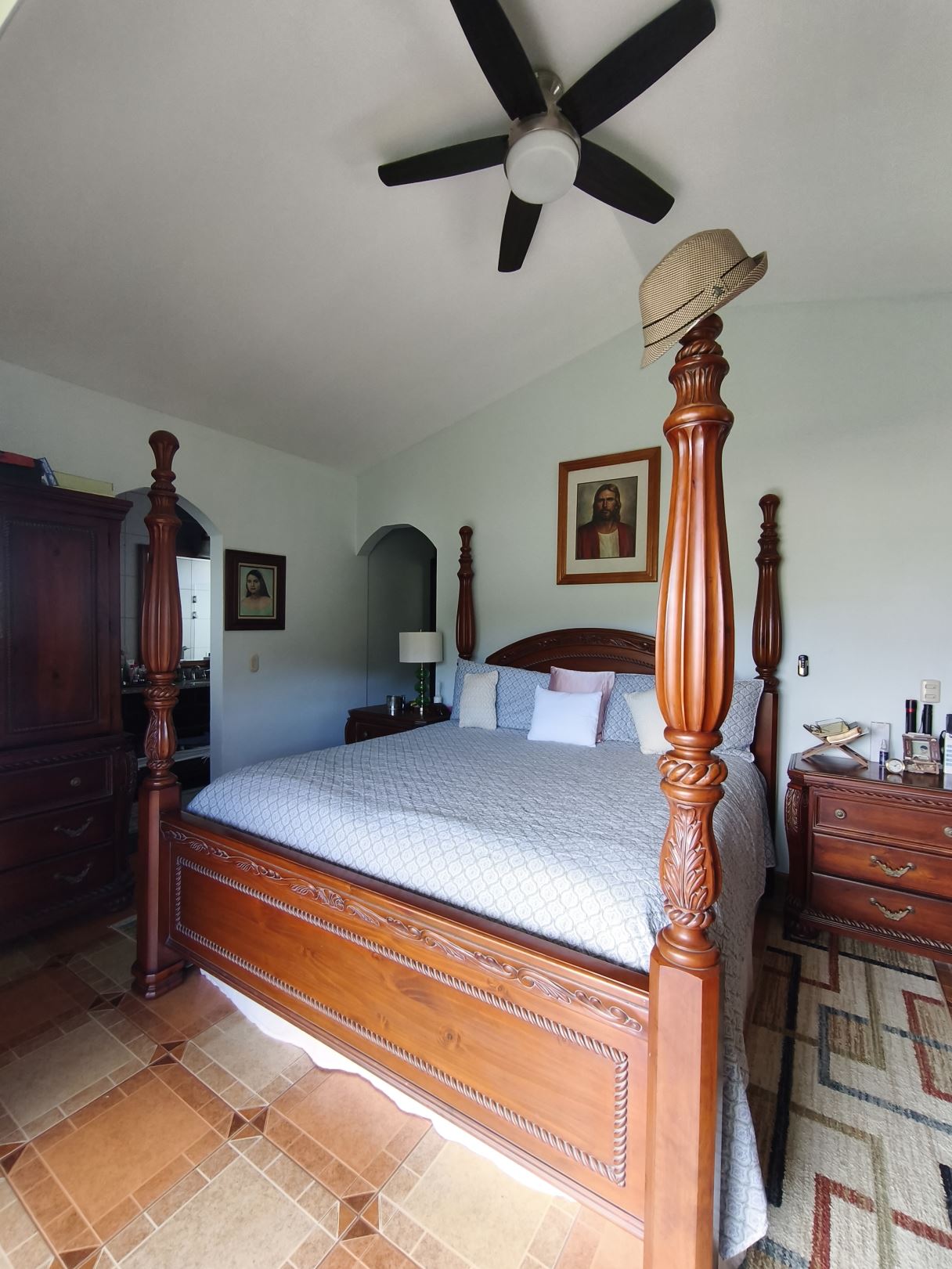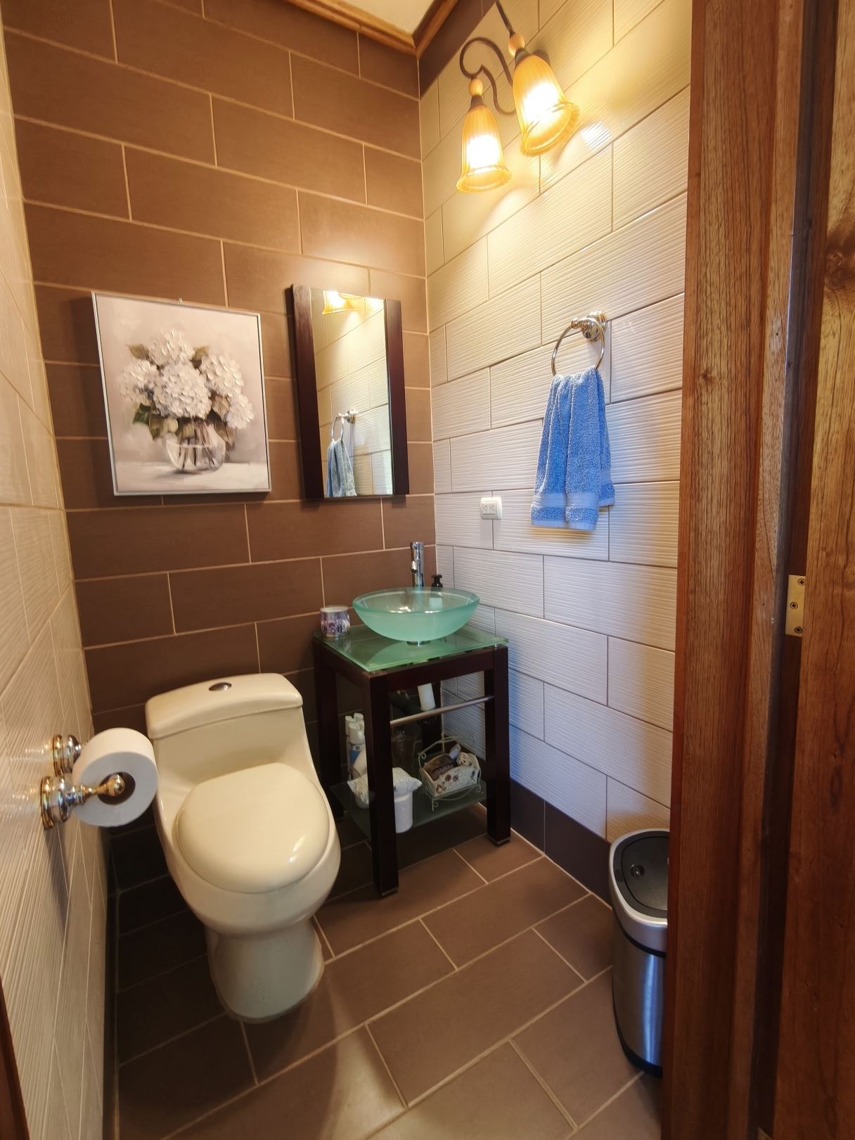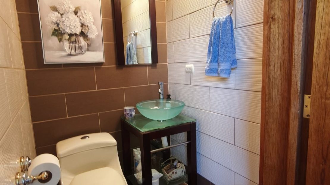The house includes 3 bedrooms and 2.5 bathrooms. The master bedroom is a true master suite, featuring a walk-in closet, private bathroom and toilet, and a private balcony with open views of the surrounding mountains and the city of San Pablo de León Cortés. A second bedroom also functions as a suite, with a private bathroom, separate toilet, and a bathtub. The third bedroom is a standard room, suitable for family members, guests, or flexible use.