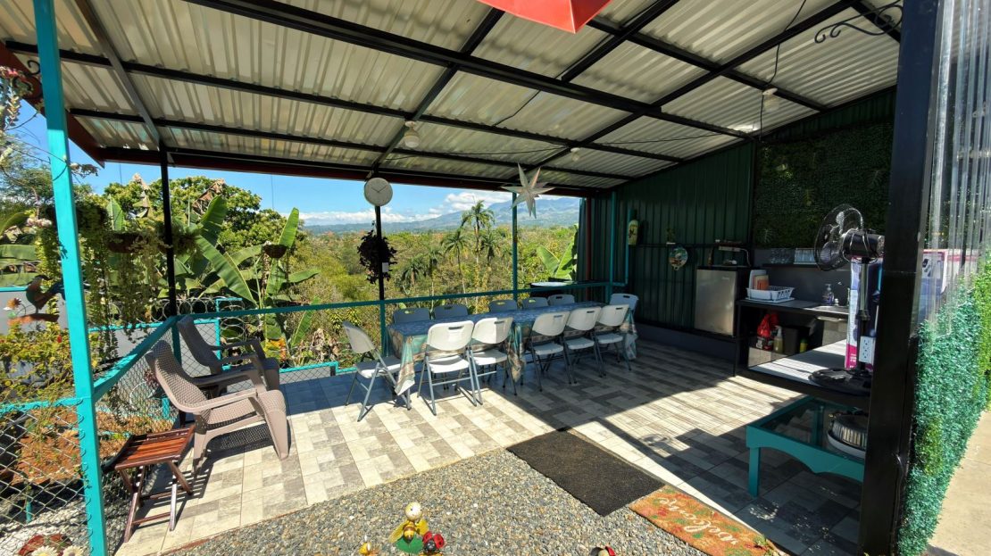 Esta propiedad residencial en venta en Pérez Zeledón cuenta con 883 m² de lote y 150 m² de construcción. Dispone de espacios internos cómodos, terraza con vista, área social exterior techada y amplias áreas verdes que brindan privacidad y un ambiente tranquilo.