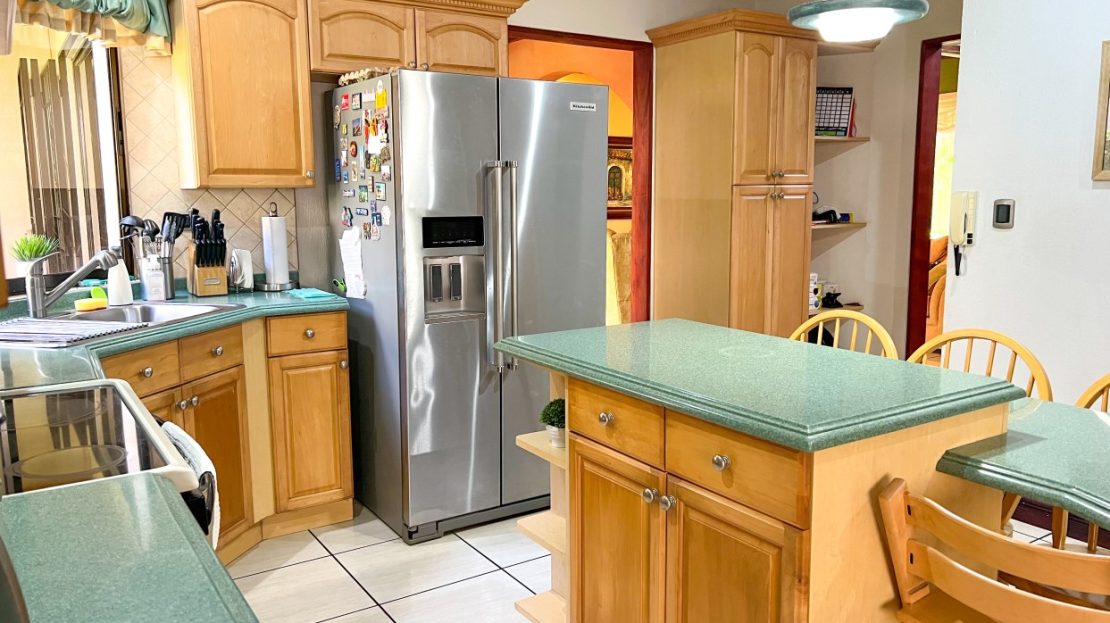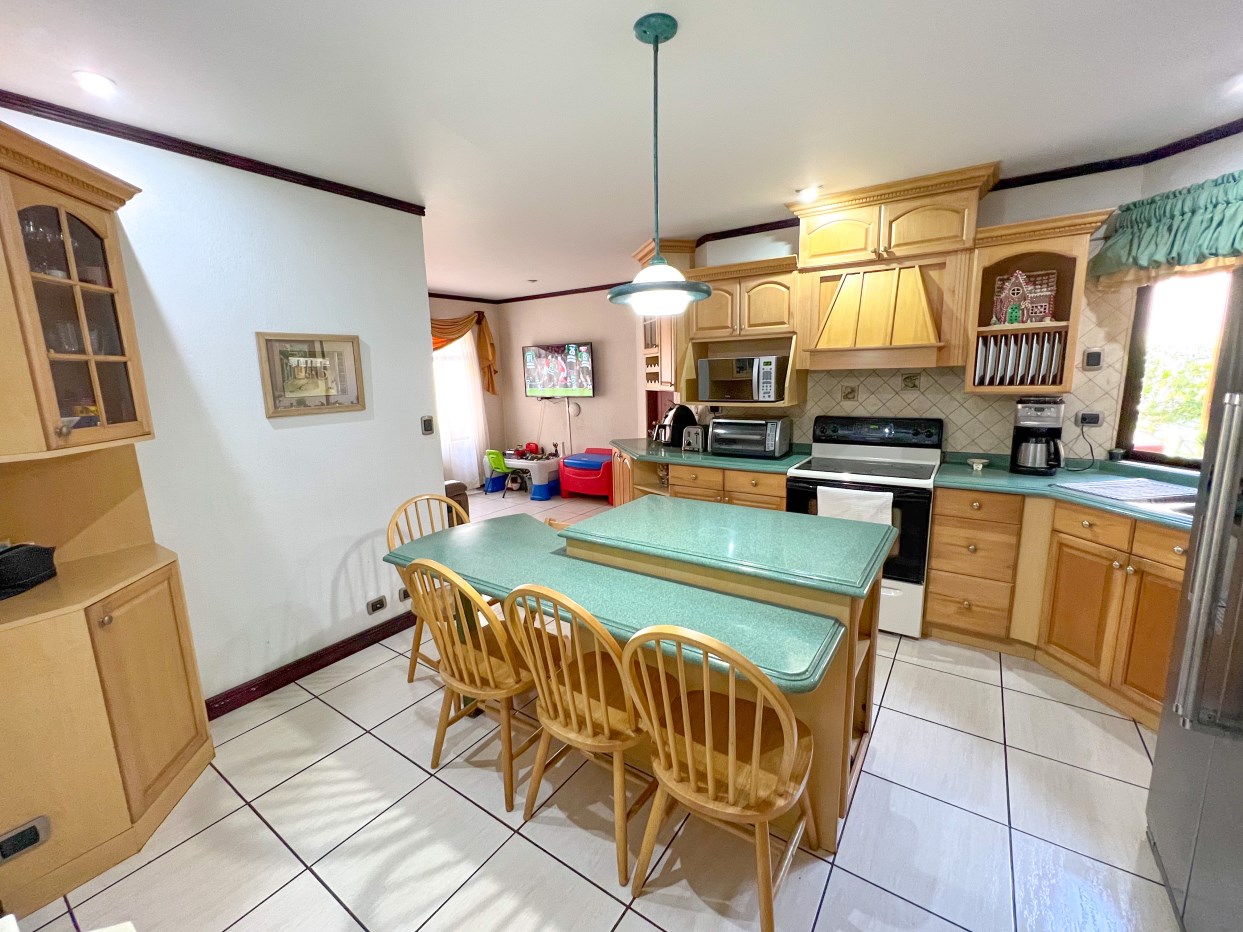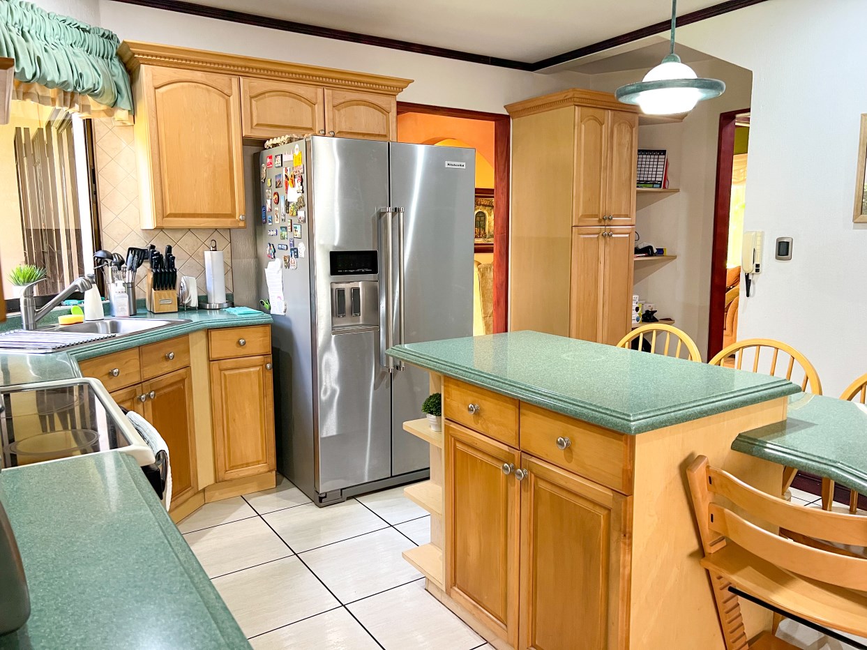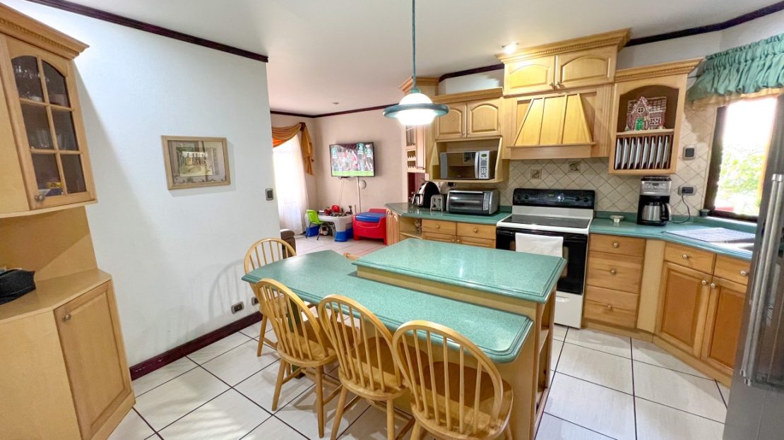 Kitchen with ample space for cooking and dining, integrated with ample cabinetry for storage, this kitchen easily brings together cooking, socializing, and lounging.