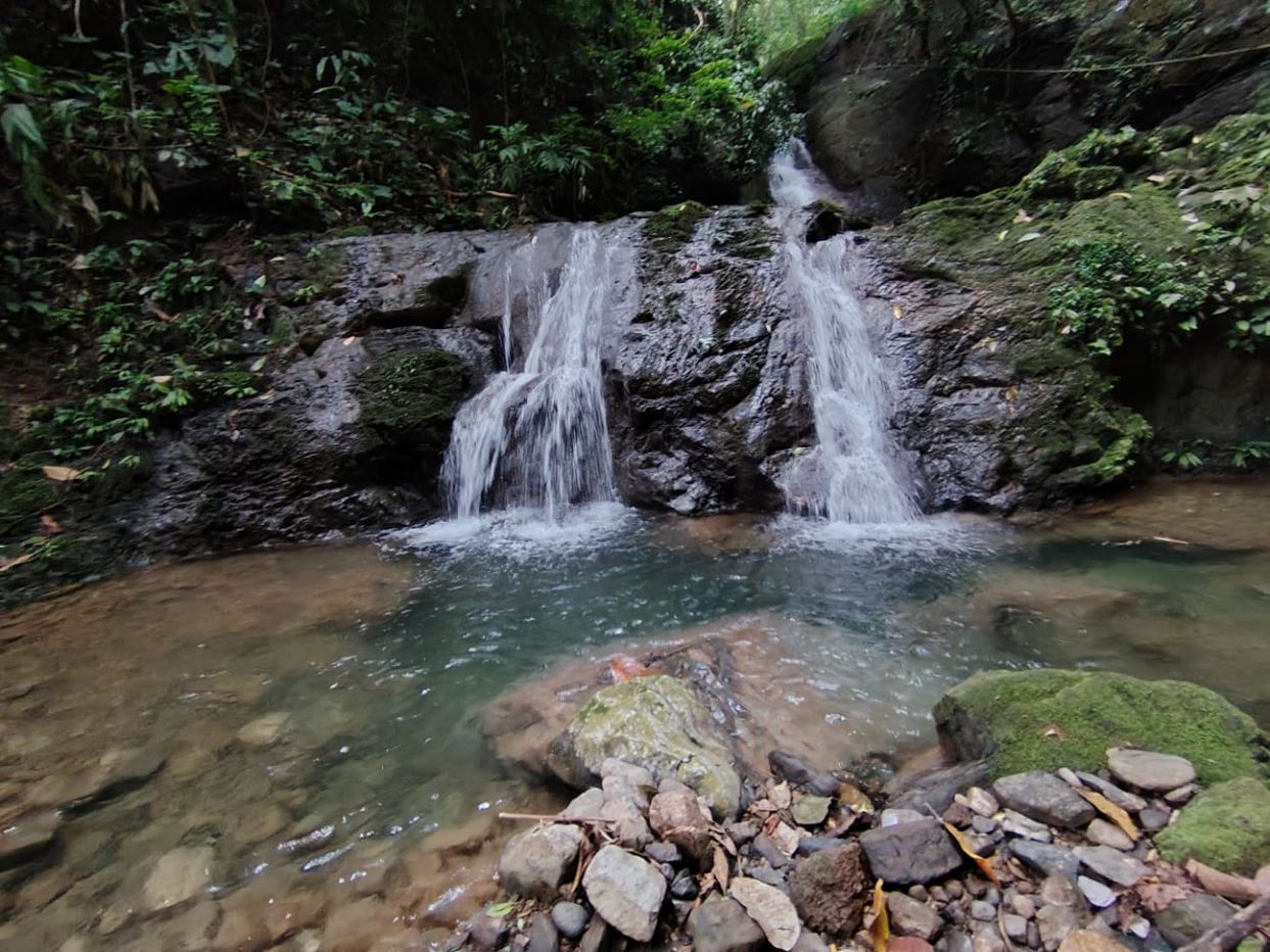 Colinda con una impresionante cascada y catarata de aguas azules y cristalinas