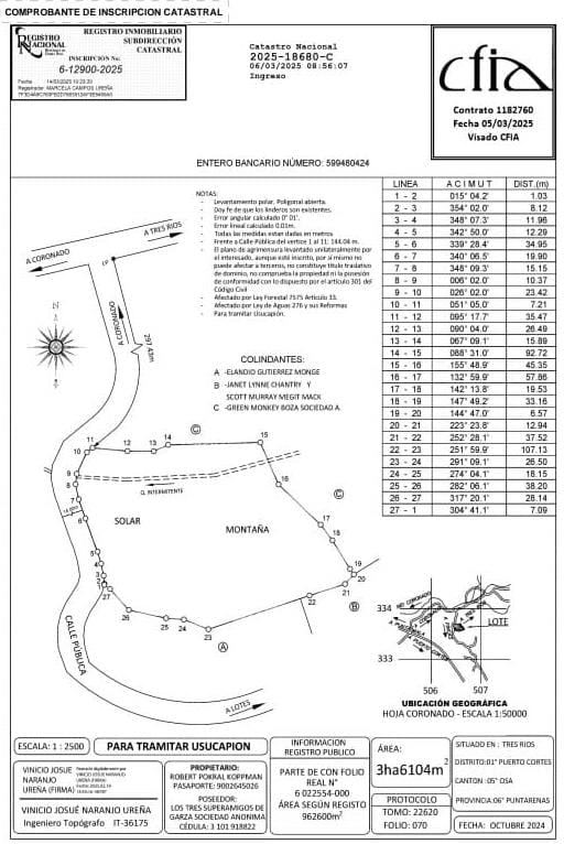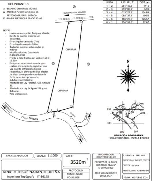 These 4.7 hectares in Coronado de Osa are a true natural paradise. Waking up each day to the songs of toucans, macaws, and countless tropical birds, while listening to the constant flow of water in the creeks, immerses you in the rainforest’s pure essence. From the highest points of the property, you can enjoy spectacular ocean views, a rare luxury in the region. The land combines tranquility, biodiversity, and development potential, offering the opportunity to create a private estate, sustainable tourism project, or strategic investment in the Osa Peninsula. Every corner invites you to live in harmony with nature and fully embrace the beauty and resources of this incredible region.