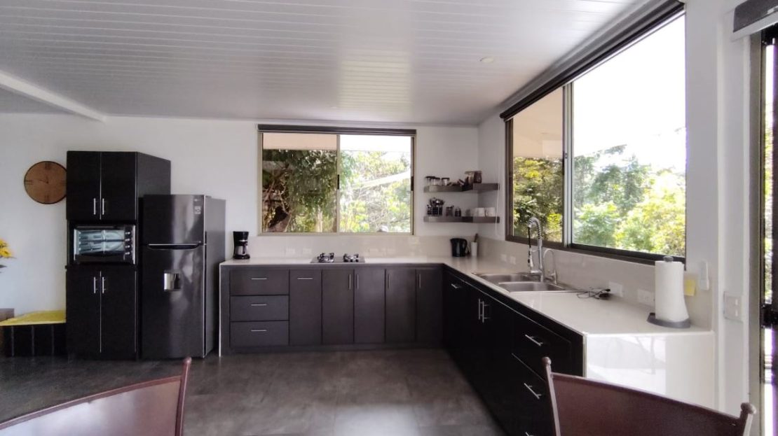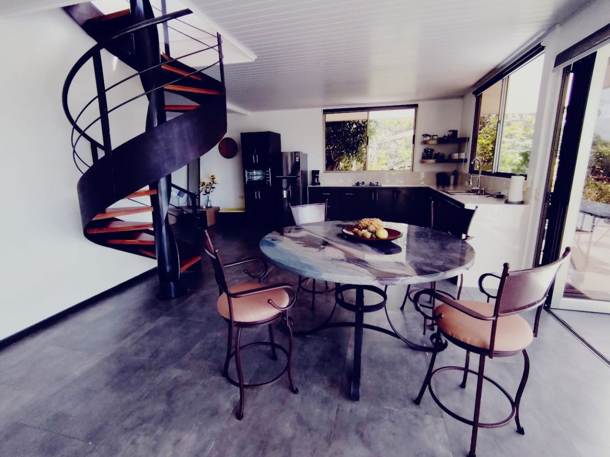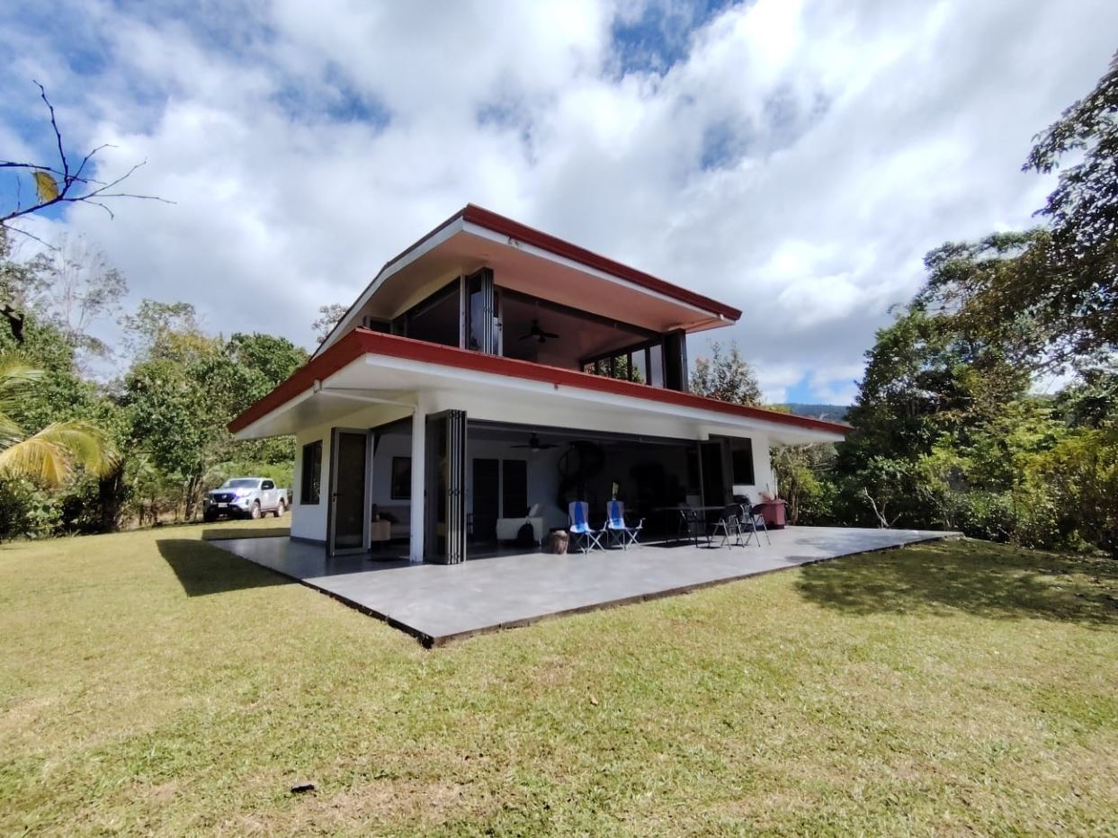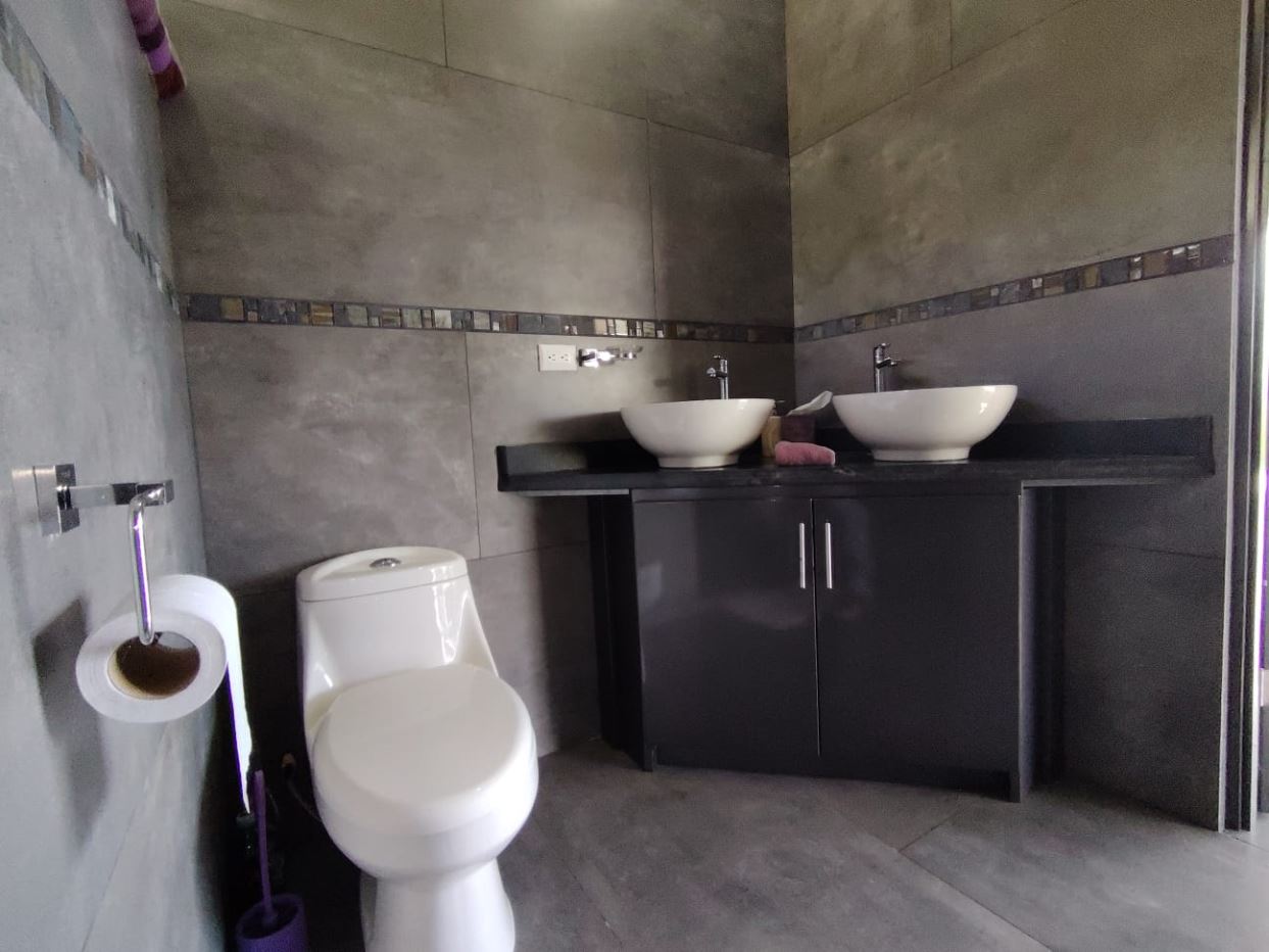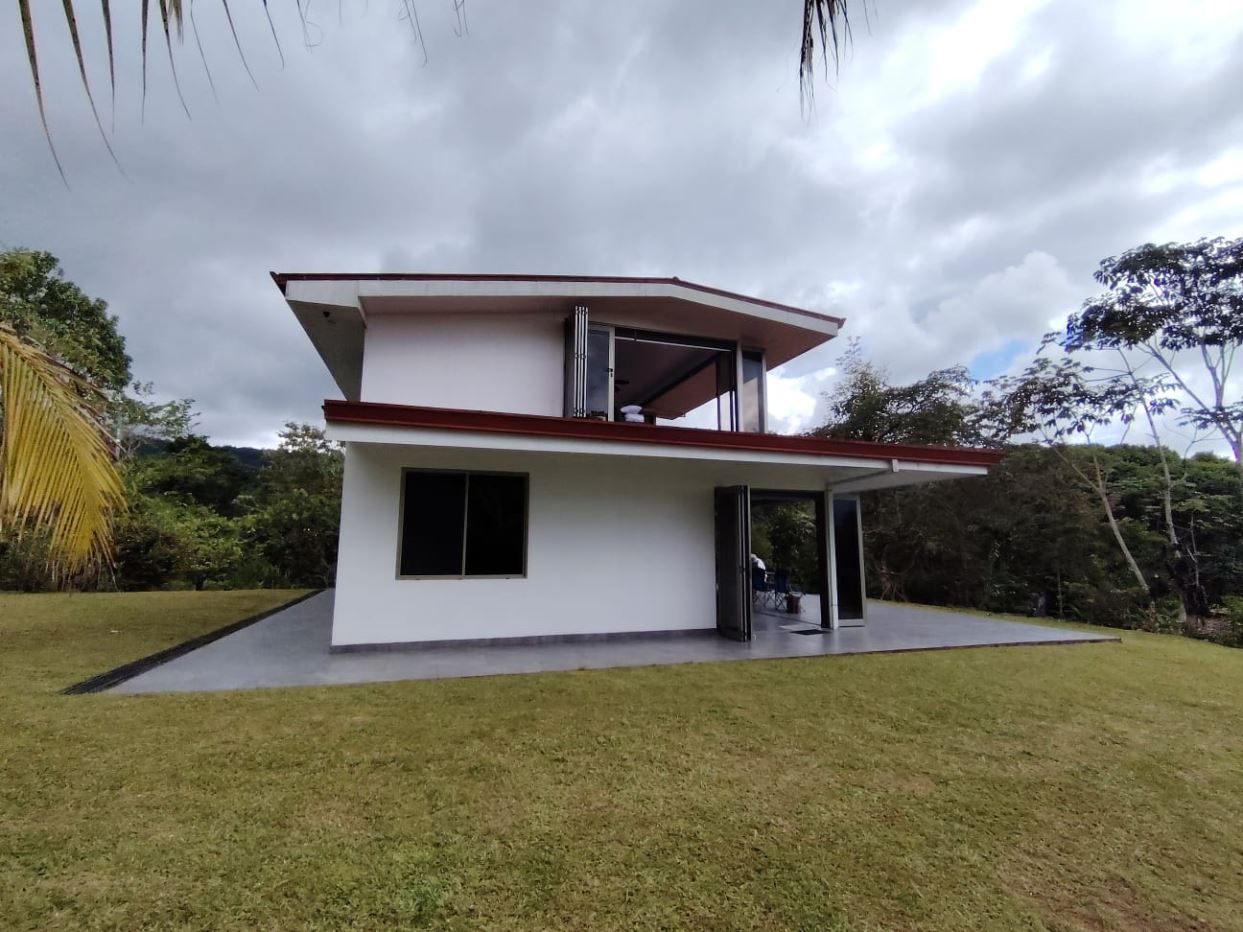 Beautiful kitchenFull bathroom on the main levelCustom staircase with high-quality finishesLaundry area with washer and dryer, discreetly integratedSeparate rancho surrounded by vegetation, ideal for gatherings or relaxationDecorative fountain frequented by birdsUpper level primary bedroomSpacious full bathroom on the second floorHigh-end windows with full opening and electric blindsLocated 25 minutes from San Isidro del General, offering hospitals, shopping, banking, and servicesLocated 25 minutes from Dominical Beach and the Pacific CoastClose to national parks, waterfalls, and major tourist attractions