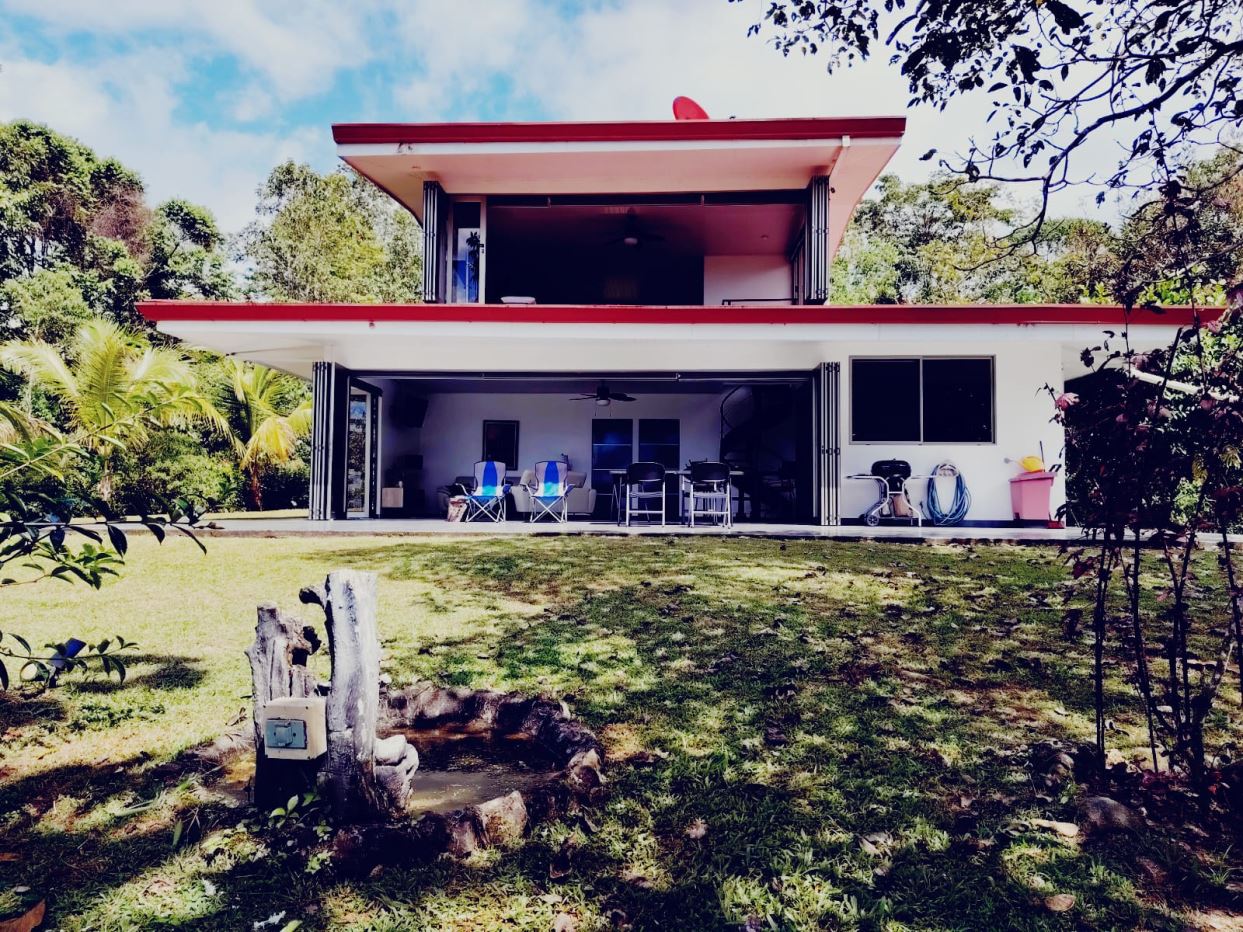 Two-story home offering two distinct living environmentsOcean viewsSurrounded by fruit trees and abundant wildlifeDaily presence of birds including hummingbirds, toucans, and other speciesPrivate creek located within the property boundariesMultiple waterfall-style cascadesMain floor with large-format windows that fully openSeamless integration between indoor spaces, terrace, and natural surroundings