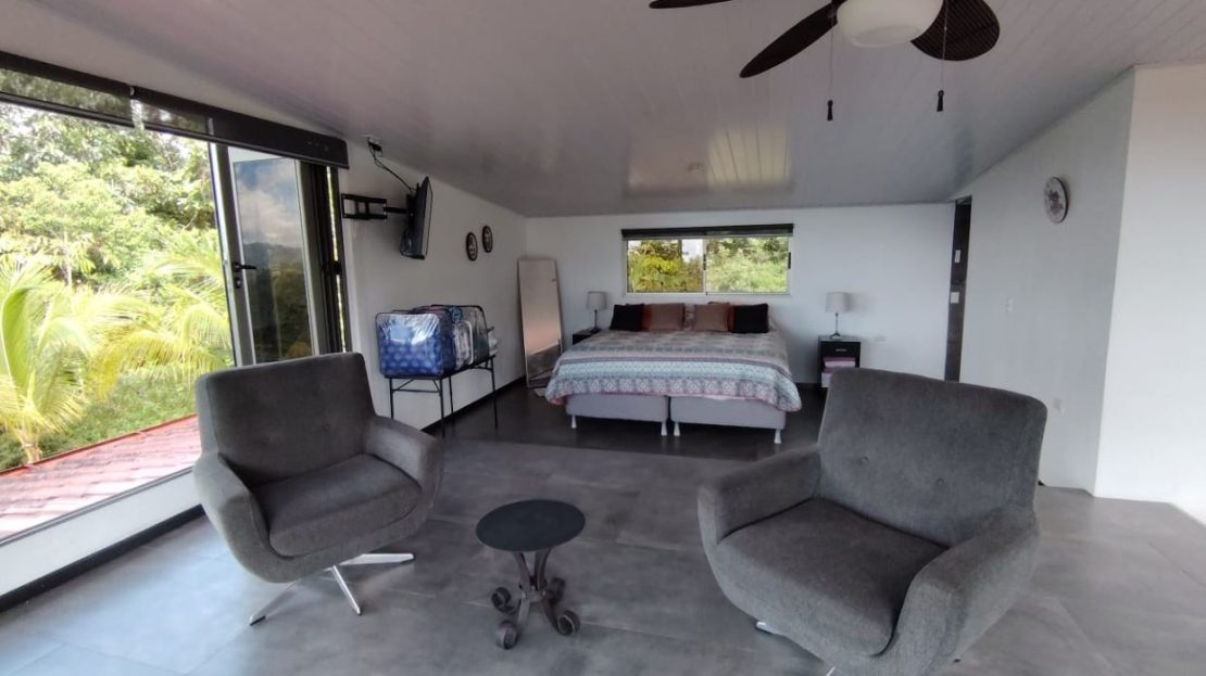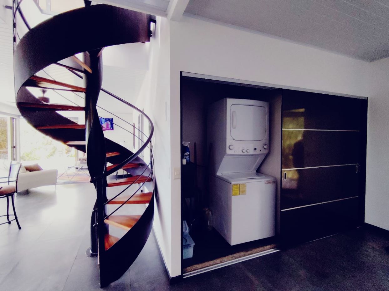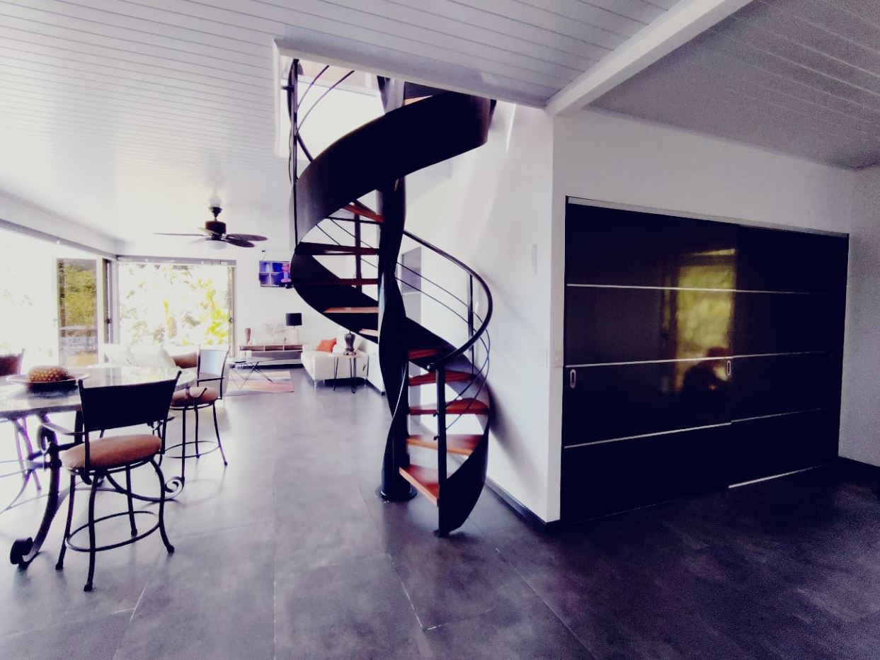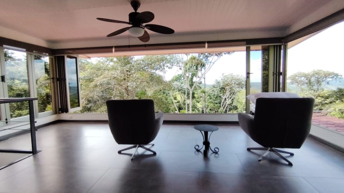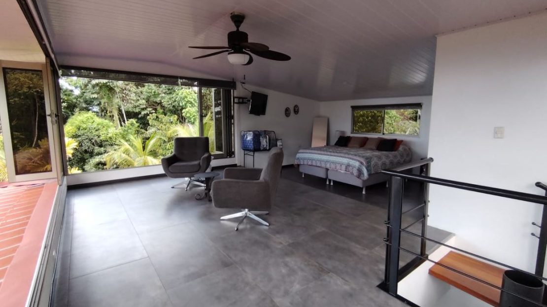 Incluye muebles del dormitorio ubicado en la planta bajaEscalera con acabados finos y diseño detalladoÁrea de lavado con lavadora y secadora, integrada de forma discretaRancho independiente rodeado de vegetación, ideal para reuniones, lectura o actividades socialesFuente decorativa utilizada por las avesSegunda planta con dormitorio principalBaño amplio y completo en la planta altaVentanas de alta gama con apertura total y persianas eléctricasA 25 minutos de San Isidro del General, donde se encuentran hospitales, comercios, bancos y todos los serviciosA 25 minutos de Playa Dominical y la costa pacíficaCercano a parques nacionales, cataratas y atractivos turísticos de la zona
