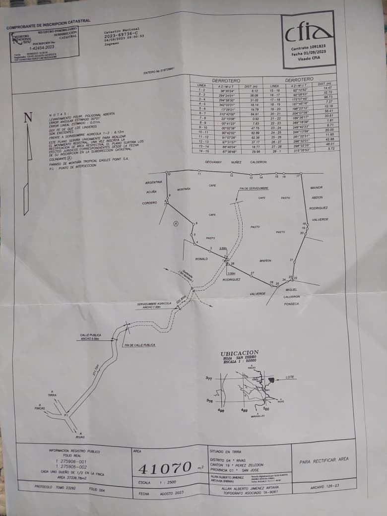 Este terreno de 4.1 hectáreas (41,070 m²) en Tirrá de Rivas ofrece un entorno natural excepcional, clima fresco de montaña y privacidad total, ideal para quienes buscan un refugio tranquilo o un proyecto ecológico en Pérez Zeledón.