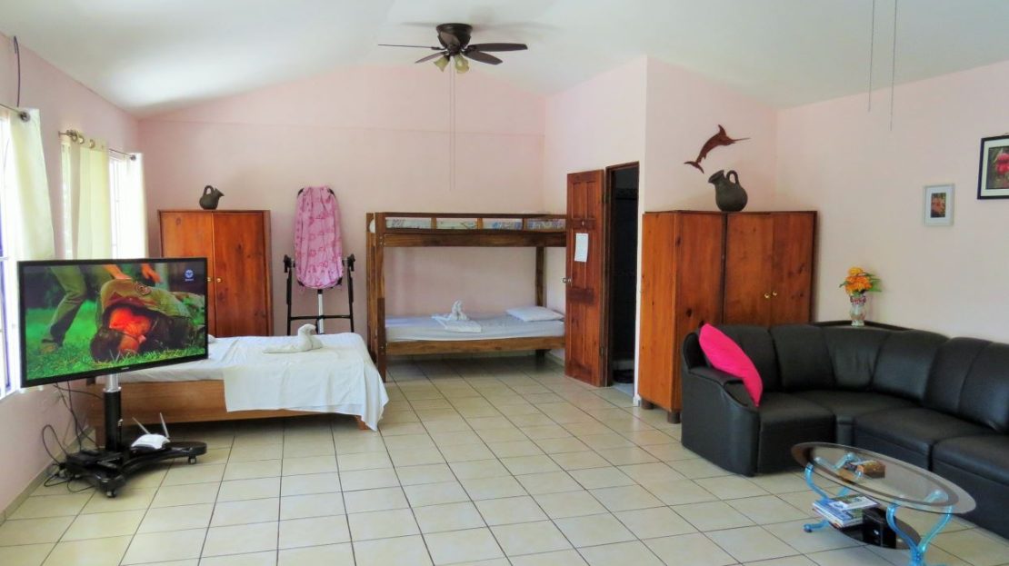 The building offers two floors – the first floor consists of three self-contained hotel units that include beds, toilet & shower, A/C, table, TV, bar fridge and a kitchenette with a sink and various cooking appliances. The second floor is dedicated to a large 2-bedroom and 2-bath penthouse. The penthouse holds, amongst others, a fully equipped kitchen with a full-sized fridge, an L-lounge, big screen TV, cabinets & furniture, multiple beds & bunkbeds, and dining & coffee tables.