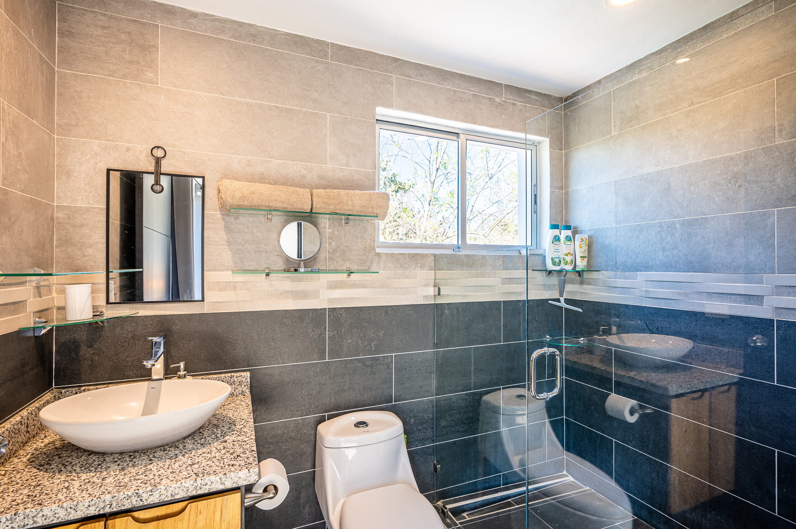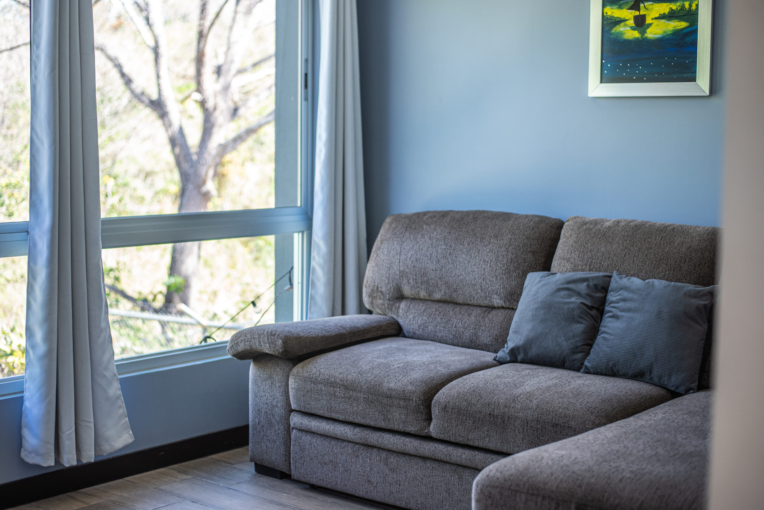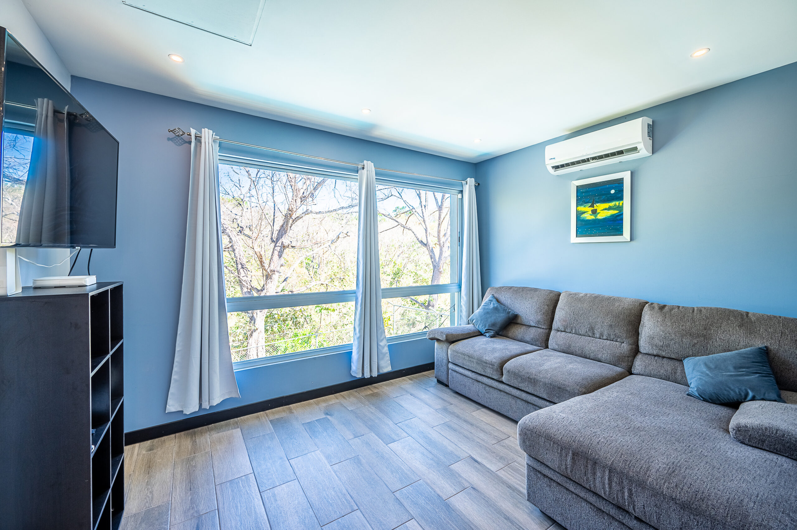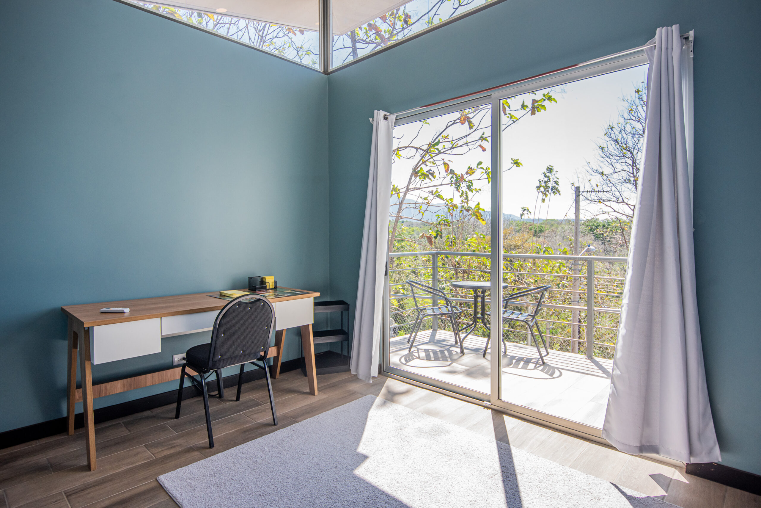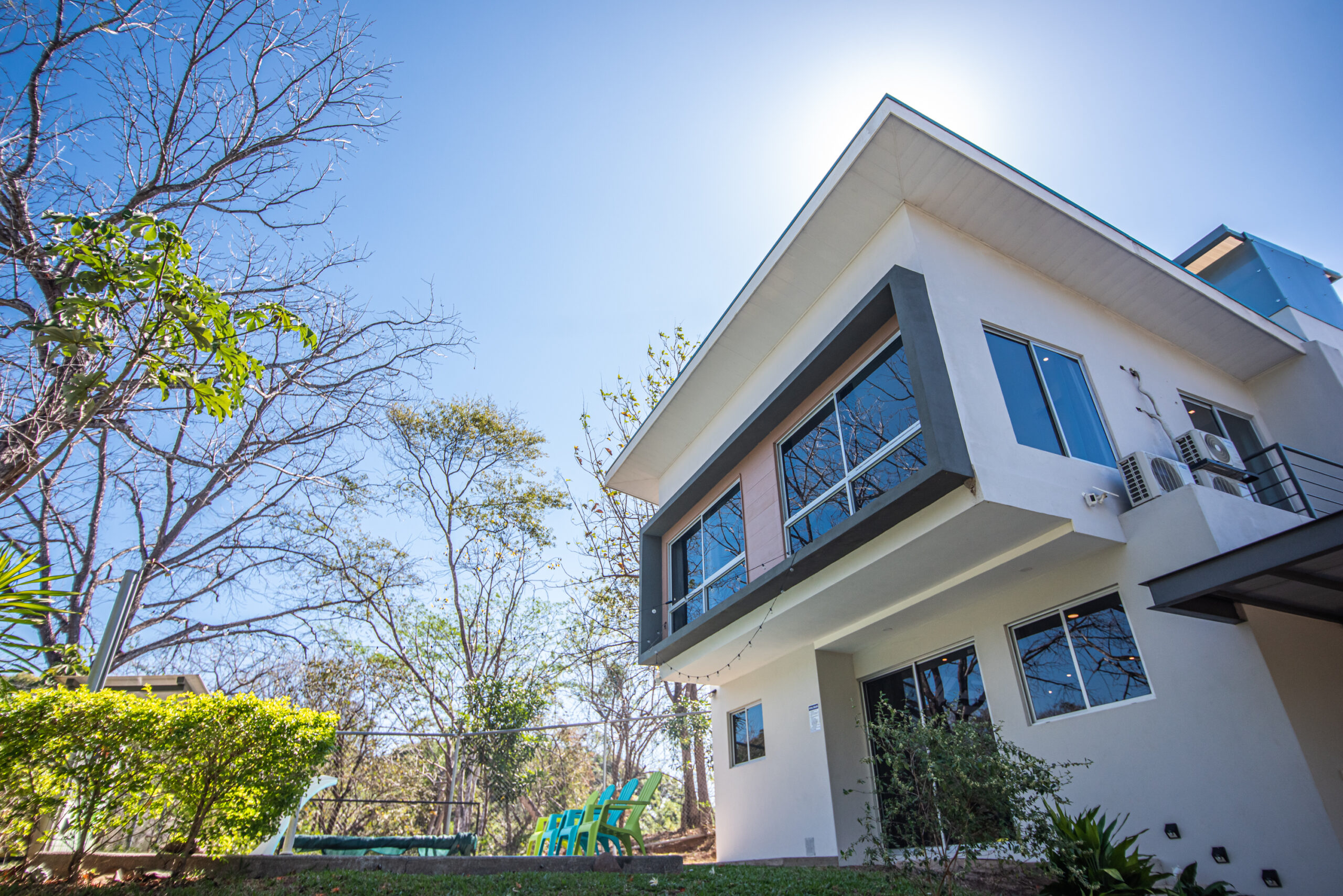 Casa Carara is fully furnished with Sarchí carved wooden furniture, sofas, Queen and King beds, dining set for 6 people, refrigerator, built-in electric stove, dishwasher, microwave, laundry center, lamps, air conditioning, barbecue grill and security system with camera. All finishes are luxurious