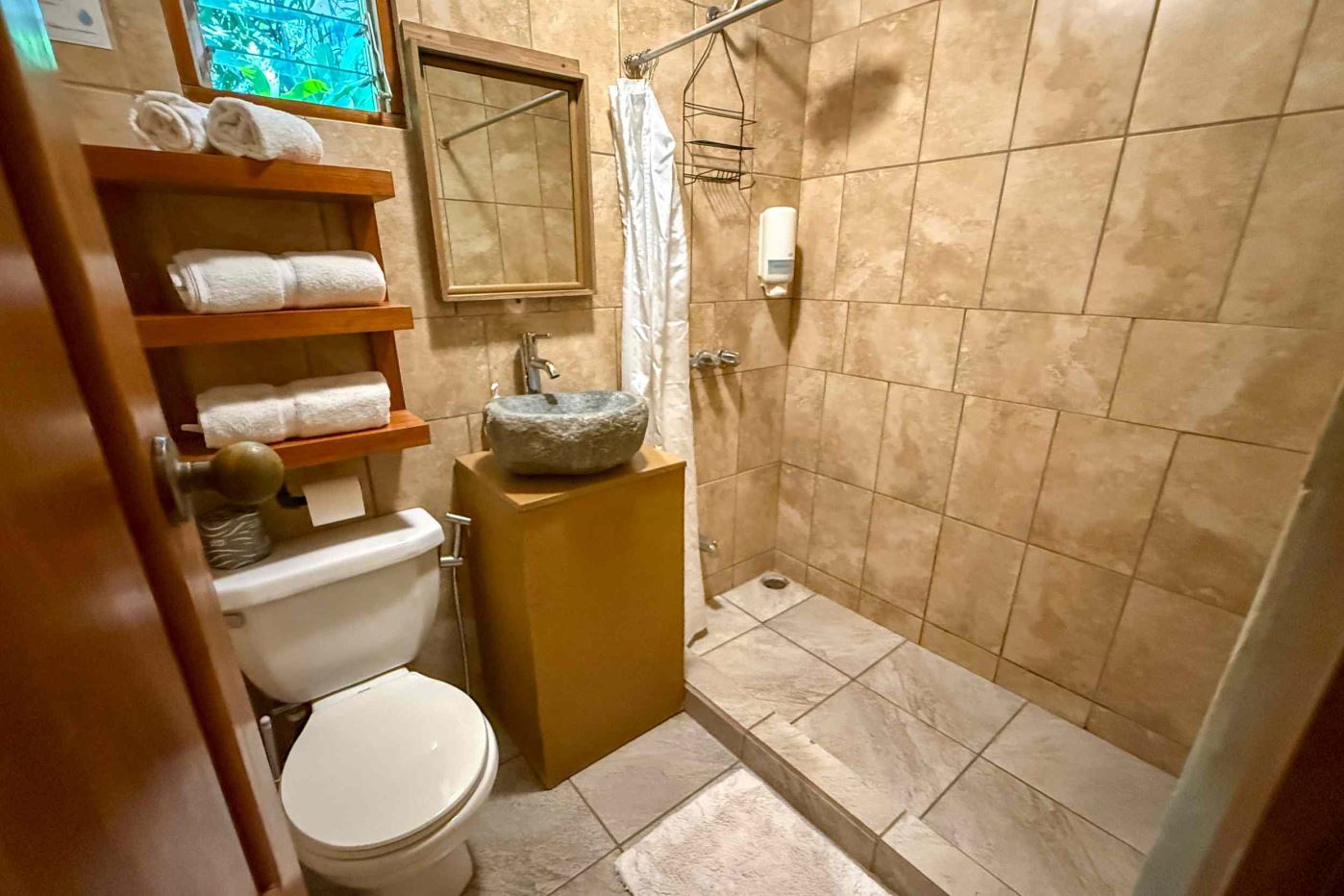 Picture yourself managing a local hotel where sloths move slowly through the canopy above your guests’ cabins while hummingbirds dart between flowering heliconias in your landscaped gardens. The property features 11 bedrooms with varying configurations with air conditioning for guest comfort, each designed to maximize the jungle views and natural cross-ventilation while providing maximum flexibility for travelers. Wood and tile floors throughout create an authentic Costa Rican ambiance while remaining practical for daily operations.