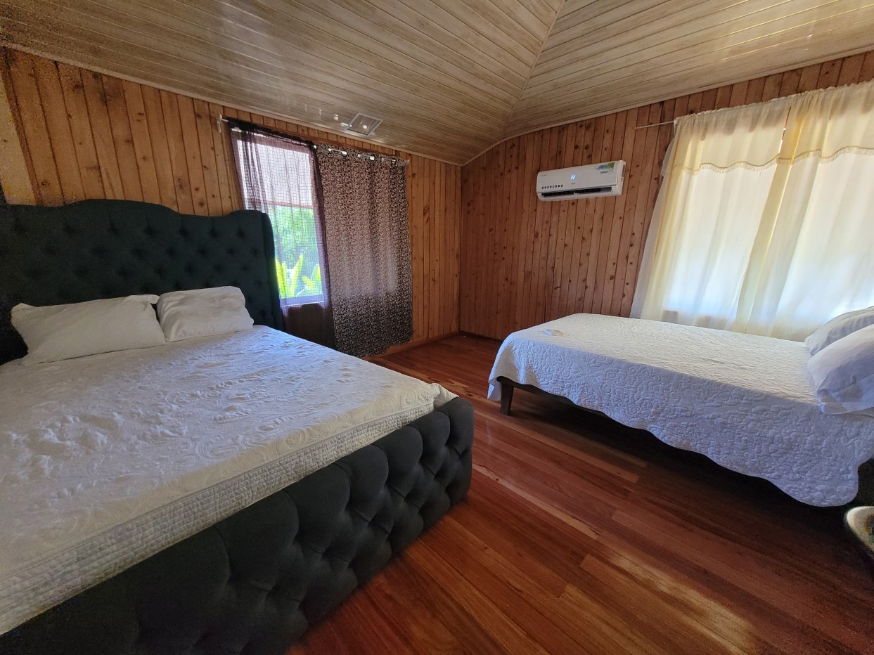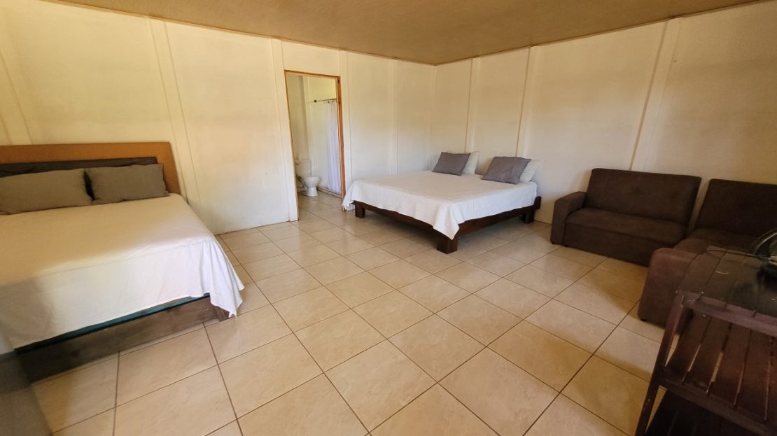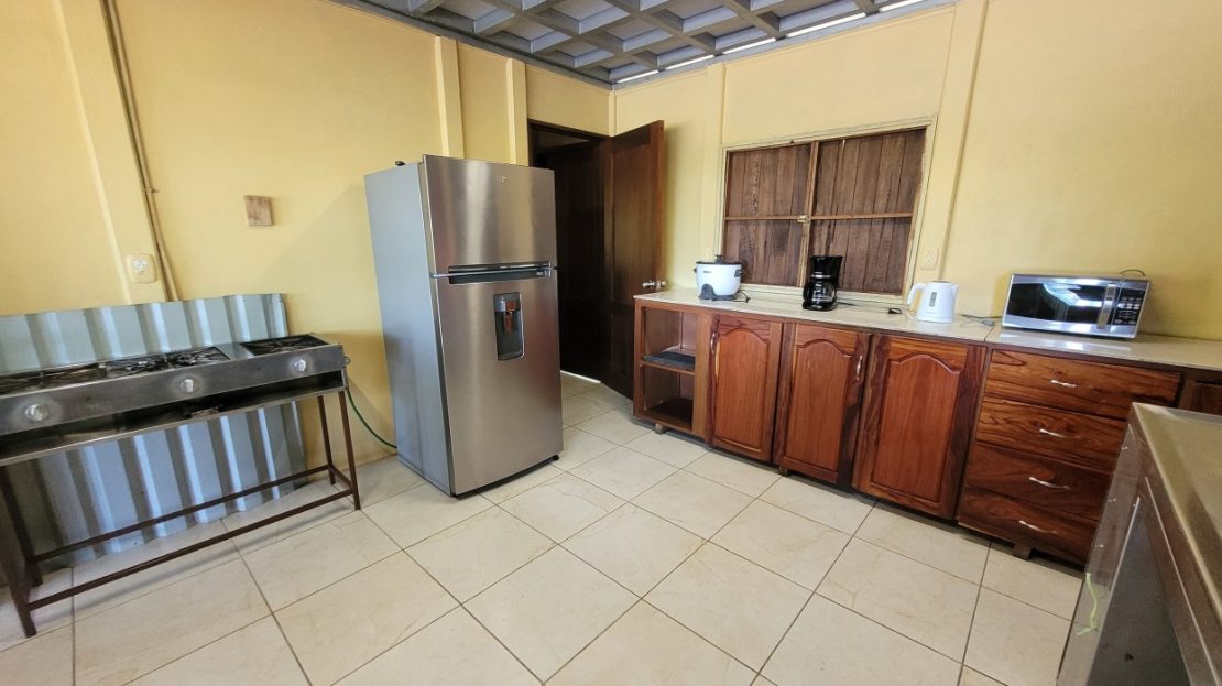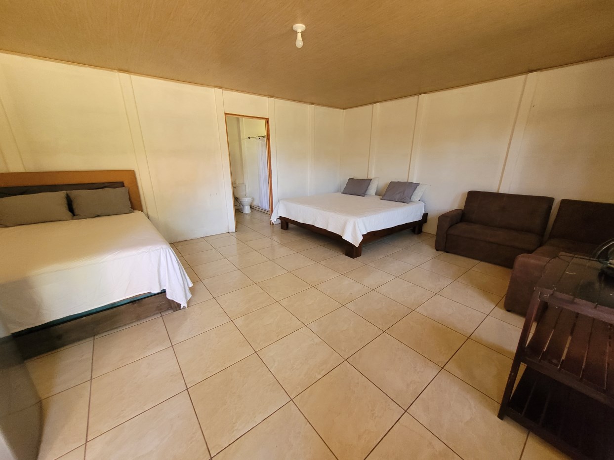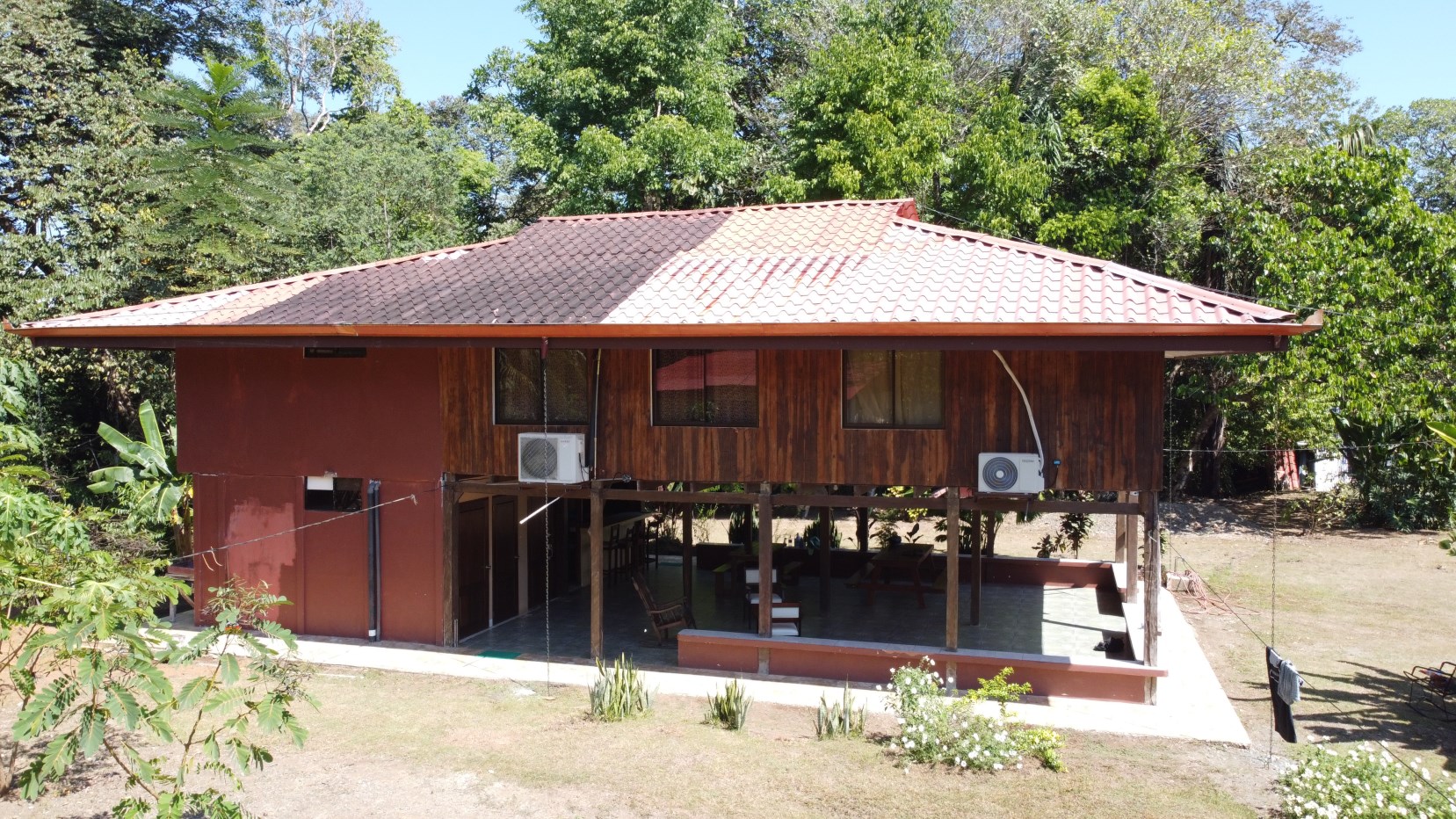 The main house is two-storeys, and 390m2 of space. At the ground floor you’ll find a spacious lounge, perfect for gatherings, a space for AirBnB guests to relax, or a restaurant business! There is a commercial kitchen, as well as half bath. With its great jungle view, you’ll get regular visits from 3 different types of monkeys. Upstairs you’ll find a covered patio and large living room, and three bedrooms, each with A/C, built in closets, and WIFI. Comfortably sleeps up to 11 people, and beds with quality mattresses are included!