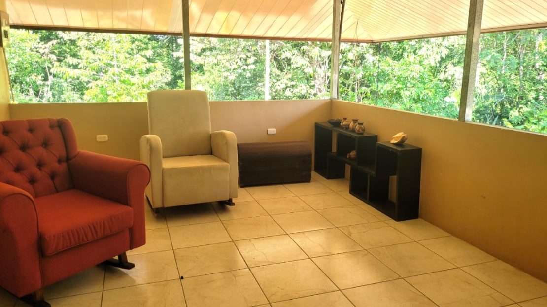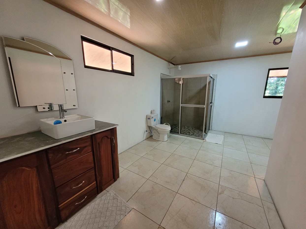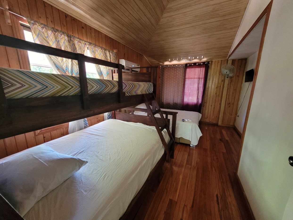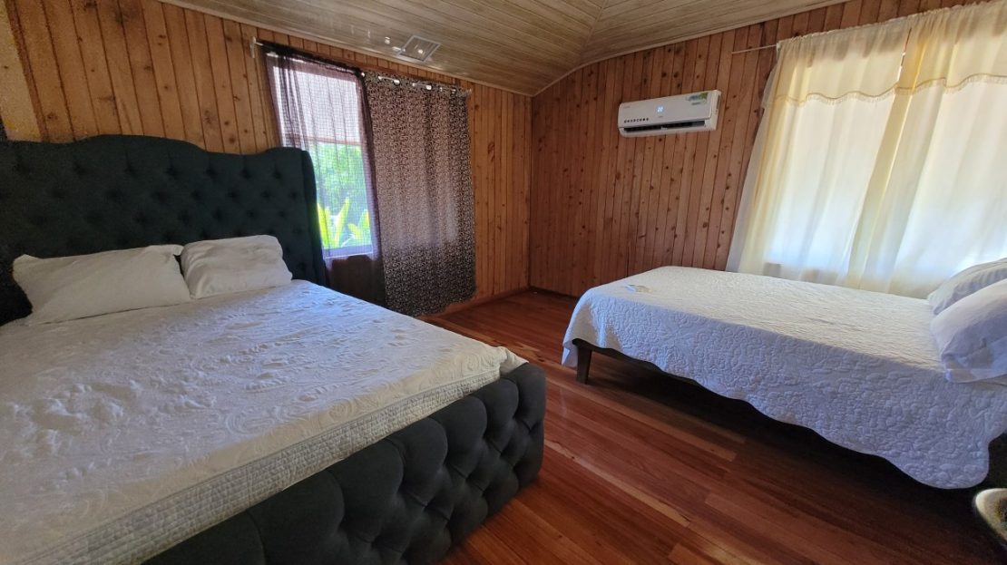 The main house is two-storeys, and 390m2 of space. At the ground floor you’ll find a spacious lounge, perfect for gatherings, a space for AirBnB guests to relax, or a restaurant business! There is a commercial kitchen, as well as half bath. With its great jungle view, you’ll get regular visits from 3 different types of monkeys. Upstairs you’ll find a covered patio and large living room, and three bedrooms, each with A/C, built in closets, and WIFI. Comfortably sleeps up to 11 people, and beds with quality mattresses are included!