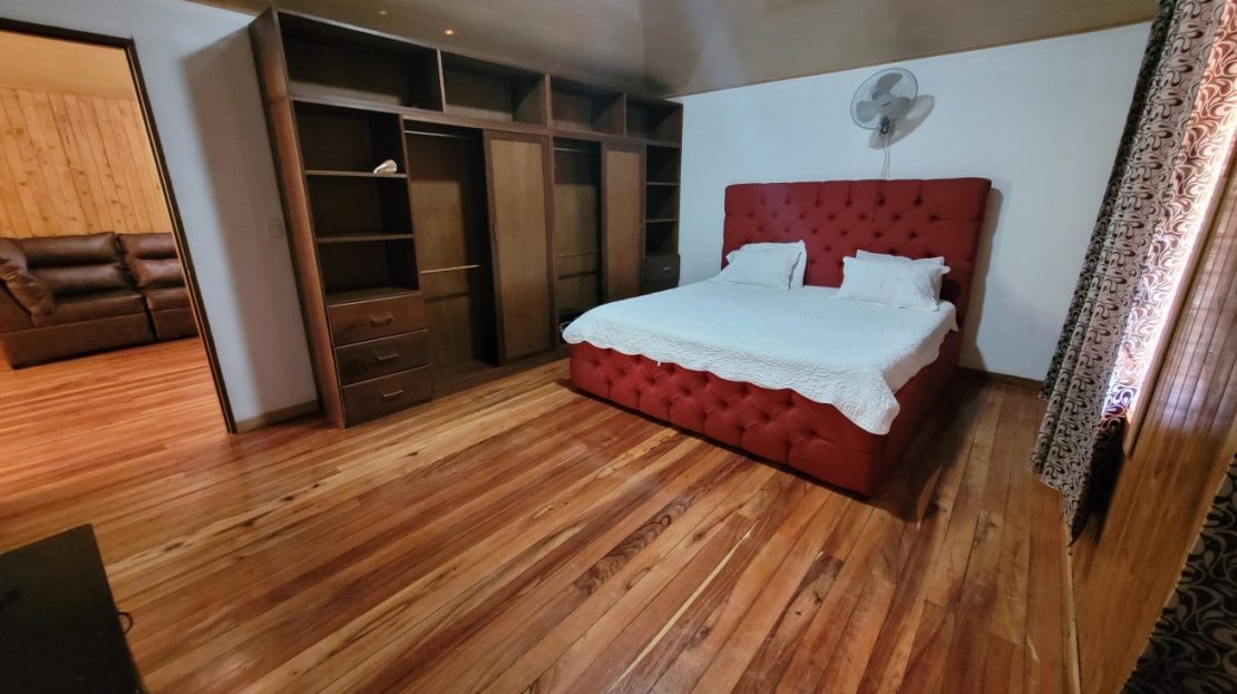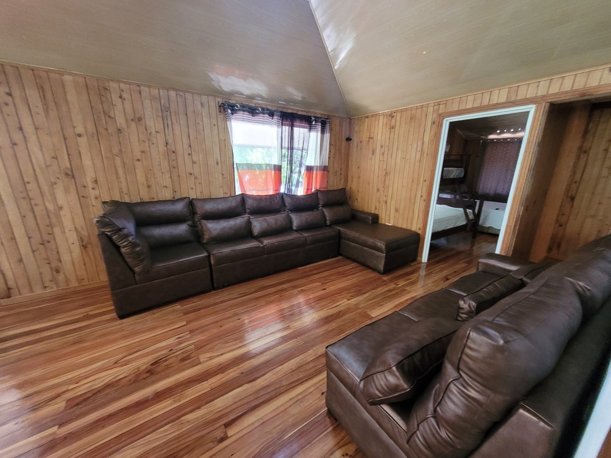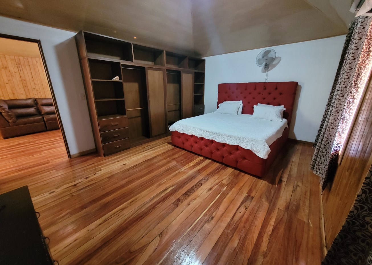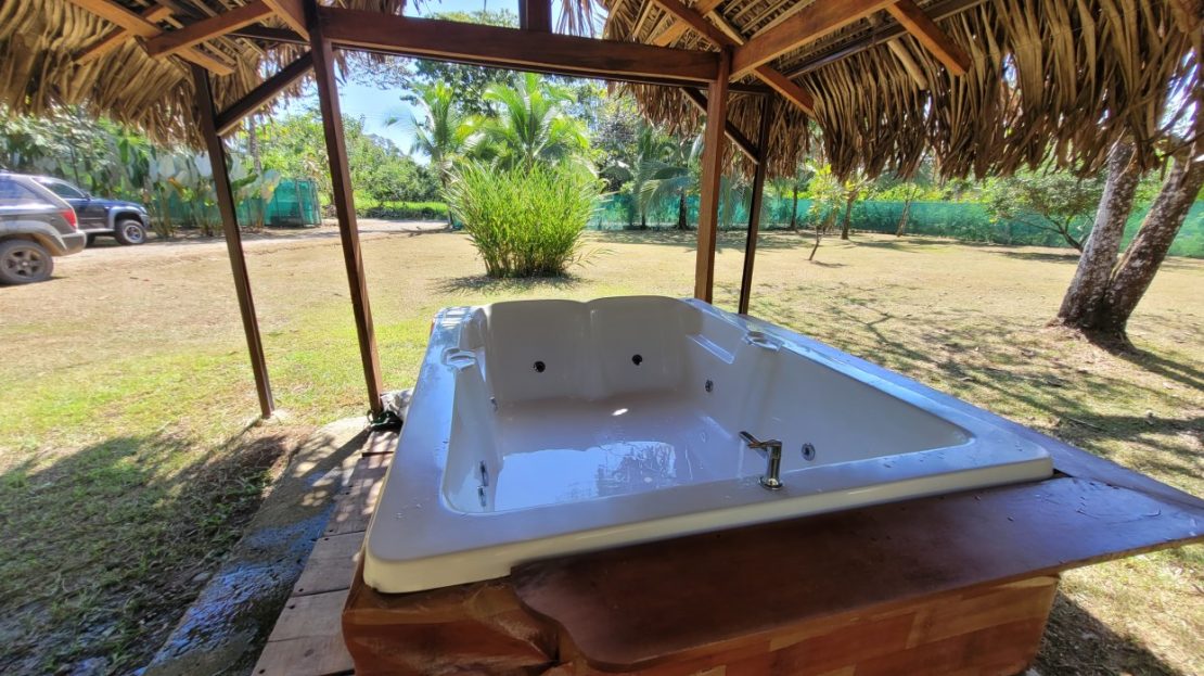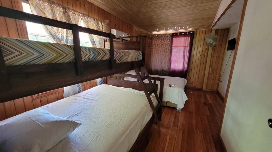 The main house is two-storeys, and 390m2 of space. At the ground floor you’ll find a spacious lounge, perfect for gatherings, a space for AirBnB guests to relax, or a restaurant business! There is a commercial kitchen, as well as half bath. With its great jungle view, you’ll get regular visits from 3 different types of monkeys. Upstairs you’ll find a covered patio and large living room, and three bedrooms, each with A/C, built in closets, and WIFI. Comfortably sleeps up to 11 people, and beds with quality mattresses are included!