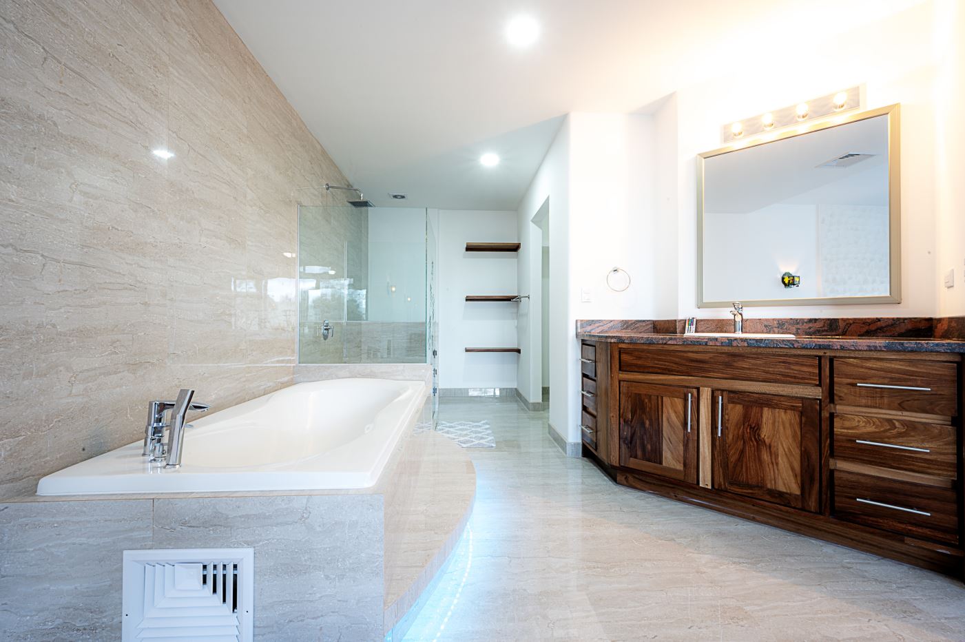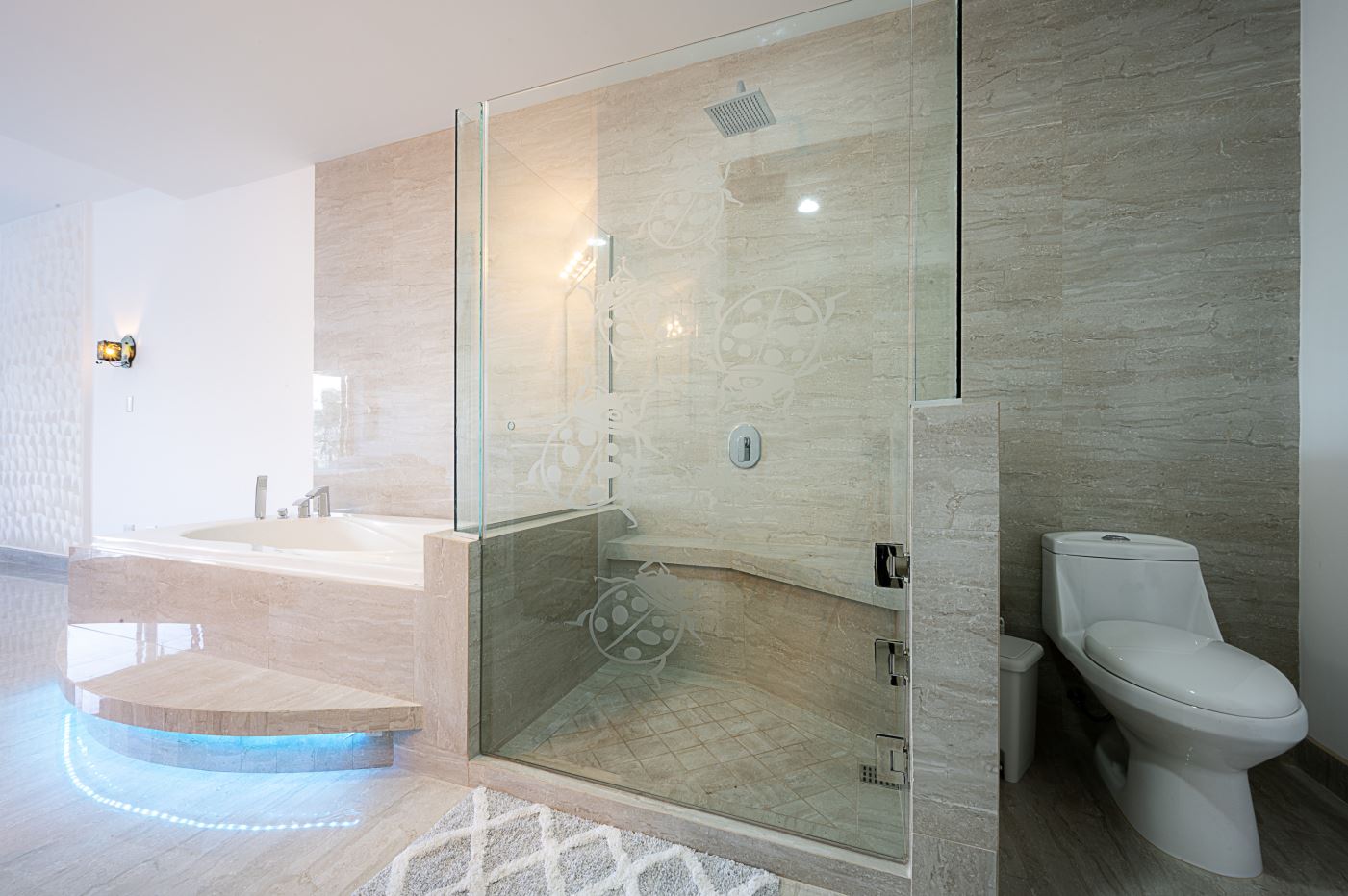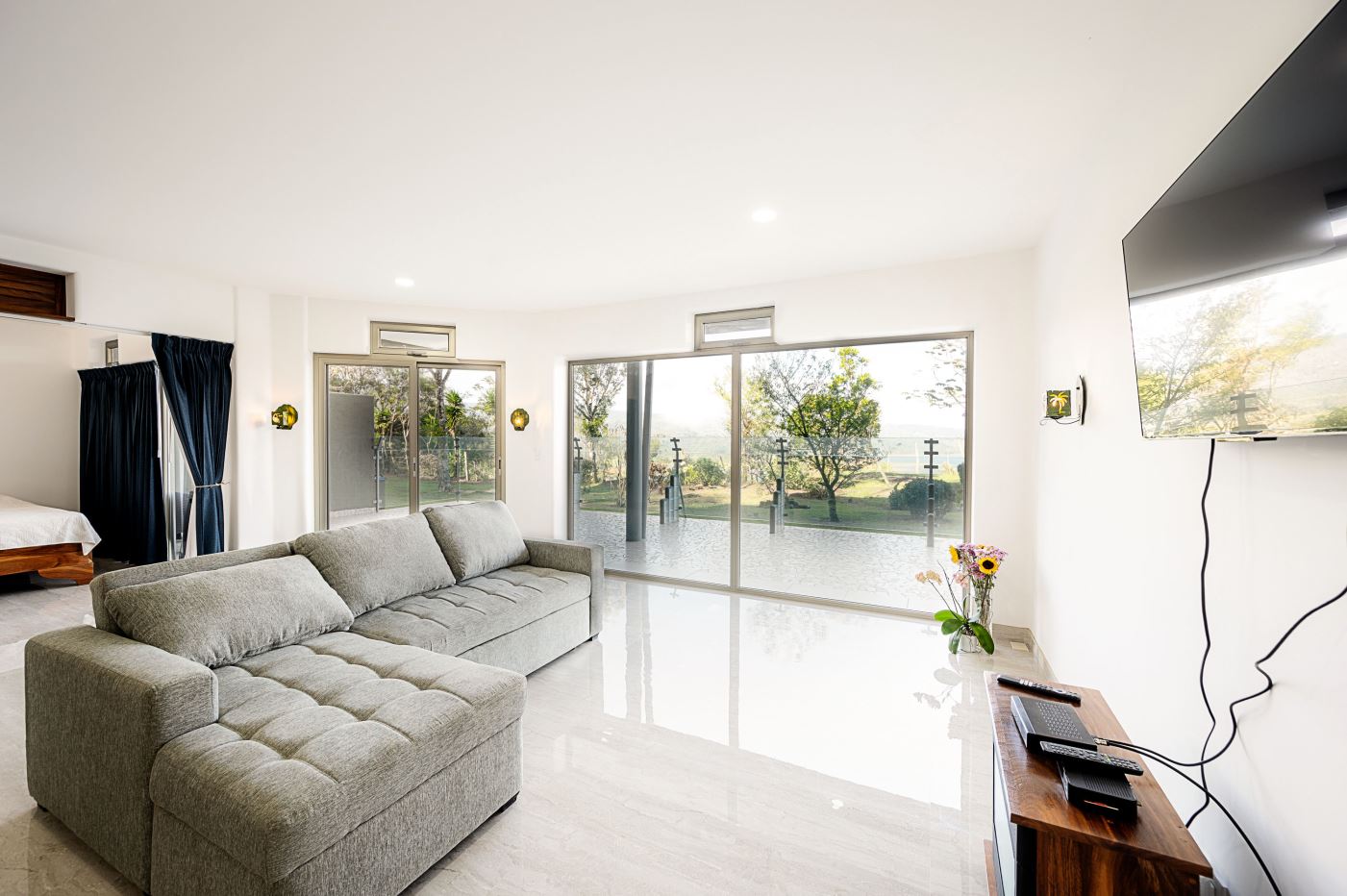 The light and spacious design of this condo begins with the large open plan kitchen fully fitted with high spec appliances and an island breakfast bar, and which opens out onto a wood floored furnished living area. From the den you can access the sunroom and then onto the balcony.