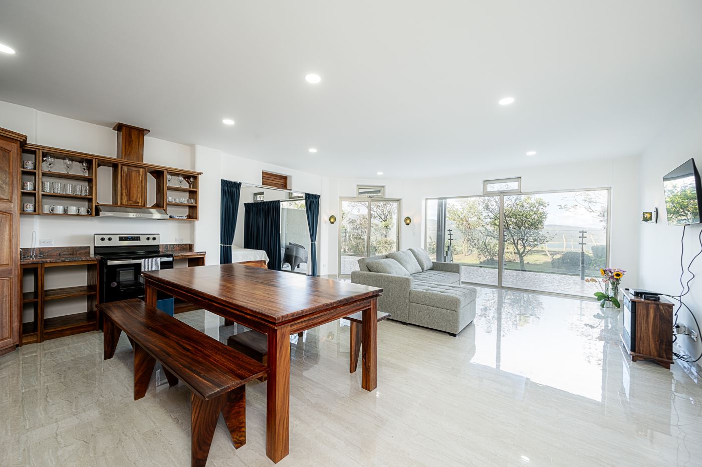 Set on a private hilltop overlooking Lake Arenal, this condo offers stunning views of the lake and the Arenal and Tenorio volcanoes.
