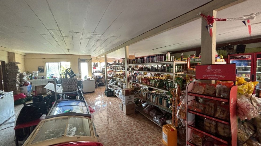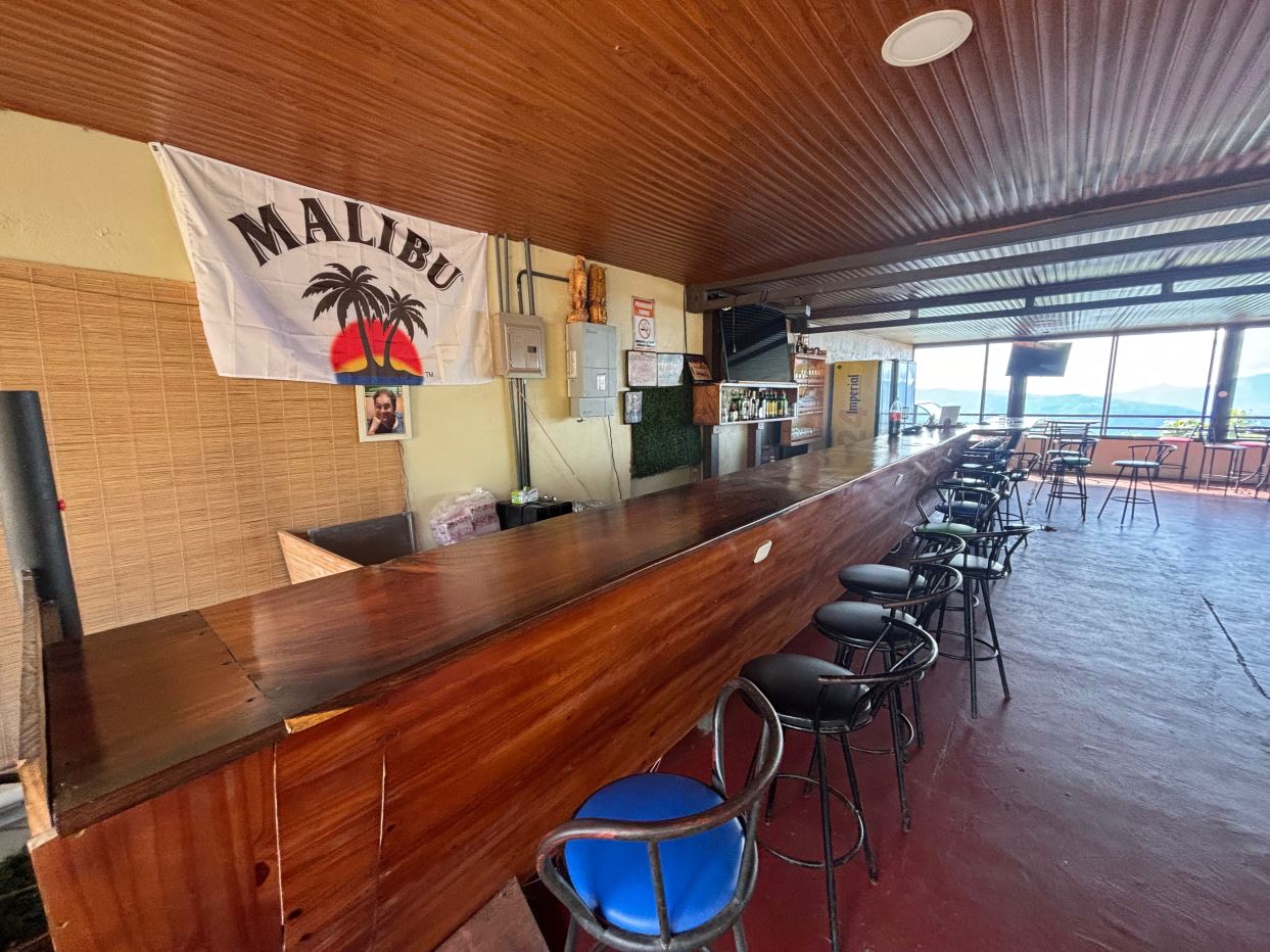 Great commercial-residencial supermarket, bar restaurant, home, etc. mixed zoning on top of Atenas located in the center of Estanquillos. The present structure is used as a bar restaurant that is 1/4 the build, a small supermarket 1/4 of the build, private home 1/4 of the build and a large storage area that can be used for any use the size of the bar restaurant that is the remainder 1/4 of the structure.