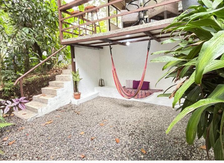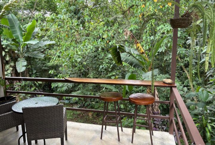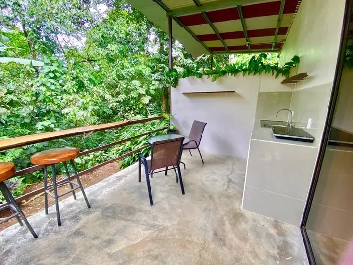 The Habana River Lodge has two individual apartments equipped with a full rustic-style bathroom with a cool-style shower, a comfy bedroom with a queen-size bed, and a nature lover’s dream kitchen settled on the balcony overlooking the private river and trails from the top. The tap water is very good quality, safe to drink. The rain and could water flows to reserves from the mountain top with a 15year cycle, naturally filtrated through the underground springs and provided by the Aqueduct Asada La Fortuna to the rest of the surrounded area. There is no place to find this quality of water around these days. The neighbour besides the property has a spring and is not allowed to build on it making the property more private without an immediate neighbour.