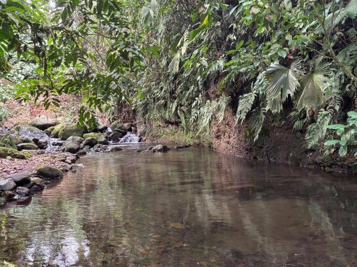 The owner is maintaining the riverside trails, which account for more than 70 meters in addition to the property plan. The property has a natural round shape and a flat landscape with around 5 meters of cliff overlooking the river, creating an ideal possibility to make a deck or a balcony here and open fields of the finca, creating beautiful sunset moments, coziness, and privacy.