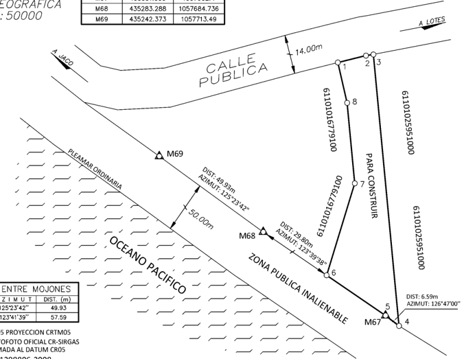 Lot #5: 1524 square meters (16,404 square feet) with 29 meters (95 feet) of linear oceanfront. $800,000