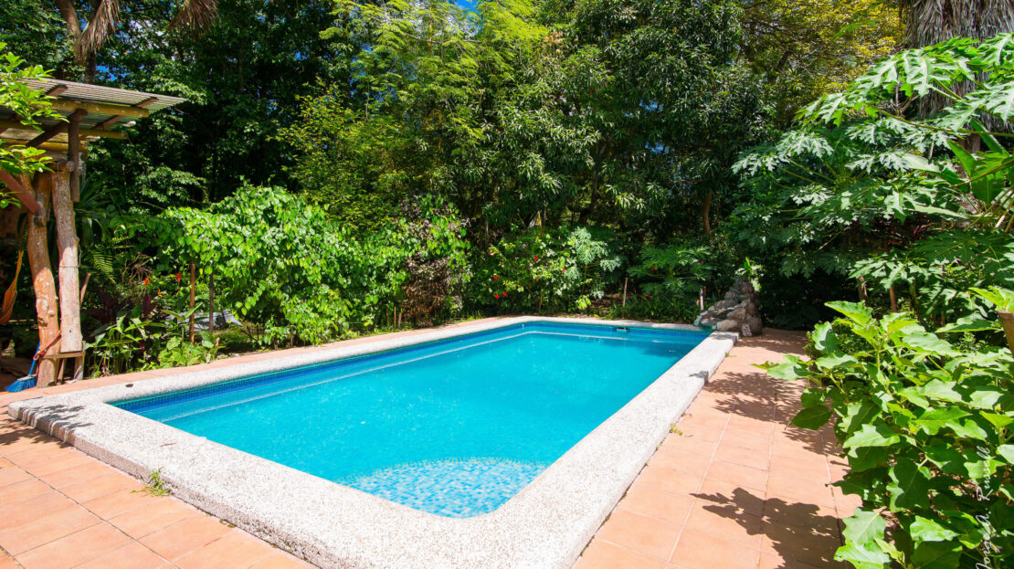 Herradura Beach house with pool on 0.66 acres, REDUCED $60.000! A perfect diamond in the rough for those who dream of having some tropical forest, a good swimming pool, and space for an orchard, crafts, or gardening; this is the property that will indeed serve you. 0.66 acres, very private and yet central and close to the beach and only 10 minutes from Jaco.