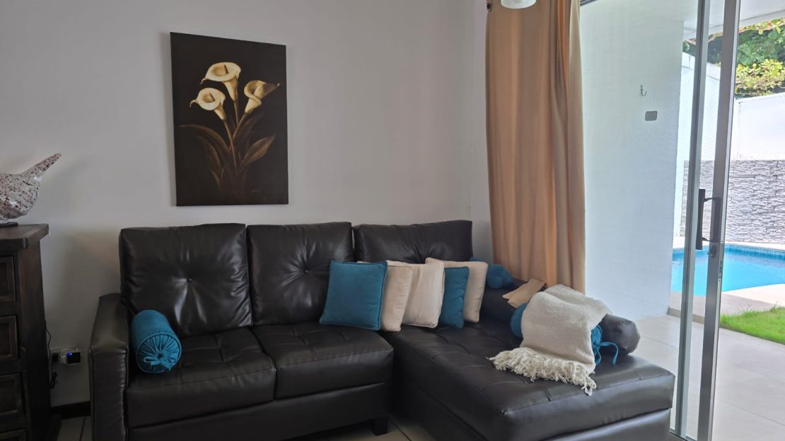 This inviting Herradura Beach home for sale offers a blend of comfort, practicality, and a relaxed tropical setting within a secure gated community. The well-built three-bedroom, two-bathroom residence features a thoughtful layout, fully furnished interiors, and a private backyard with a swimming pool. Because the home is move-in ready, it works well for full-time living or as a coastal retreat near one of the area’s most popular beaches.