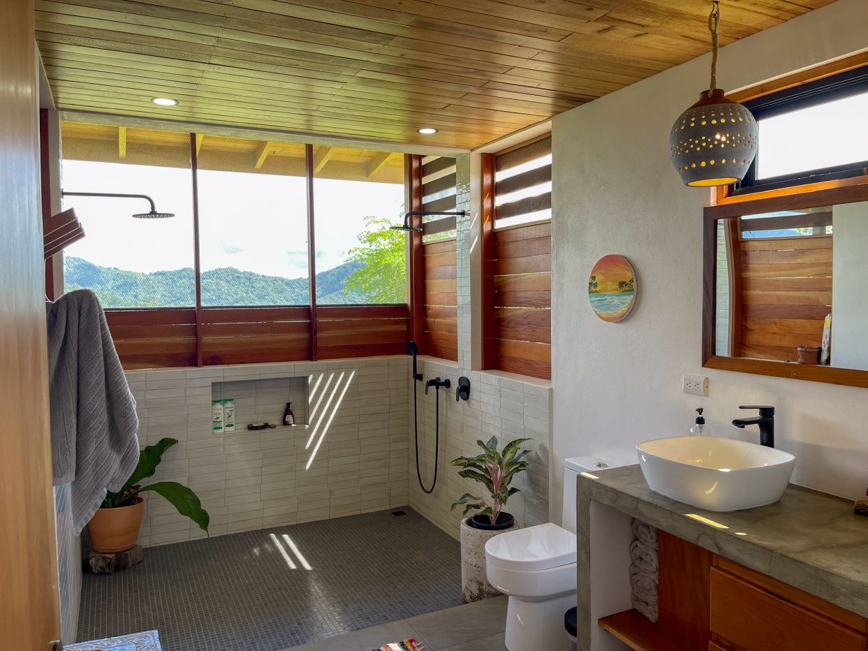 Experience breathtaking beauty from every angle with this 220m² hilltop home offering unmatched 360° panoramic views of the Pacific Ocean, mountains, and lush jungle. Watch spectacular sunsets over the ocean and enjoy tranquil mornings surrounded by nature’s serenity.