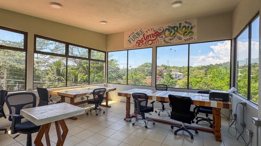 Air-conditioned coworking space, appealing to digital nomads and professionals.