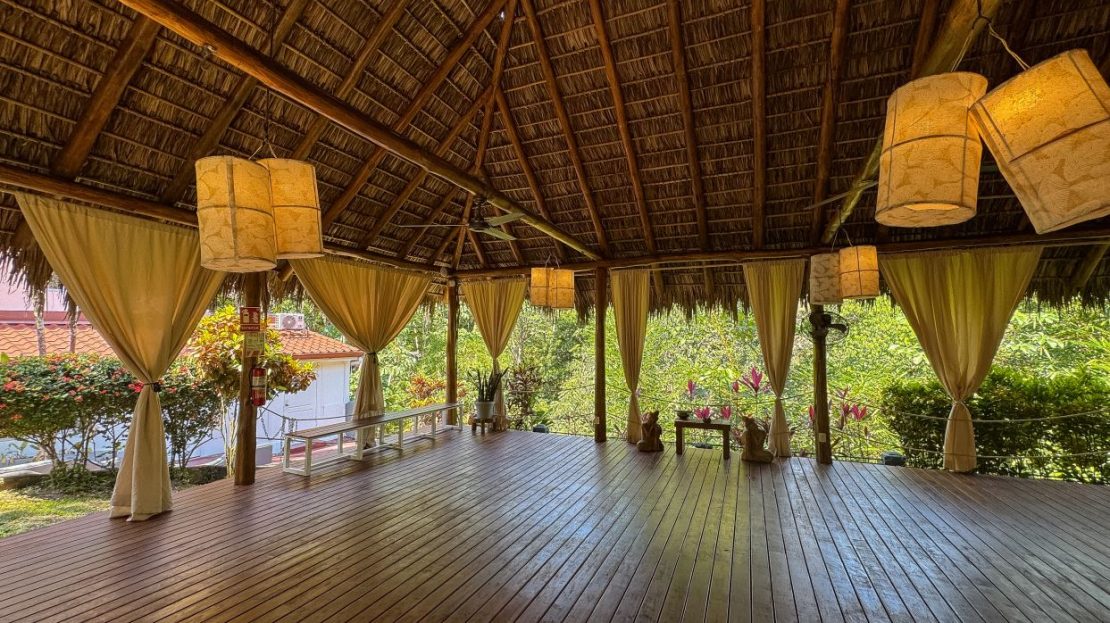 Tranquil yoga shala, perfect for wellness-focused retreats or group sessions.