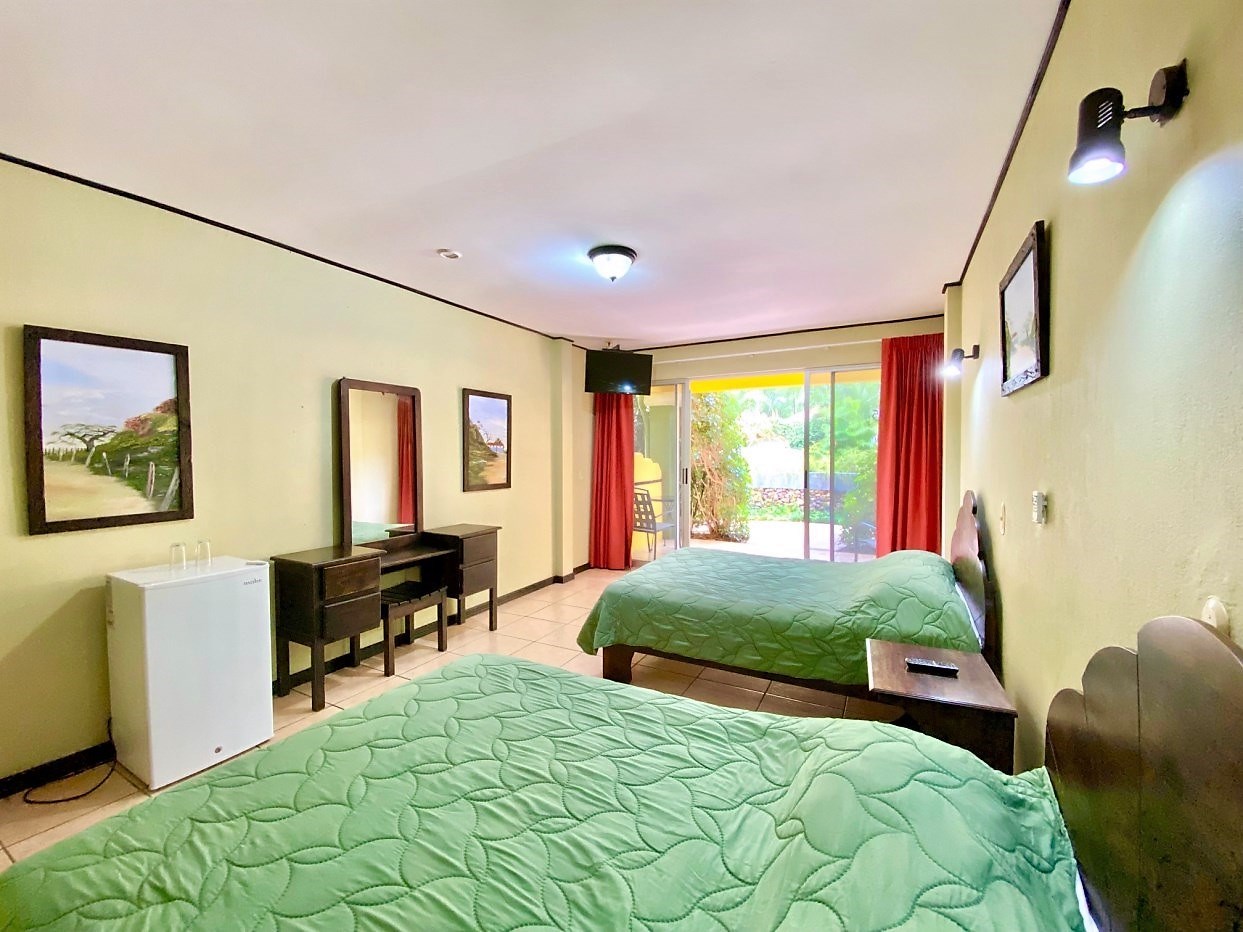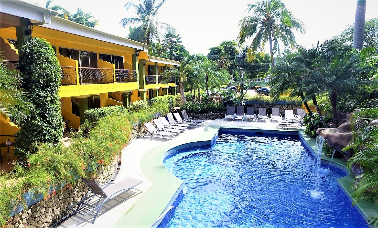 Hotel está ubicado en la paradisíaca zona de Playa Hermosa, una pequeña bahía ubicada en la provincia de Guanacaste, este acogedor hotel cuenta con habitaciones estándar, mini-suites y departamentos suite. Todo cuidadosamente decorado y equipado con todas las comodidades. También cuenta con bar / restaurante, alberca, estacionamiento privado con cámaras de seguridad y otras amenidades que harán su estadía lo más cómoda posible. Estamos a solo 150 metros de la playa,Hermosa playaEsta playa es ganadora del premio “Bandera Azul”, que se otorga a las playas que demuestran altos estándares ambientales y excelentes instalaciones de seguridad, rodeadas de plantas exóticas ubicadas en una bahía tranquila, ideal para escaparse en familia o con amigos.En la zona se pueden encontrar restaurantes, bares, discotecas, tiendas de abarrotes y mucho más.