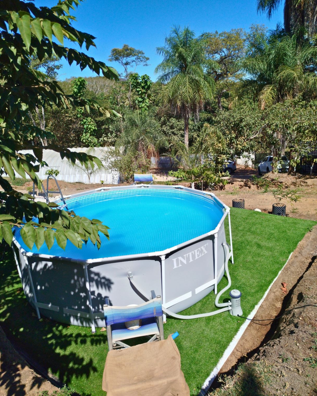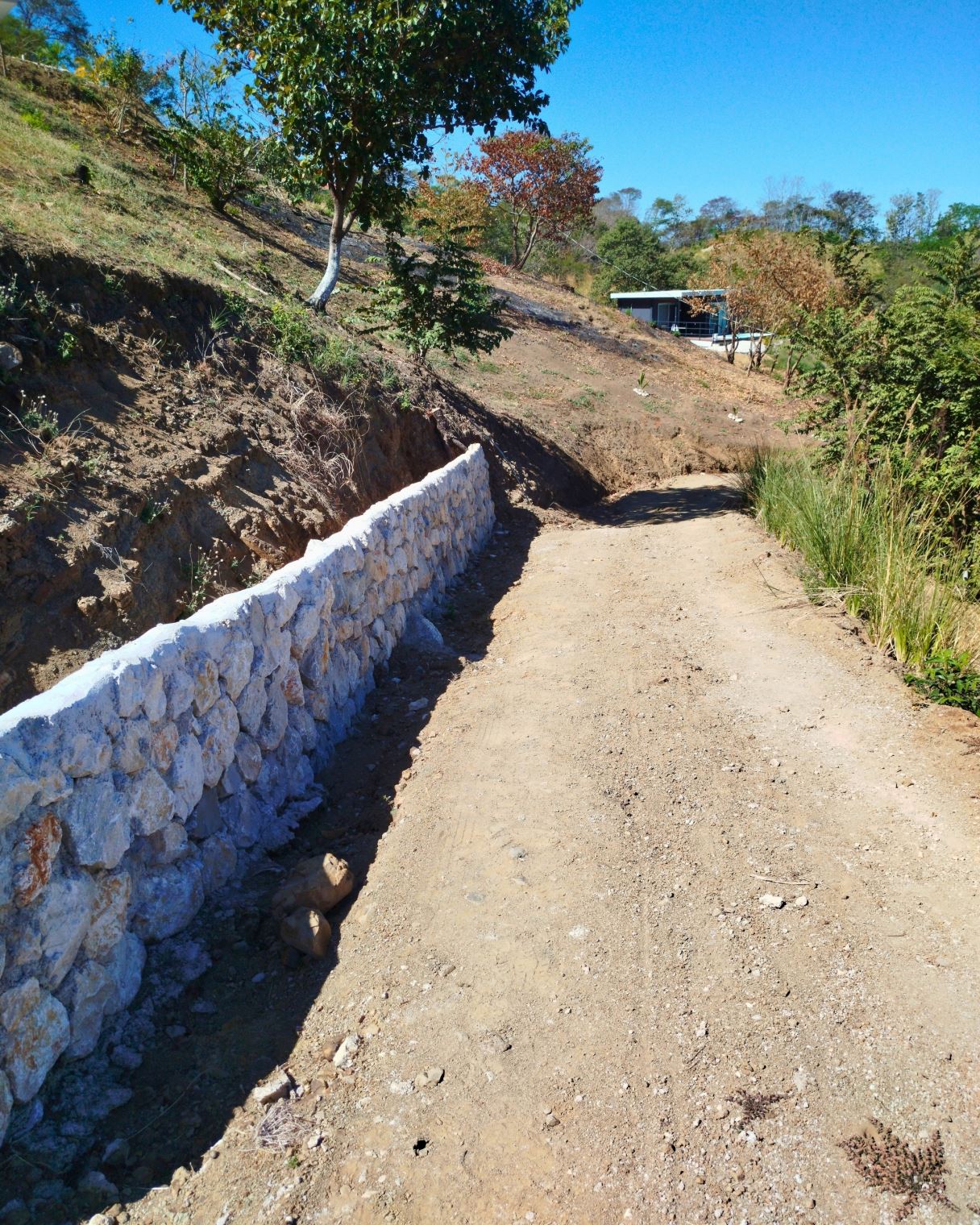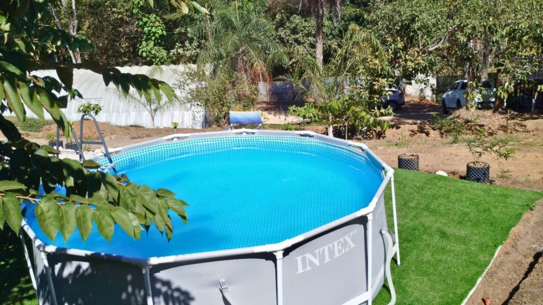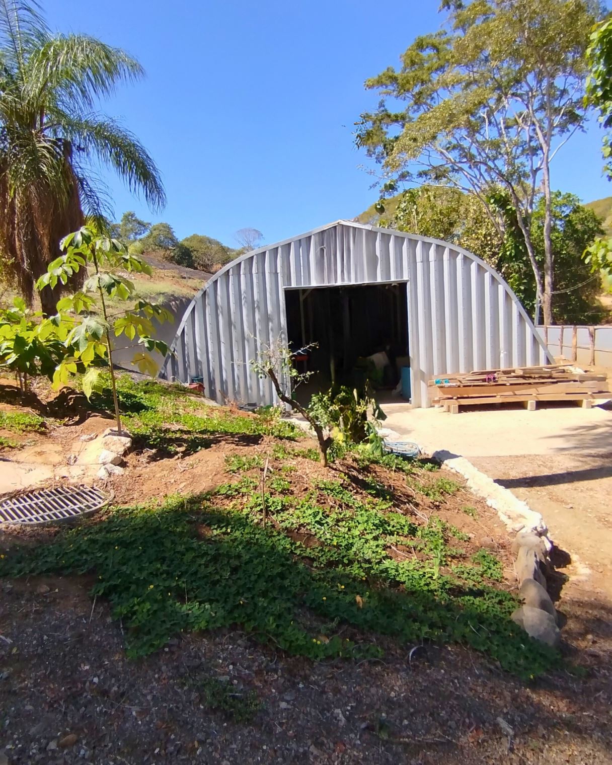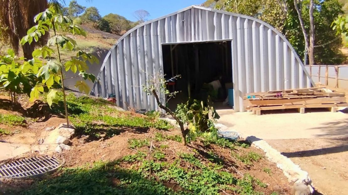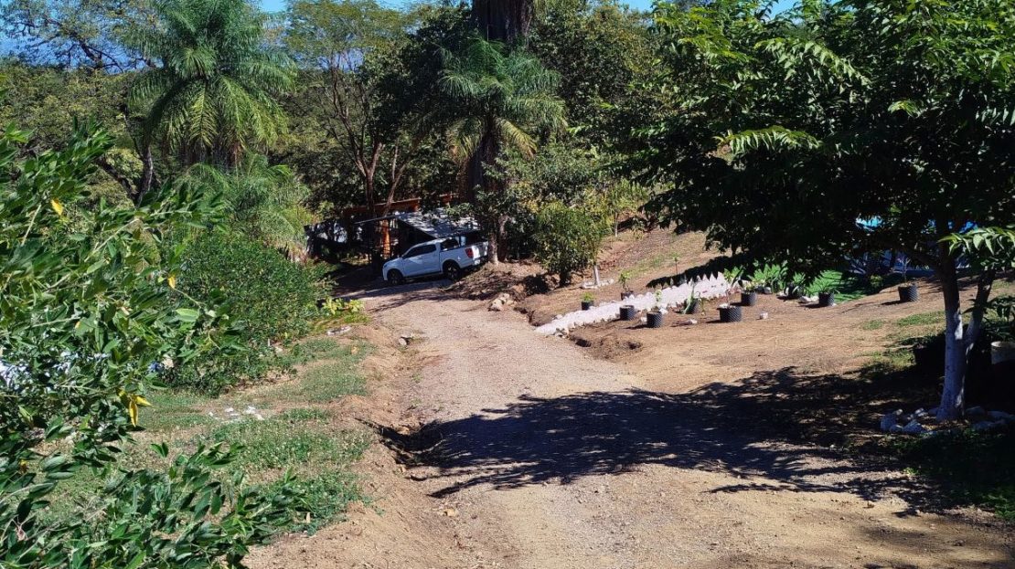 House of 66 m² built one year ago with 2 bedrooms, one office, one bathroom, and kitchen area.Sloped land of 7,151 m² with 53 m frontage on the main road and an additional entrance through condominium.Additional structures include a 170 m² bodega with automatic gate, a 20 m² rancho, and a small above-ground pool.Water service from AYA and condominium well.Electricity connected.Located 10 minutes from Playa Naranjo ferry.Furniture included.Price: USD 450,000.