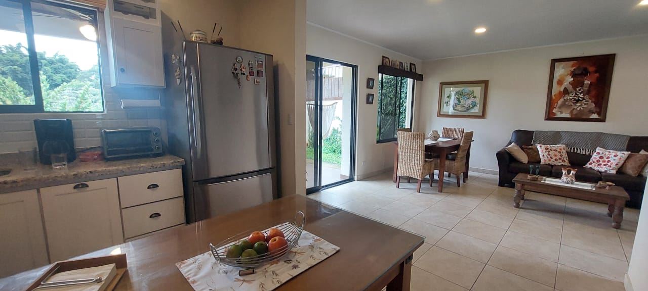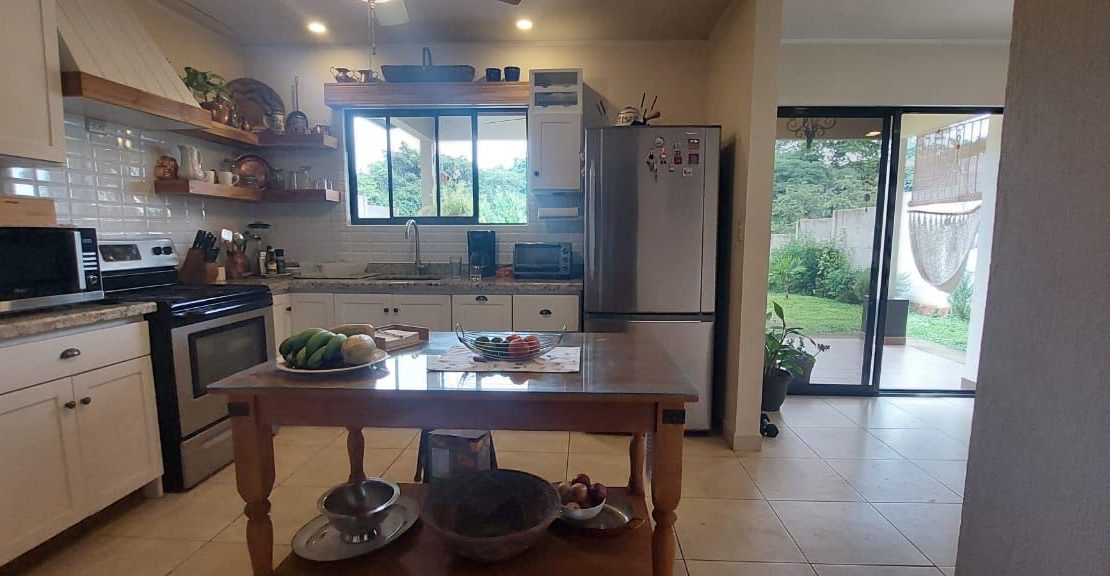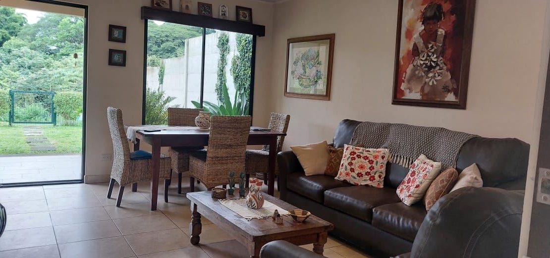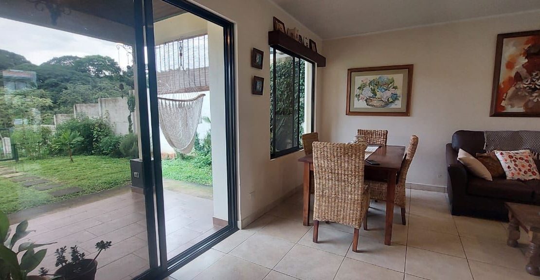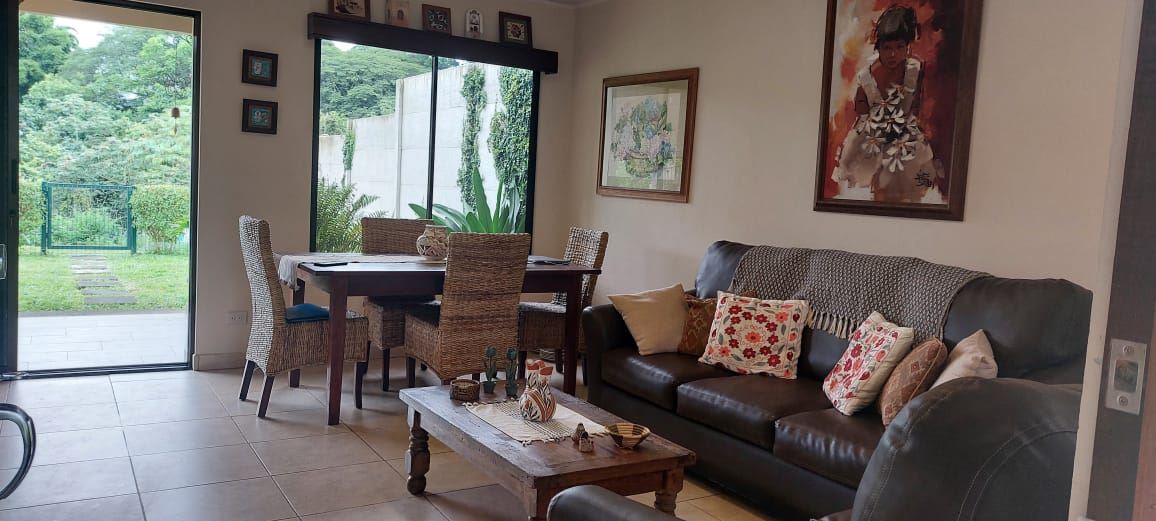 Esta hermosa casa, con un diseño de concepto abierto que ofrece comodidad y estilo, está disponible para alquiler. La propiedad cuenta con 2 habitaciones y 2 baños completos, ofreciendo espacios amplios y bien iluminados para el confort de toda la familia. La cocina moderna está equipada con muebles hechos a la medida y elegantes encimeras de granito, perfecta para aquellos que disfrutan de cocinar y compartir momentos en familia. La habitación principal cuenta con aire acondicionado, walk-in closet y abanico de techo, convirtiéndola en un refugio perfecto para descansar y relajarse. Abanicos de techo ubicados en la cocina, las habitaciones y la terraza proporcionan frescura en toda la casa. La encantadora terraza con una lámpara de hierro es ideal para disfrutar de tardes al aire libre. Las persianas a la medida ofrecen mayor privacidad y control de la luz natural. El jardín trasero está adornado con flores y plantas que atraen colibríes y mariposas, creando un entorno natural y sereno. Además, se aceptan mascotas, haciendo de este hogar un lugar donde los amigos de cuatro patas son bienvenidos. La renta incluye la cuota de condominio No pierda la oportunidad de vivir en esta maravillosa casa que combina comodidad, estilo y funcionalidad. Disponible de inmediato. Precio colones costarricenses 500.000 (quinientos mil )