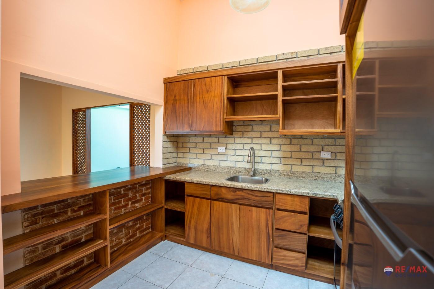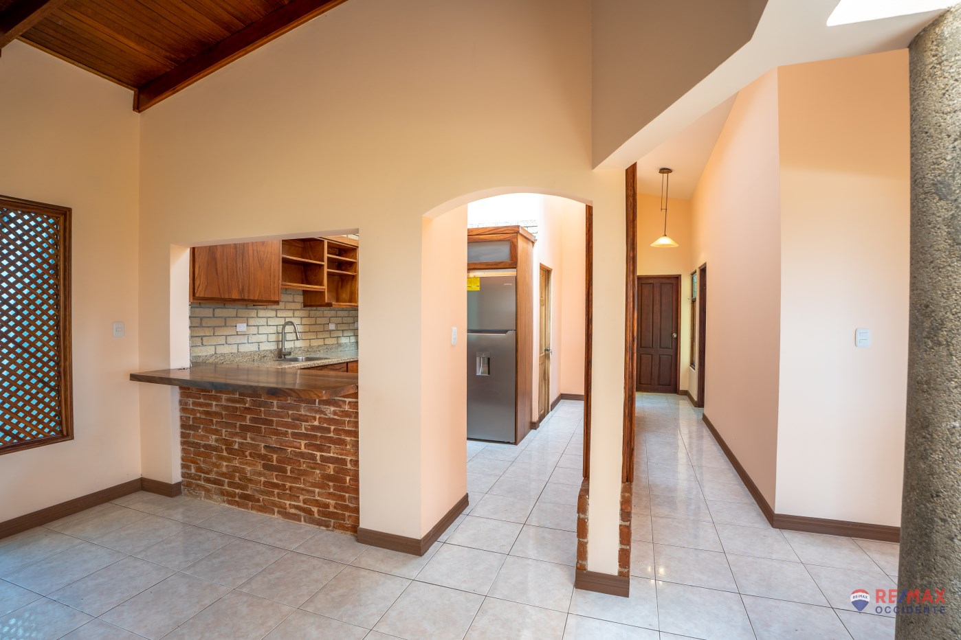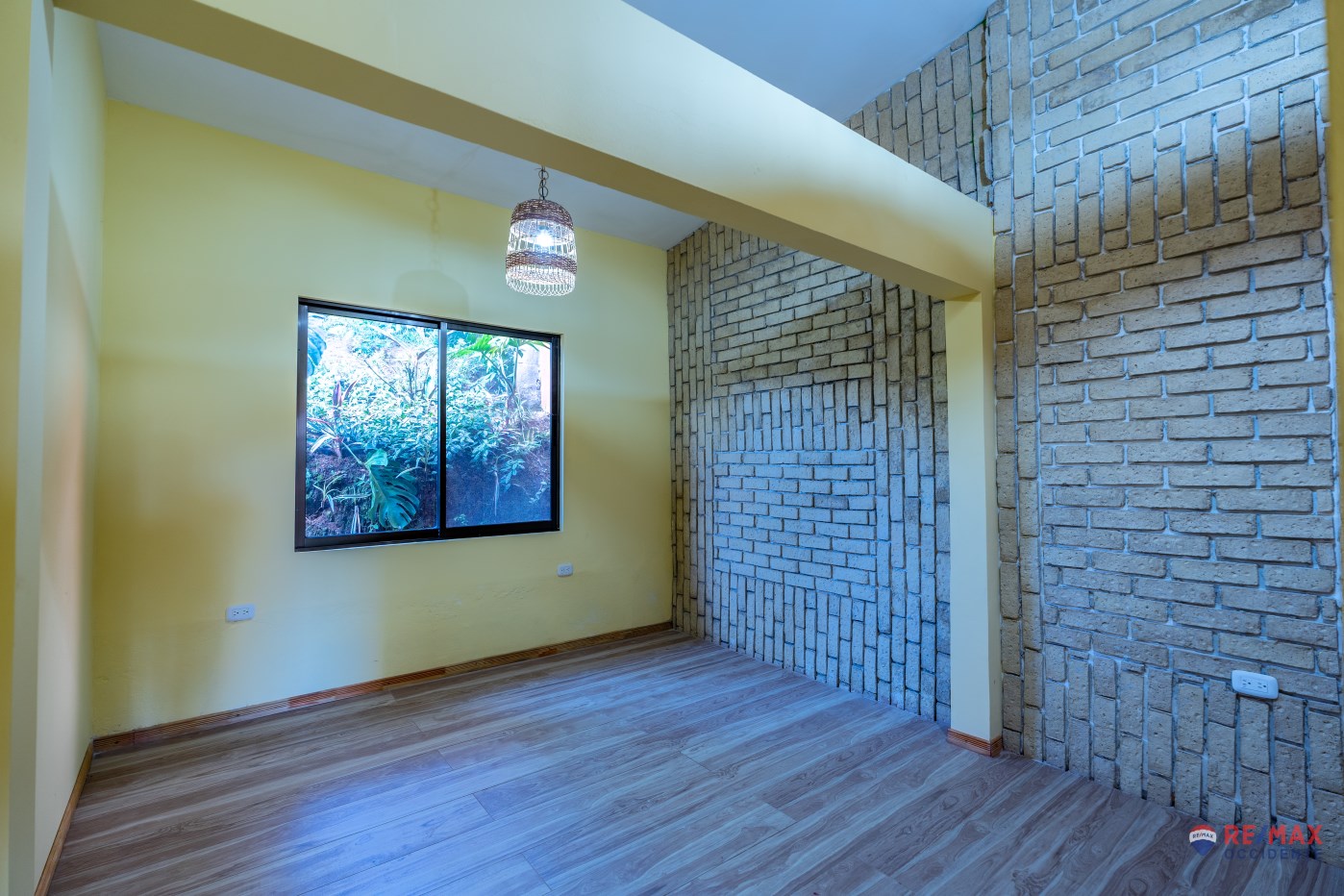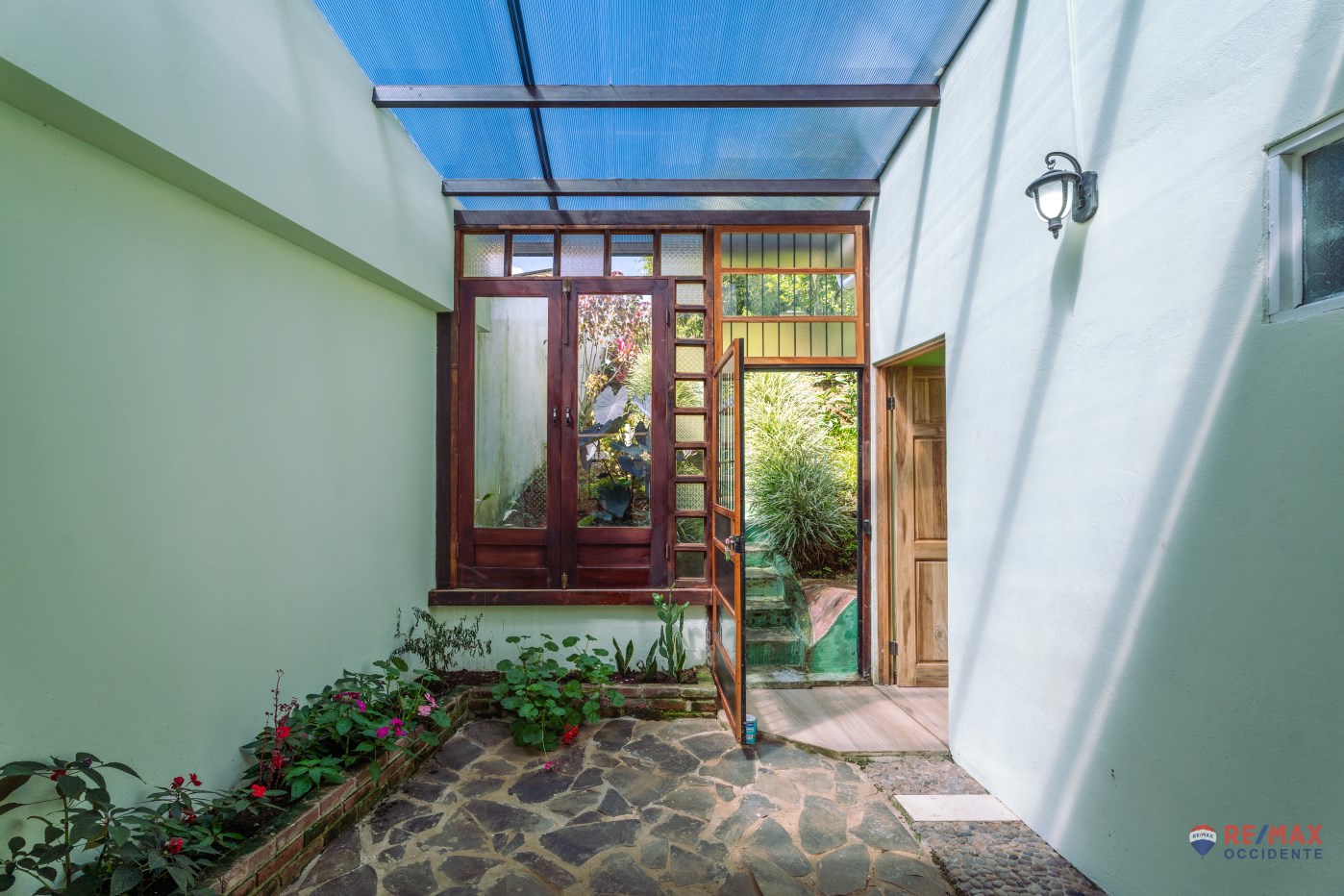 Esta es una pequeña y acogedora casita tica que fue transformada y remodelada con un gusto exquisito por las maderas y piedra. Incluso desde la fotografía podéis sentir el cariño con que fue restaurada. Cielos artesanales, una ventana con vistas a las montañas te reciben en una cálida sala, La cocina toda en maderas finas y caunter de granito, grifería de alta calidad. Cada detalle fue cuidado con esmero. Los baños también cuentan con detalles en piedra y maderas finas nativas de Costa Rica, el delicado aroma a la madera es perceptible desde que ingresas a la casa.