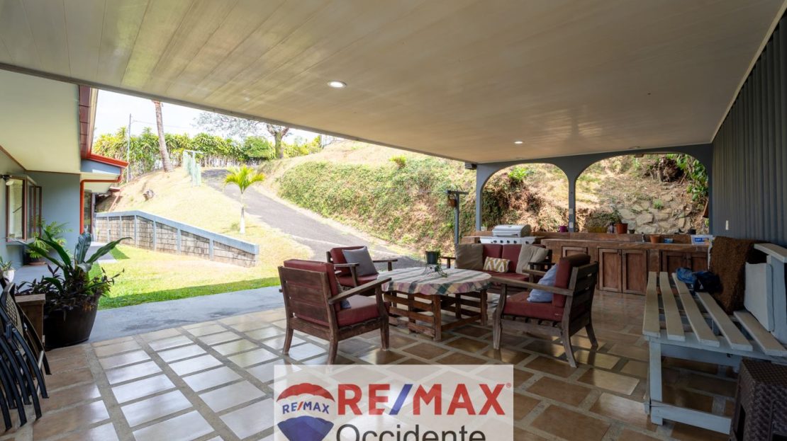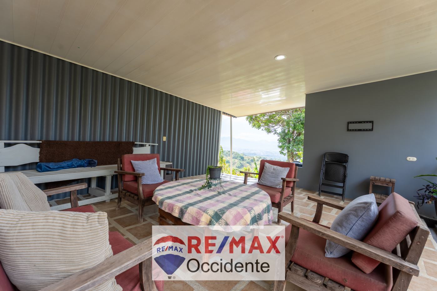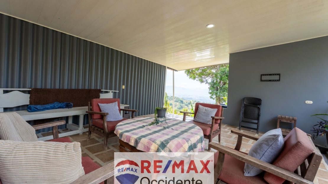 Y la joya de esta propiedad: una terraza con una vista espectacular hacia Sarchí y Grecia. Un escenario perfecto para contemplar los colores del amanecer y el atardecer, para disfrutar de un café en la mañana o de una conversación bajo las estrellas.