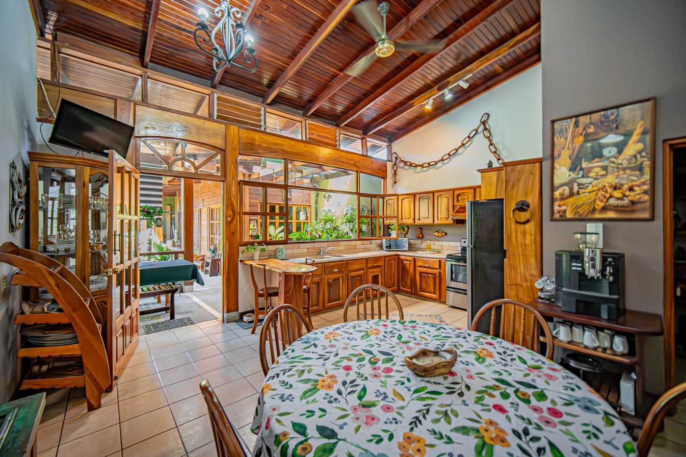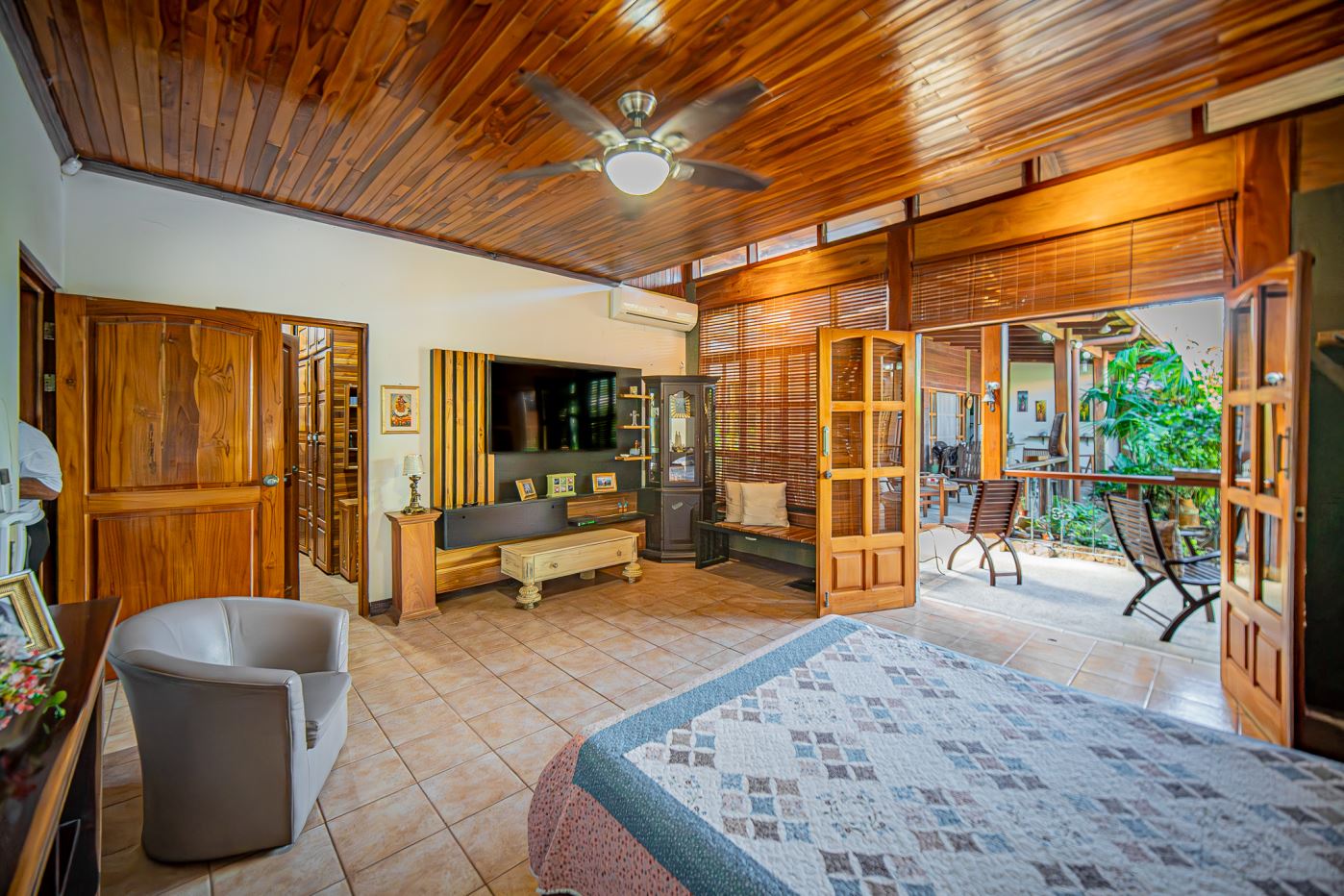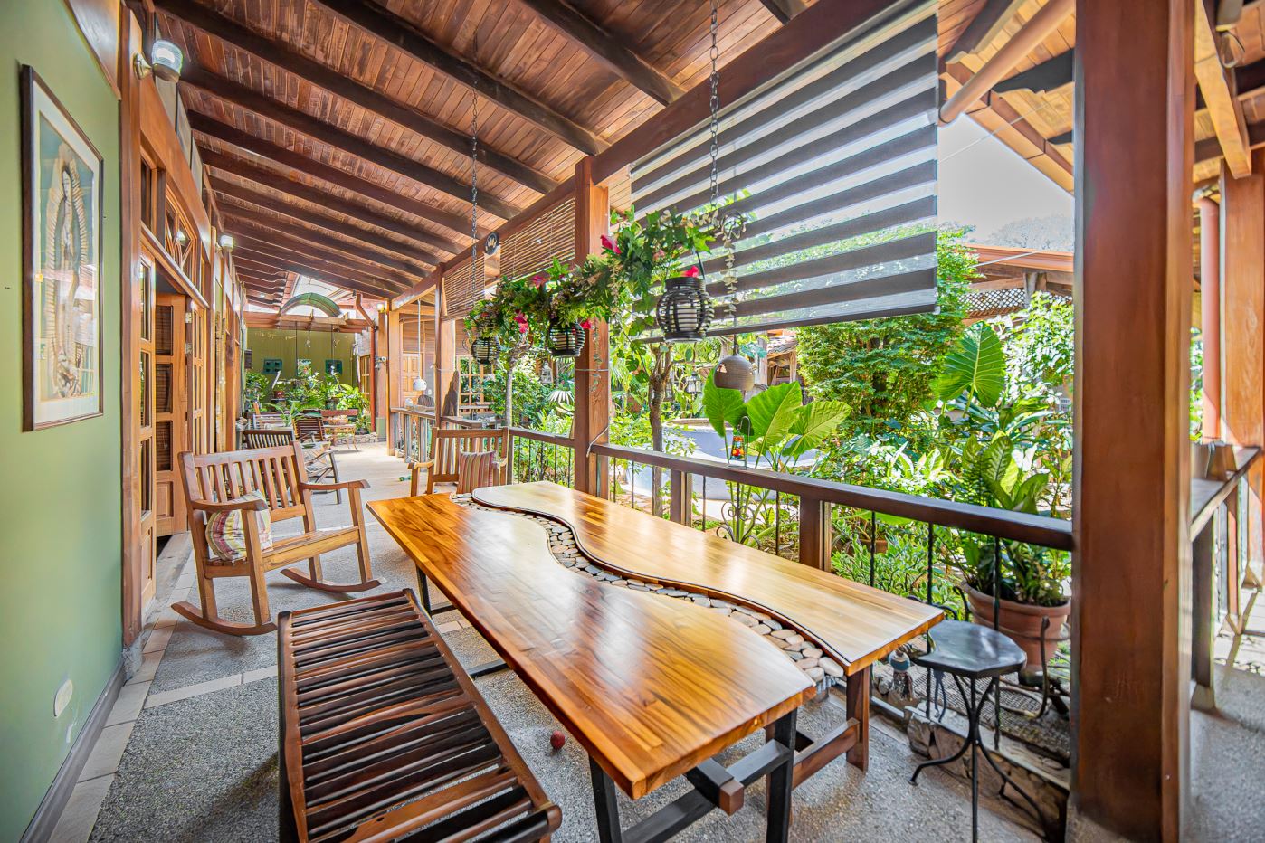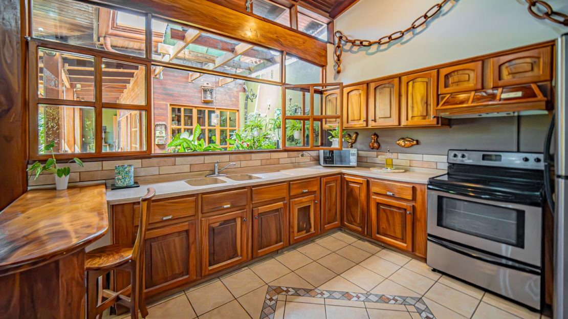 The house is primarily built with solid concrete and an extraordinary variety of precious hardwoods, carefully selected and crafted throughout the property. Plantation woods include teak, pochote, and melina, while natural forest hardwoods include mahogany, bálsamo, balsamito, guayacán real, cocobolo, genízaro, guanacaste, níspero, guapinol, quebracho, yayo, laurel, cristóbal, and more.