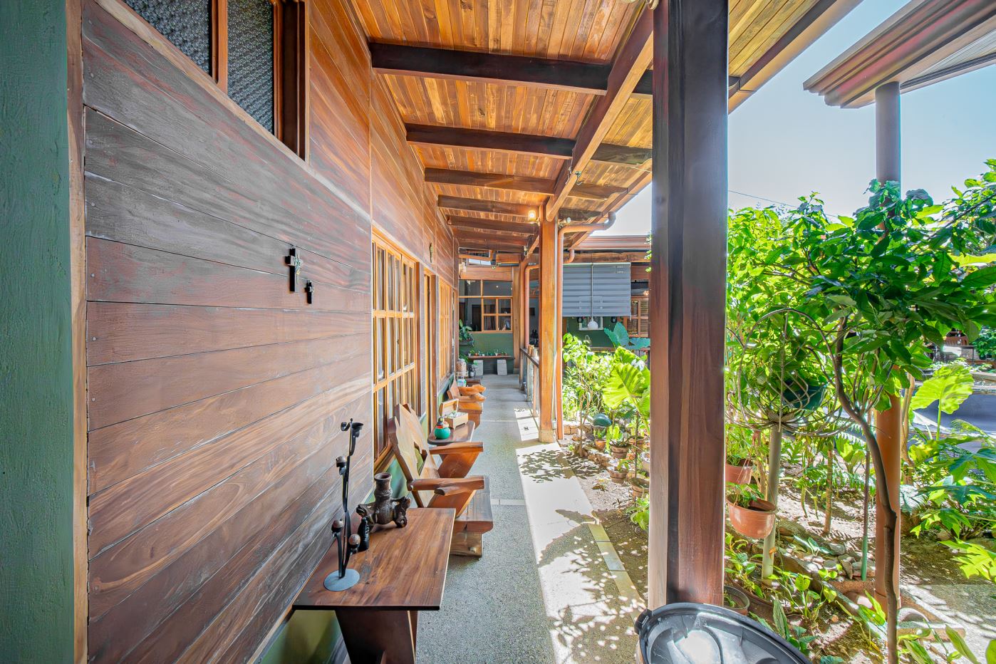 Este diseño crea un ambiente fresco, abierto y lleno de personalidad, donde la madera, el agua y la naturaleza se integran armoniosamente.