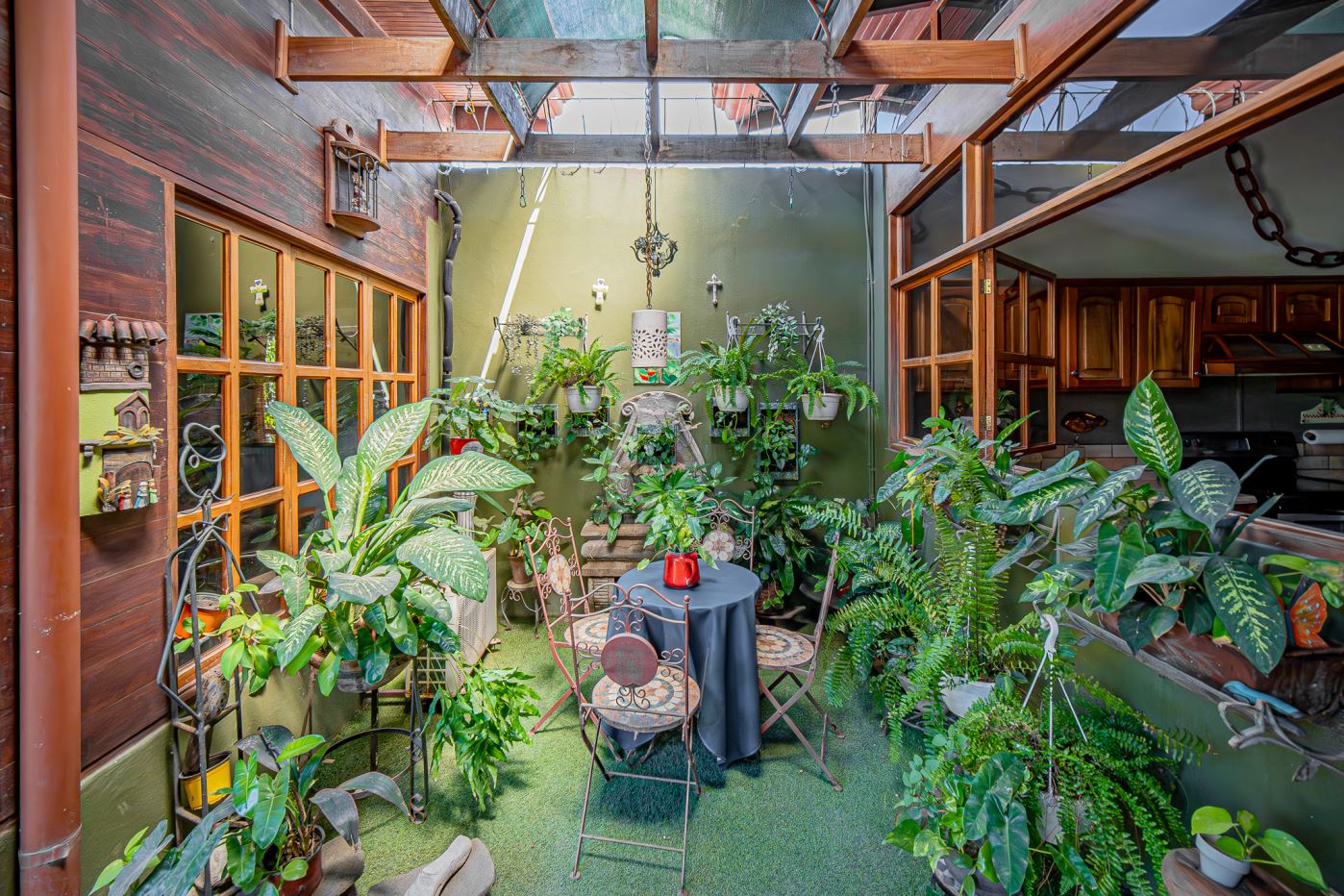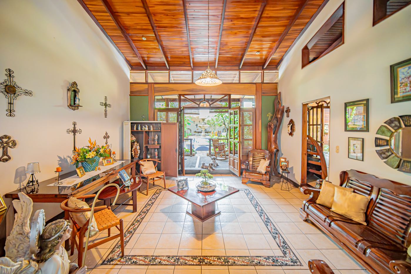 The home is organized around a beautiful central courtyard with a surrounding covered veranda, creating a welcoming and functional living environment with several additional spaces: