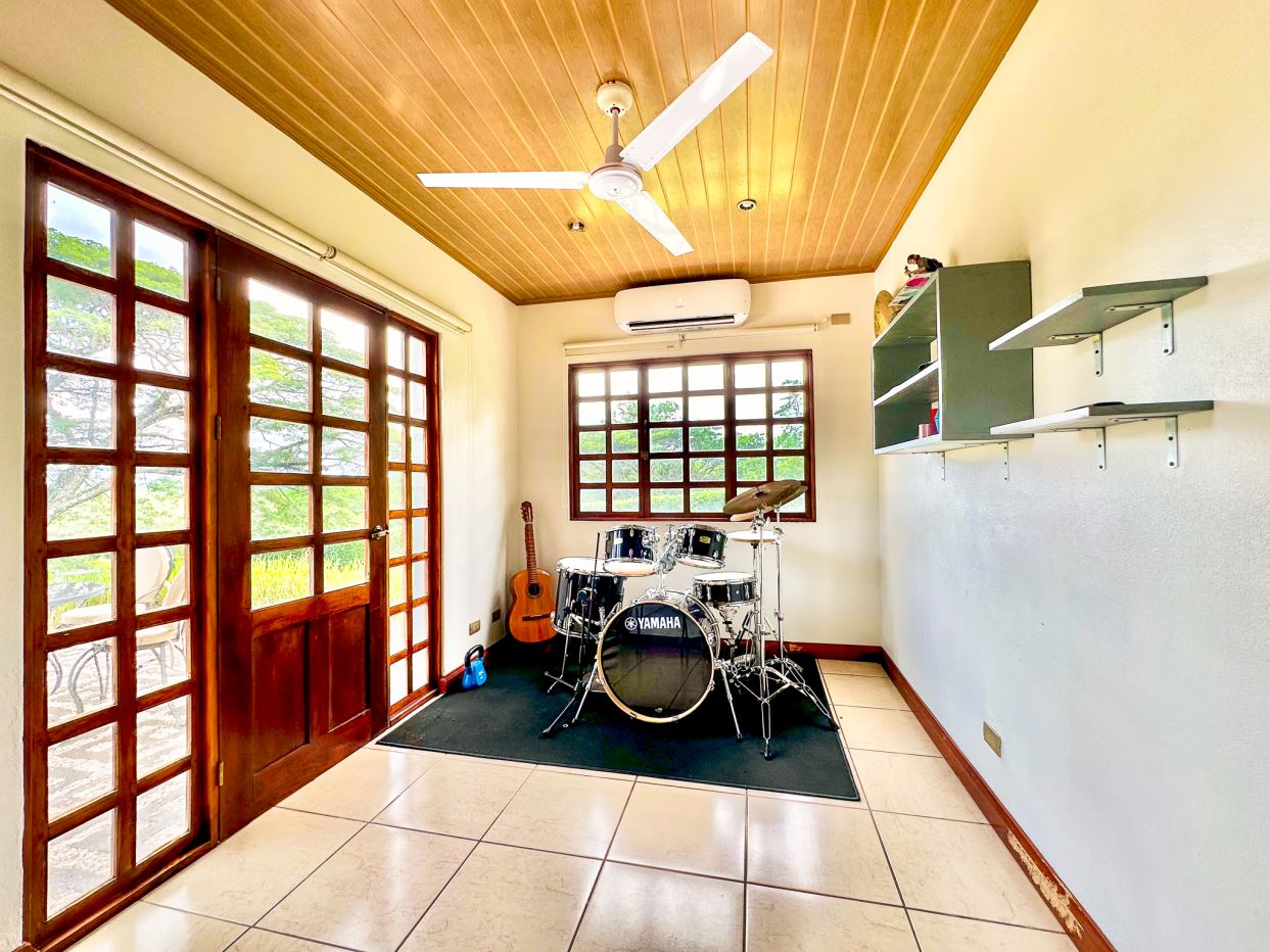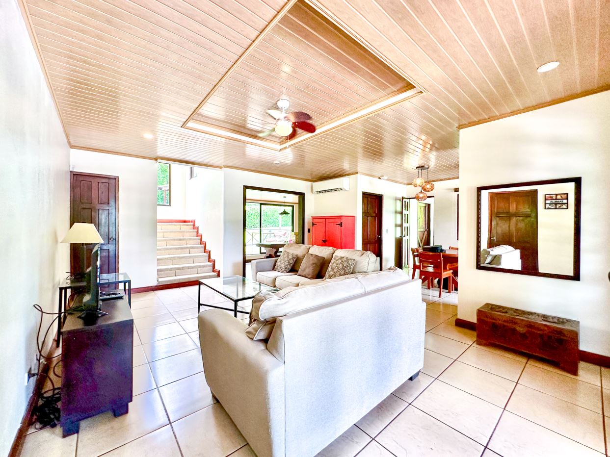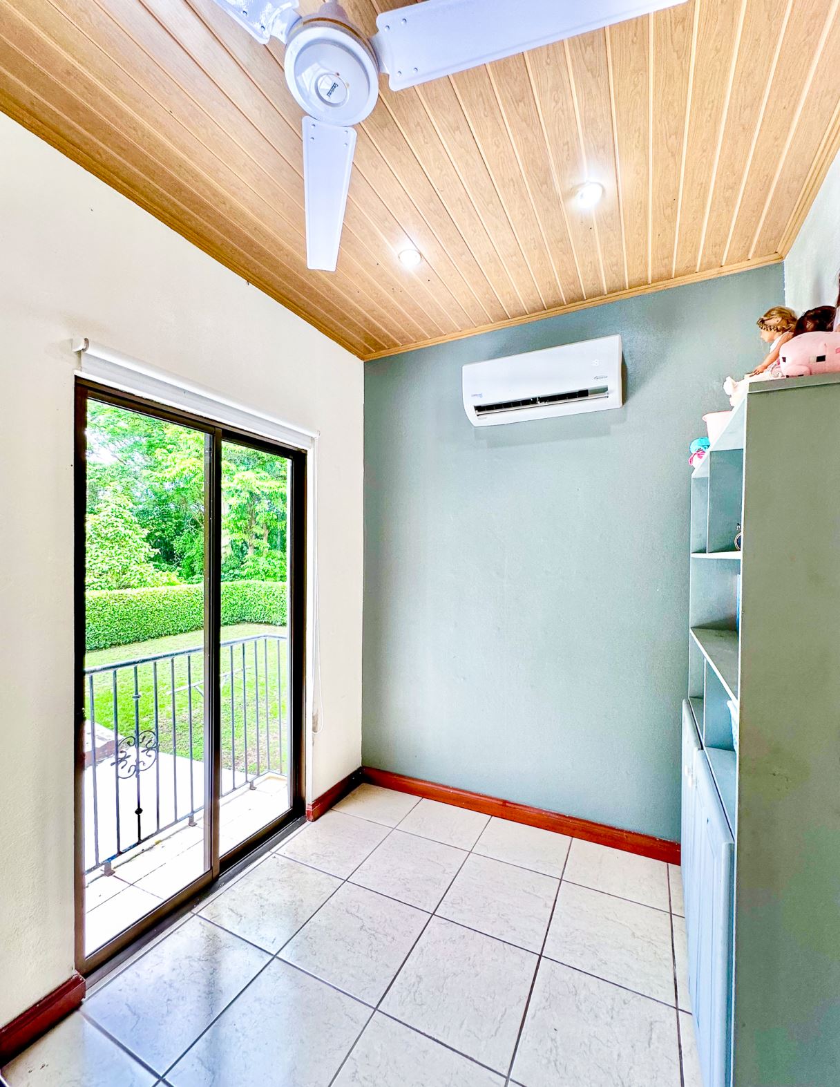 La casa cuenta con 4 habitaciones y 3.5 baños, todos equipados con aire acondicionado para su comodidad. Disfrute de las amplias terrazas frontal y trasera, perfectas para relajarse y admirar el entorno natural. Además, la propiedad incluye una oficina con aire acondicionado, ideal para trabajar desde casa.