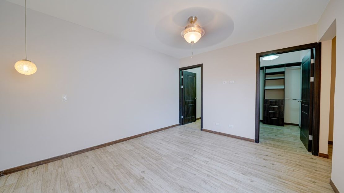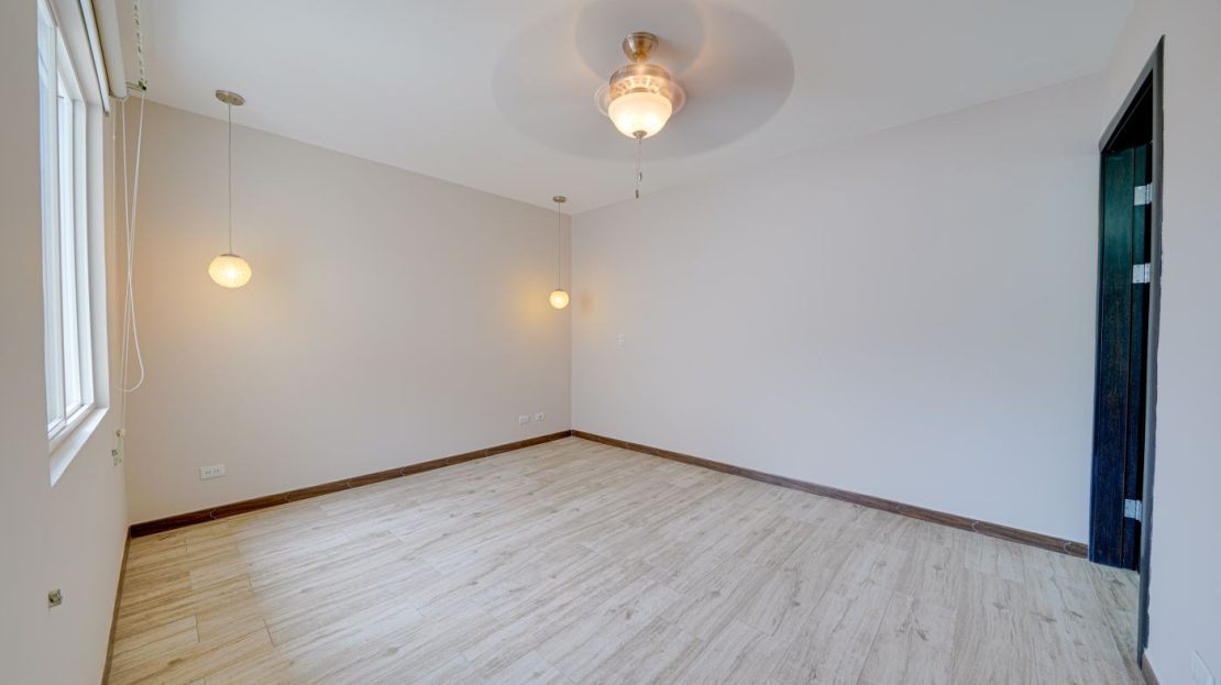 3 habitaciones con ventiladores, closets, lámparas y cortinas blackout.