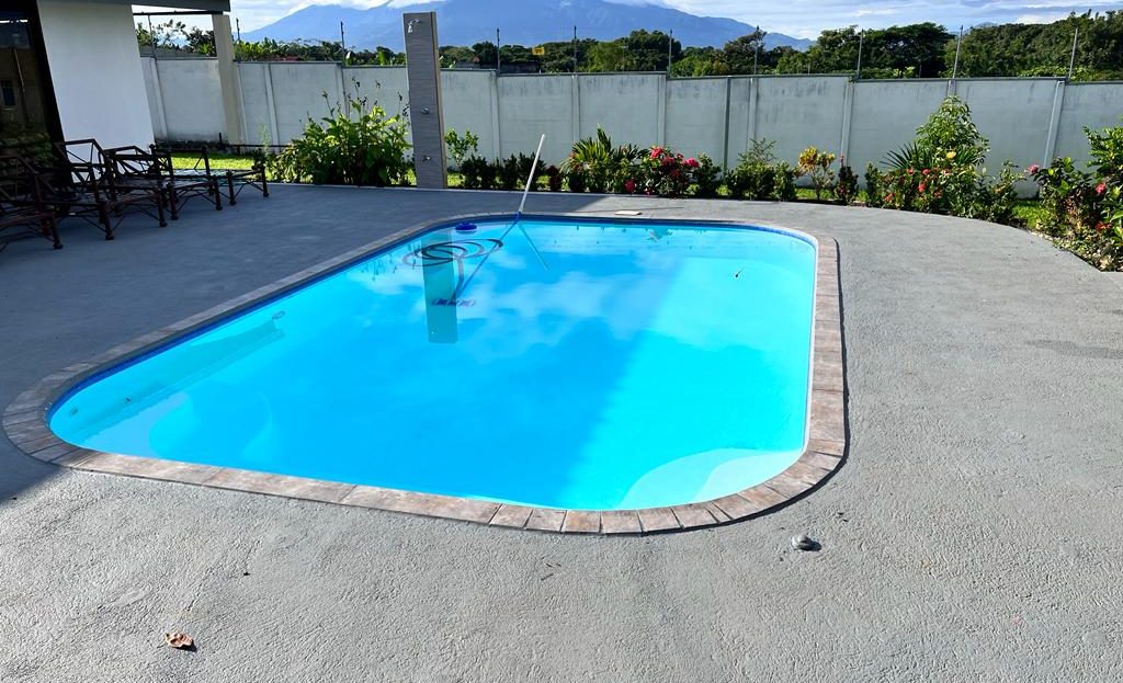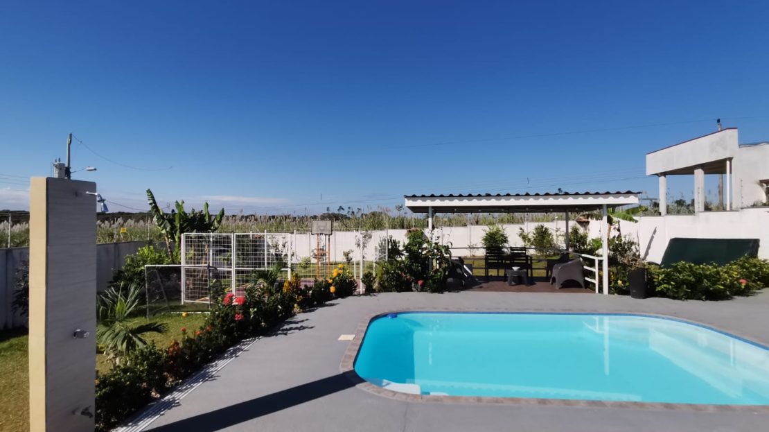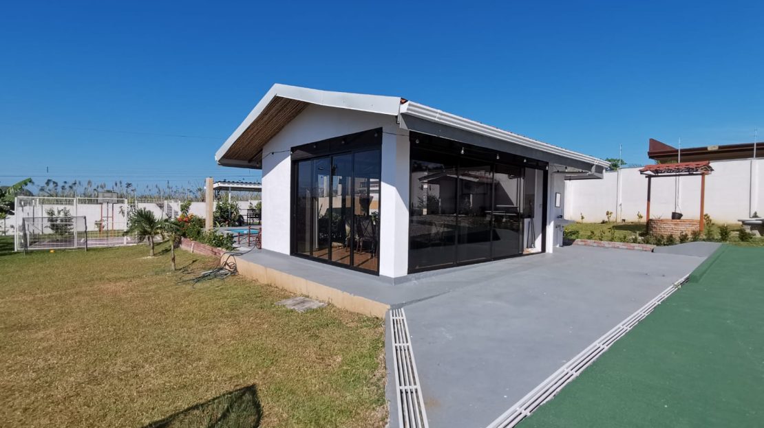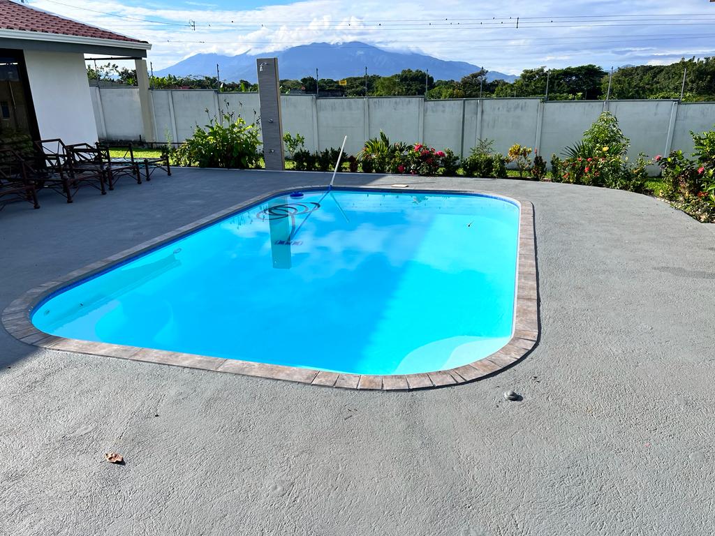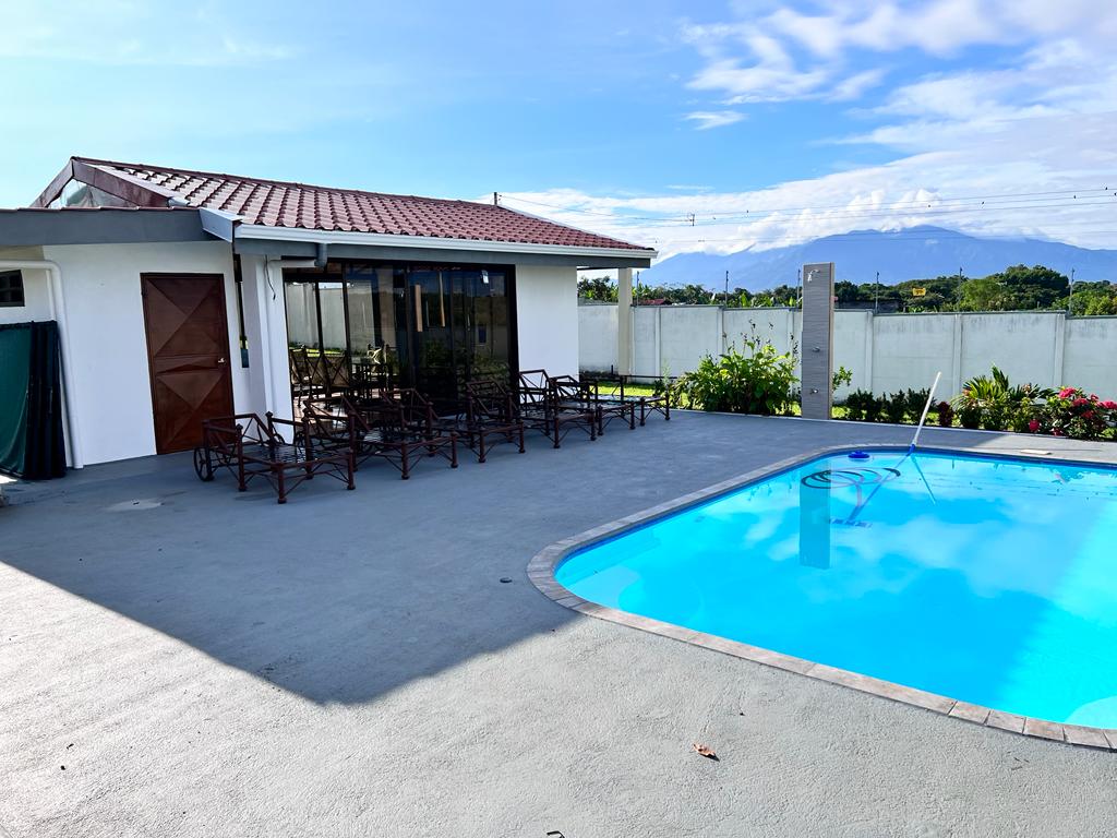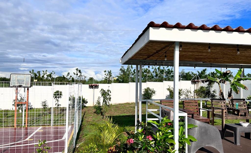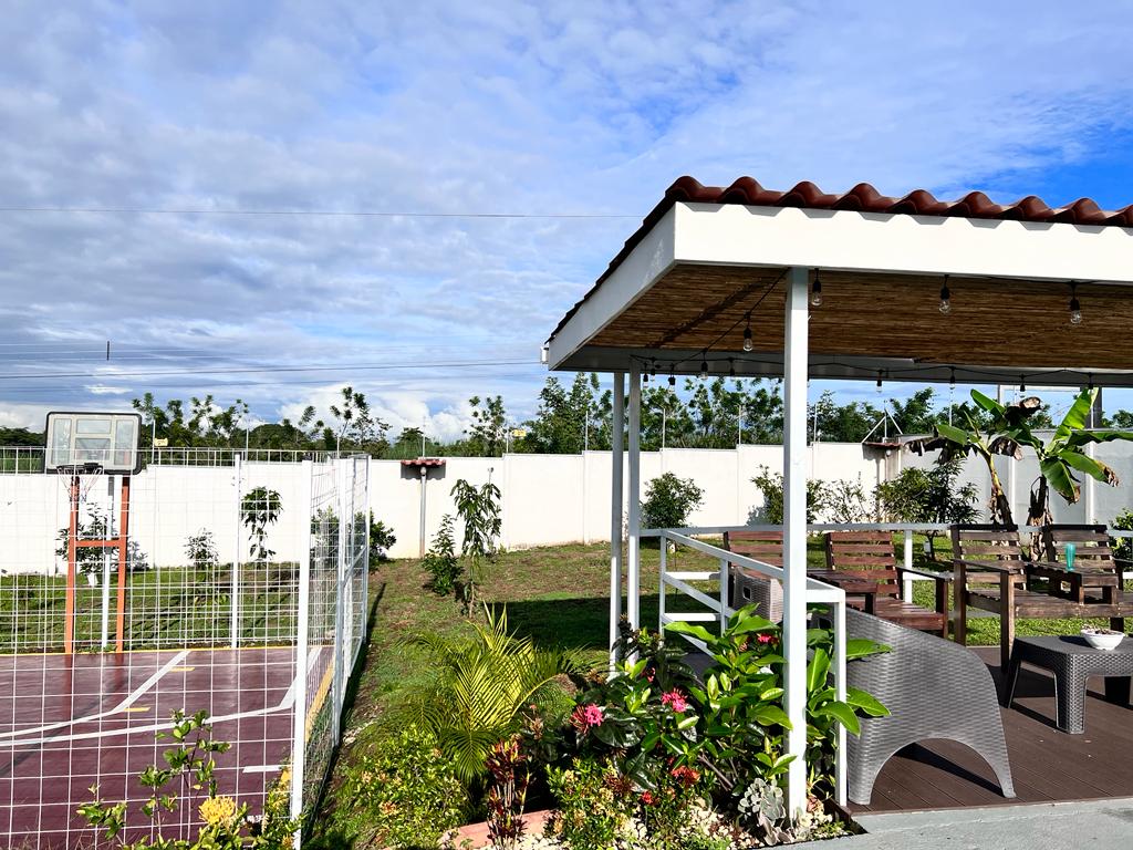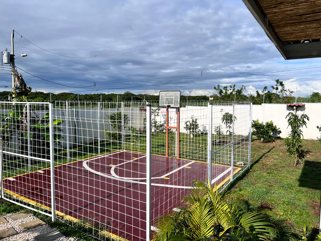 Includes all household items, refrigerators, chairs, furniture, beds, appliances, turnkey sale The farm is located on a corner lot with 2 fronts on a public street, giving it a high added value, and 3 meters above the road, which it makes it more positioned. It has its own sidewalks and gutters, as well as excellent drainage towards the gutter, which makes it a healthy and efficient land for rainwater drainage. All the land has the appropriate unevenness and underground drainage pipe. In addition, the electrical part is underground, and it has 3 load centers, one for the house, ranch and machine room (swimming pool, deck lights, basketball court and common areas. The property has walls around the entire property, duly repaired and reinforced with columns and underground. For the security system it has an alarm, electrified mesh, wireless CCTV camera system 1024 HD. Parking is for 8 cars, although green areas could be enabled and park more than 15 cars. Account with an entrance 5 meters high by 5 meters wide and a gate with pochote wood, properly cured, and special stain for exteriors, with 4 columns in the front, with Spanish fachaleta of first colonial color.In addition, at the main entrance It has white stone to allow cars to park and making it very pleasant and beautiful. Additionally, it has a decorative water well and a roof with decorative tiles. a. At the same time, it has a 6-seater bench, duly decorated with a special 3-meter outdoor cloth umbrella, with decorative luxury blocks. The ranch has an area of 55 square meters, with decorative tiles, and the ceiling with cane brava to give a tropical and refreshing look to the entire ranch and the pool deck. The ranch has two shower bath batteries, and a changing bathroom, as well as a kitchen cabinet, refrigerator, and conditioning with a Greek-style table, made of aluminum and 4-inch tempered glass. It has a large cellar, and a machine room and equipped with the pump system, Howard 1HP filter, the entire piping system for the pool and well-designed lighting. It has a pool 6 meters long by 4 meters wide and 1.60 meters deep. It has hydromassage, and a system of benches and stands inside the pool. The lighting system has 8-color LED lights. The pool has a special overflow system. Around the pool, it has a sewage system, special trellis. In the pool area there are 2 special showers and conditioned for showering, veneered. In addition, the gardening is tropical and special for pool areas with colorful flowers, giving freshness to the environment and a beautiful ecosystem. The deck has a special plastic floor for exteriors, and a 14m2 ares, equipped, lights and completely closed with iron, and a cane brava ceiling to give it a tropical, fresh and beautiful appearance. It has a basketball court, properly closed with a special cage-type iron so that the balls remain within the court. It has football frames that make it special for a football field next to the ranch. The green areas have 30 fruit trees, including citrus, star apple, avocado, gas, banana, plantain, nance, carambola. It has a 3-bedroom house, the main one with a double bed, and the other 2 rooms have cabin with double and single bed. The house has a laundry room area, a washing machine, and a shopkeeper. An open-plan and private bathroom, as well as an equipped kitchen and a living room with a dining set and armchairs and a fan. In addition, the main room has an air conditioner, the others with a fan.