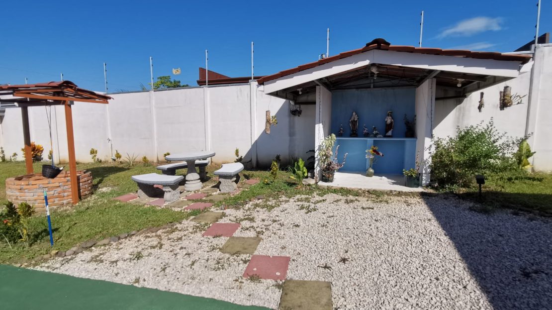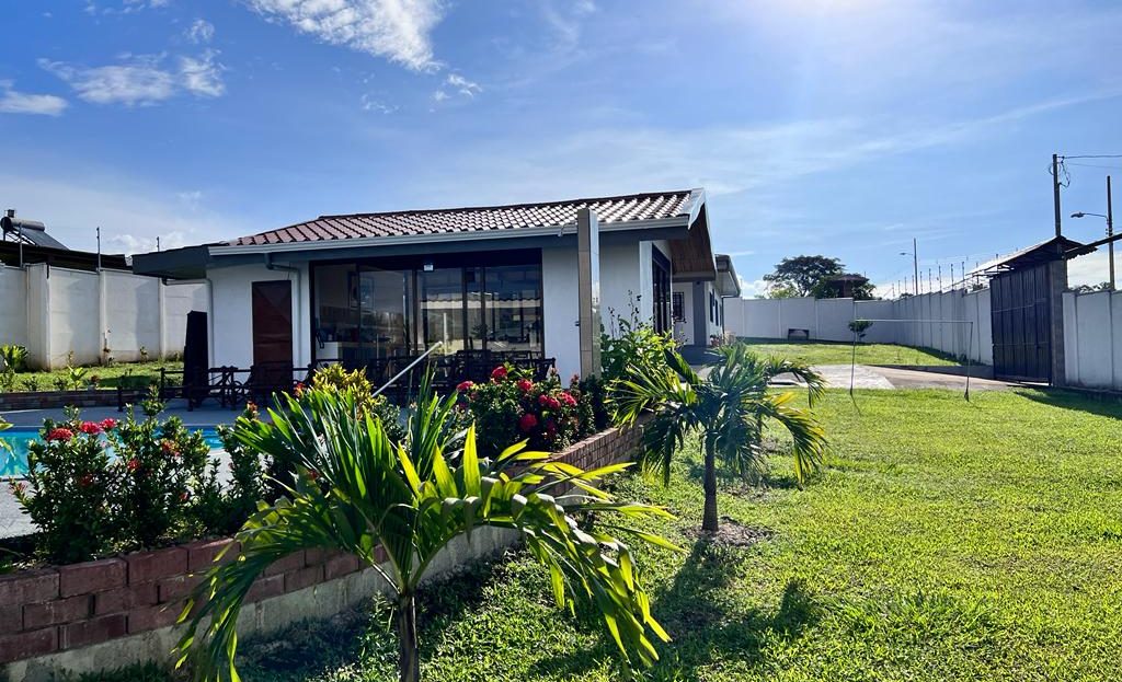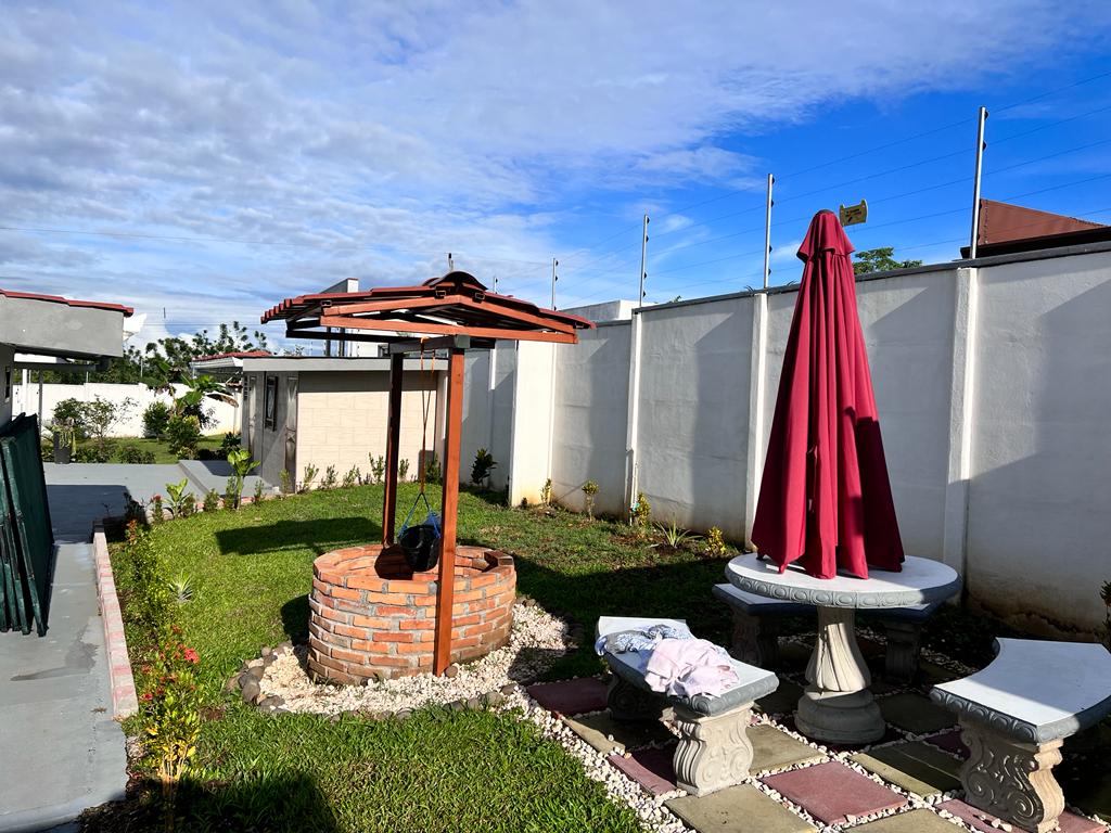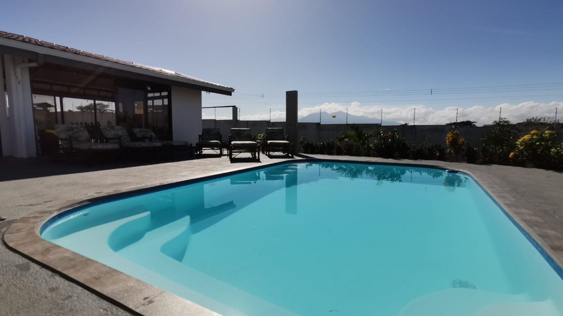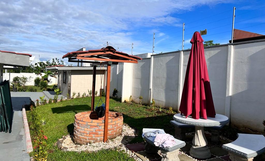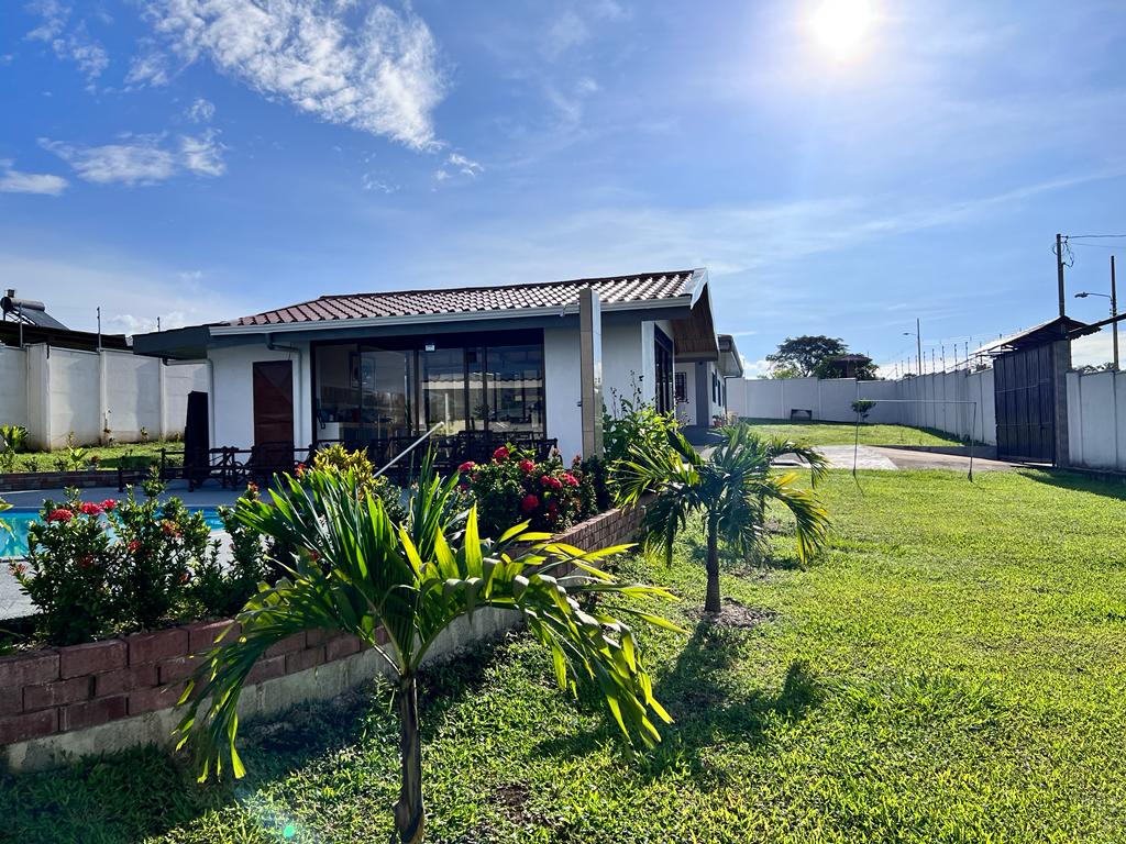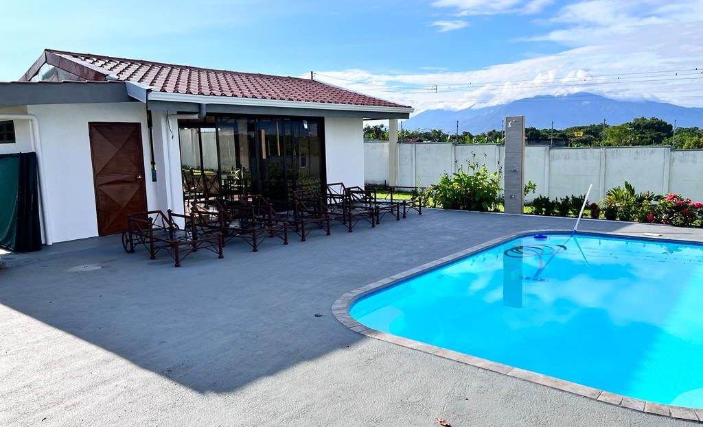 Includes all household items, refrigerators, chairs, furniture, beds, appliances, turnkey sale The farm is located on a corner lot with 2 fronts on a public street, giving it a high added value, and 3 meters above the road, which it makes it more positioned. It has its own sidewalks and gutters, as well as excellent drainage towards the gutter, which makes it a healthy and efficient land for rainwater drainage. All the land has the appropriate unevenness and underground drainage pipe. In addition, the electrical part is underground, and it has 3 load centers, one for the house, ranch and machine room (swimming pool, deck lights, basketball court and common areas. The property has walls around the entire property, duly repaired and reinforced with columns and underground. For the security system it has an alarm, electrified mesh, wireless CCTV camera system 1024 HD. Parking is for 8 cars, although green areas could be enabled and park more than 15 cars. Account with an entrance 5 meters high by 5 meters wide and a gate with pochote wood, properly cured, and special stain for exteriors, with 4 columns in the front, with Spanish fachaleta of first colonial color.In addition, at the main entrance It has white stone to allow cars to park and making it very pleasant and beautiful. Additionally, it has a decorative water well and a roof with decorative tiles. a. At the same time, it has a 6-seater bench, duly decorated with a special 3-meter outdoor cloth umbrella, with decorative luxury blocks. The ranch has an area of 55 square meters, with decorative tiles, and the ceiling with cane brava to give a tropical and refreshing look to the entire ranch and the pool deck. The ranch has two shower bath batteries, and a changing bathroom, as well as a kitchen cabinet, refrigerator, and conditioning with a Greek-style table, made of aluminum and 4-inch tempered glass. It has a large cellar, and a machine room and equipped with the pump system, Howard 1HP filter, the entire piping system for the pool and well-designed lighting. It has a pool 6 meters long by 4 meters wide and 1.60 meters deep. It has hydromassage, and a system of benches and stands inside the pool. The lighting system has 8-color LED lights. The pool has a special overflow system. Around the pool, it has a sewage system, special trellis. In the pool area there are 2 special showers and conditioned for showering, veneered. In addition, the gardening is tropical and special for pool areas with colorful flowers, giving freshness to the environment and a beautiful ecosystem. The deck has a special plastic floor for exteriors, and a 14m2 ares, equipped, lights and completely closed with iron, and a cane brava ceiling to give it a tropical, fresh and beautiful appearance. It has a basketball court, properly closed with a special cage-type iron so that the balls remain within the court. It has football frames that make it special for a football field next to the ranch. The green areas have 30 fruit trees, including citrus, star apple, avocado, gas, banana, plantain, nance, carambola. It has a 3-bedroom house, the main one with a double bed, and the other 2 rooms have cabin with double and single bed. The house has a laundry room area, a washing machine, and a shopkeeper. An open-plan and private bathroom, as well as an equipped kitchen and a living room with a dining set and armchairs and a fan. In addition, the main room has an air conditioner, the others with a fan.