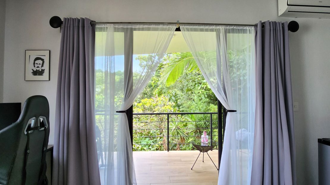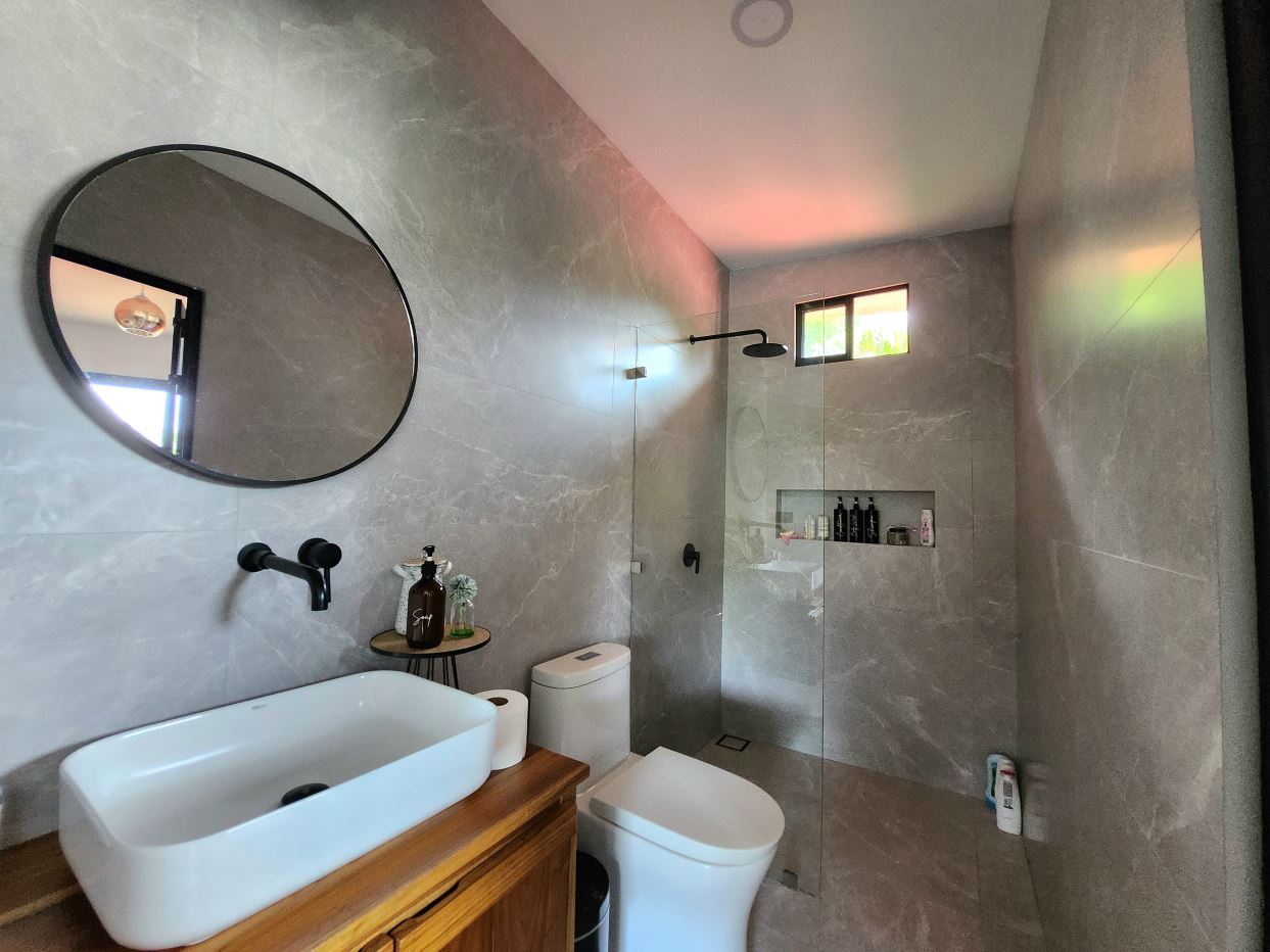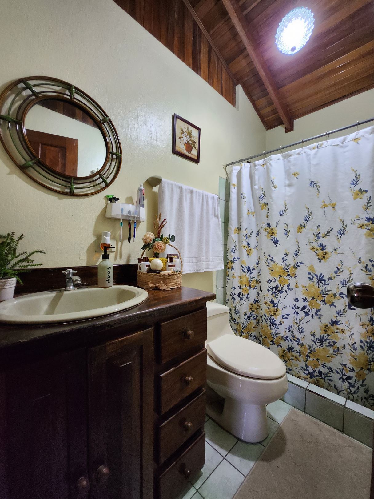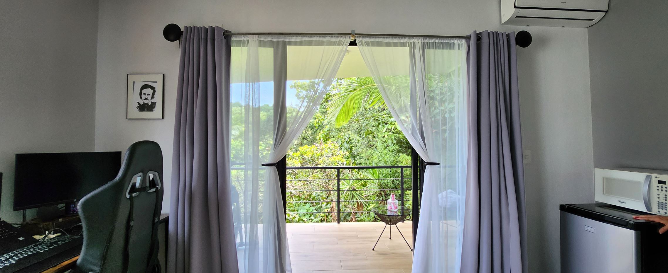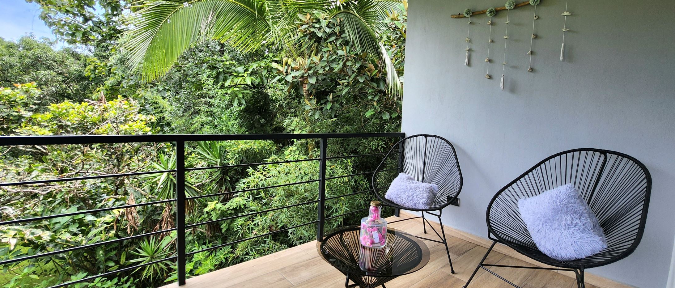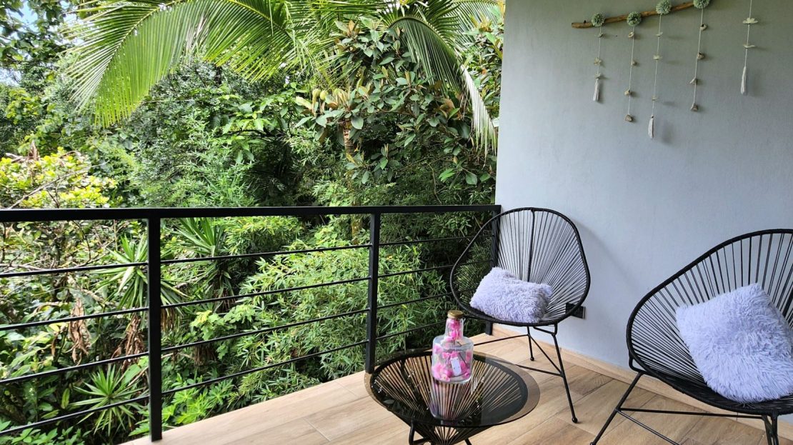 Ademas de un moderno apartamento en segunda plata que se ha construido hace 2 a;os que tiene 1 habitaciom, 1 bano, walking closet, agua caliente con calentador electrico y A/C. Este apartamento tiene una vista inmersa en el bosque de la propiedad que le da un ambiente especial y privado.