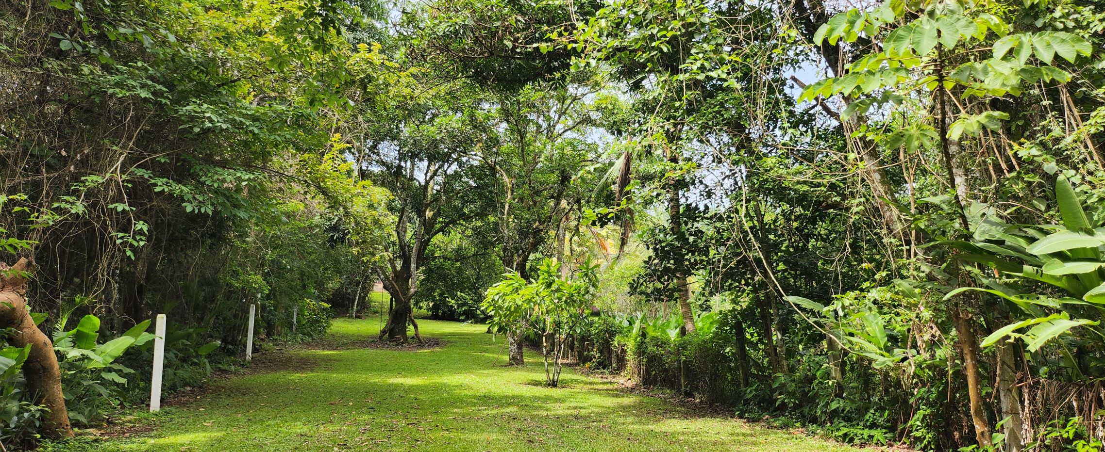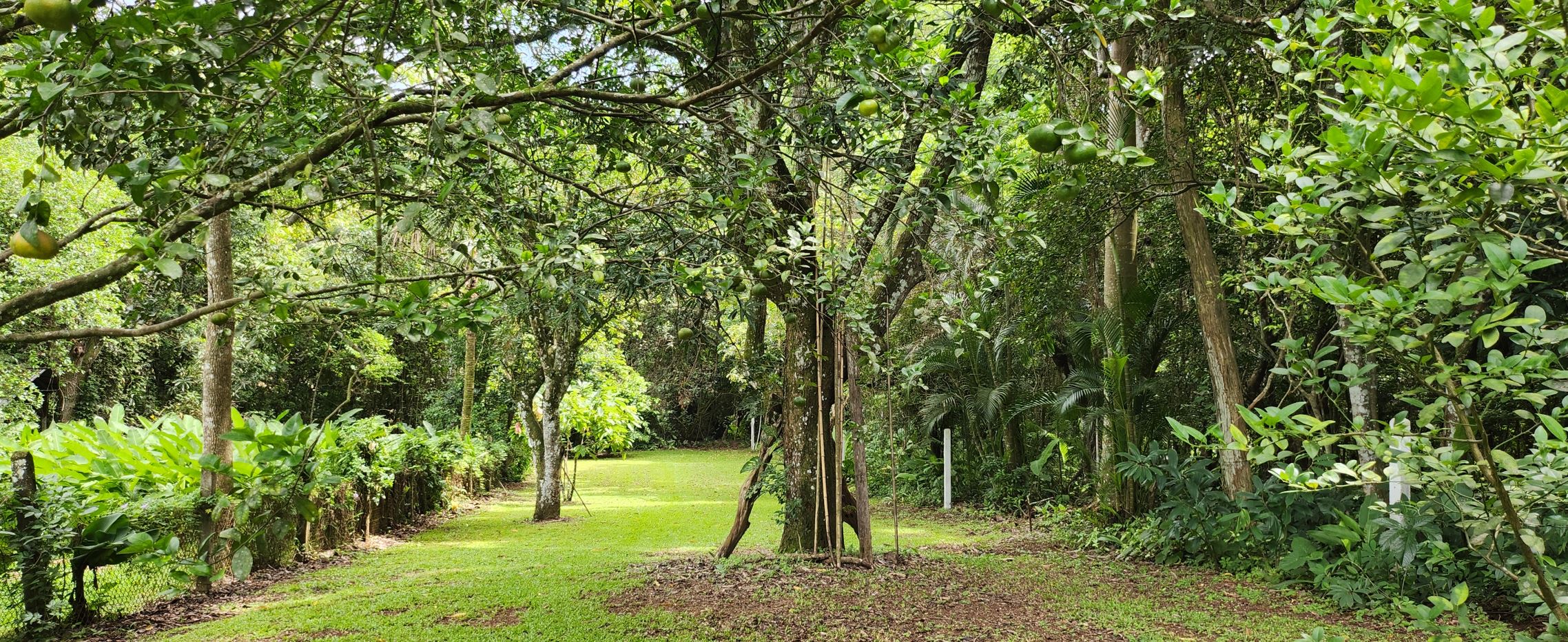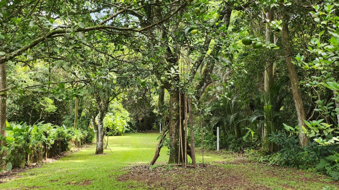 Hay arboles frutales de manzana de agua, cacao, carambola, mandarina, limon y muchos mas.