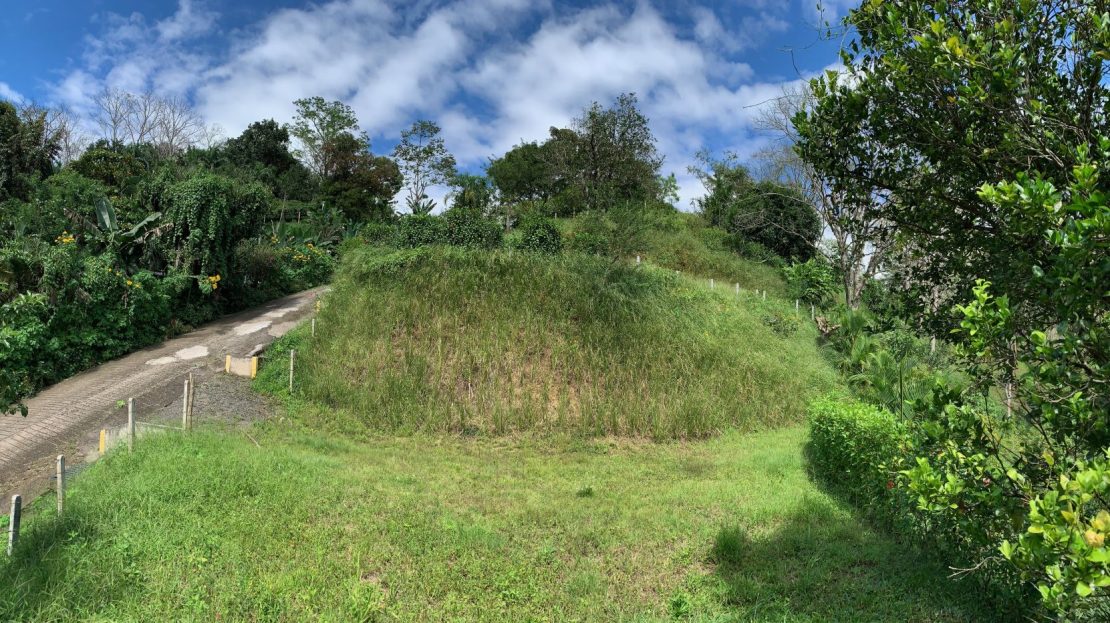 Propiedad de 13.582 m2 (3.5 acres) con 150 metros (492 pies) frente a calle publica y 280 metros (920 pies) frente al rio Cacao.