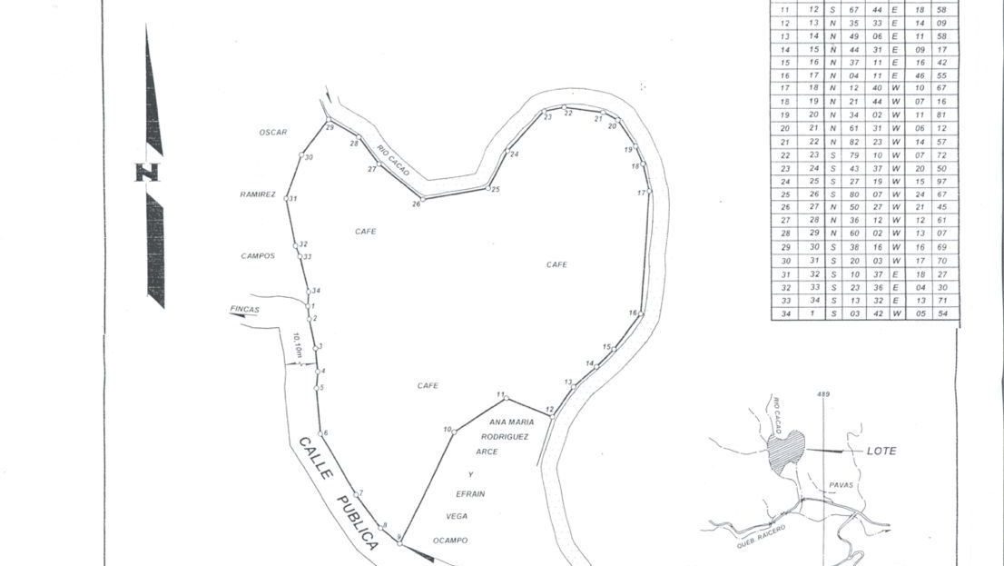13,582 m2 (3.5 acres) property with 150 meters (492 feet) of public street frontage and 280 meters (920 feet) of Cacao River frontage.Located in San Isidro de Atenas, 8 km from the city center, with paved roads, electricity, water, and internet.