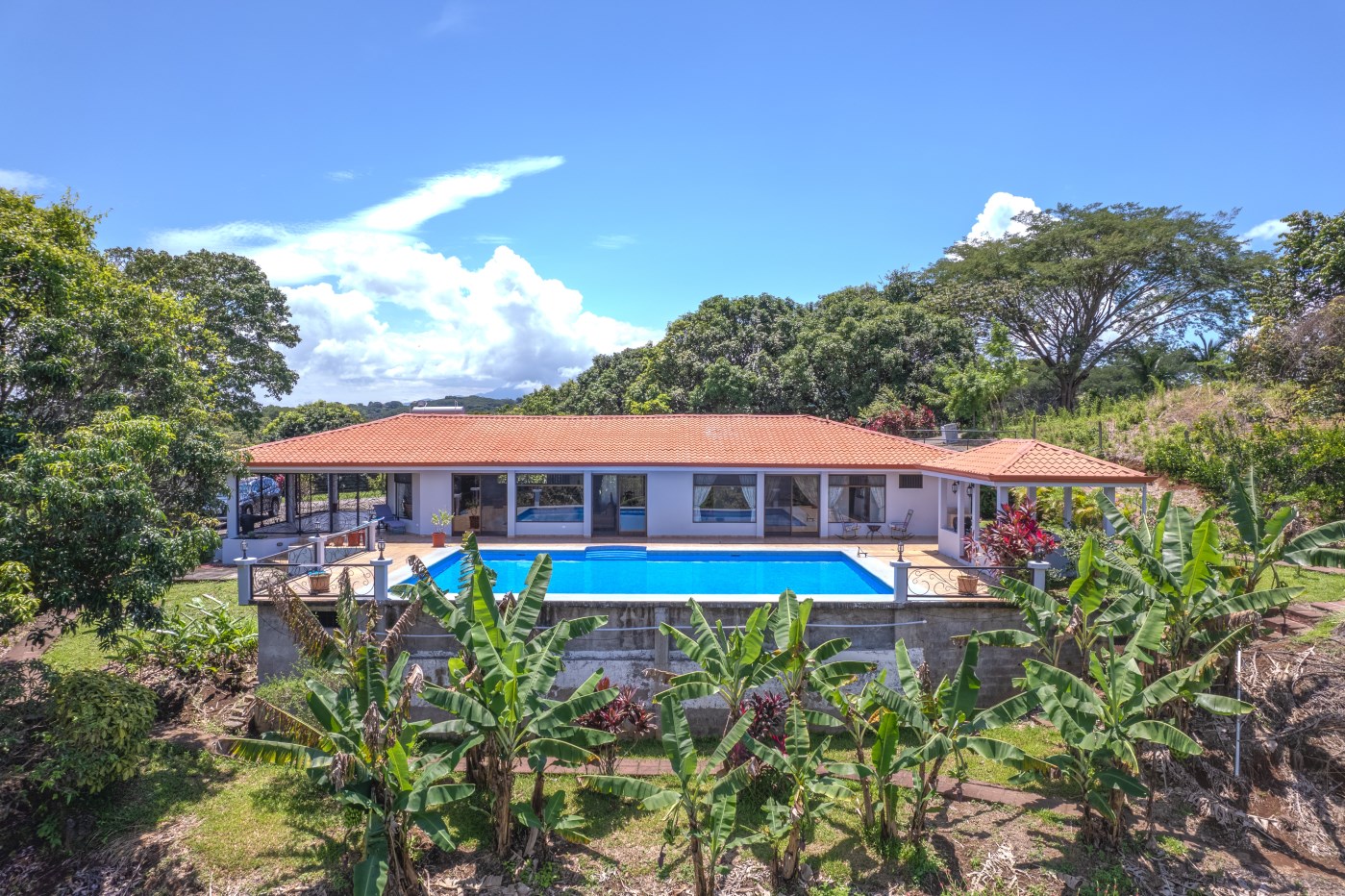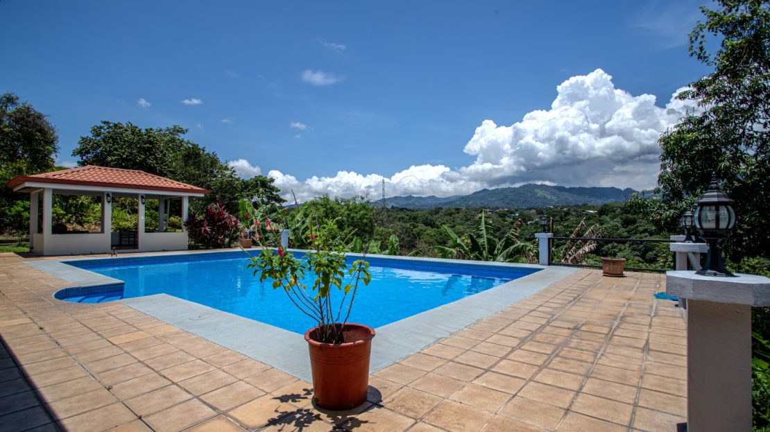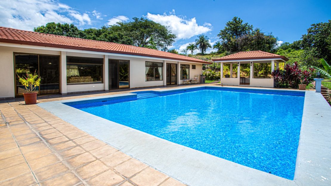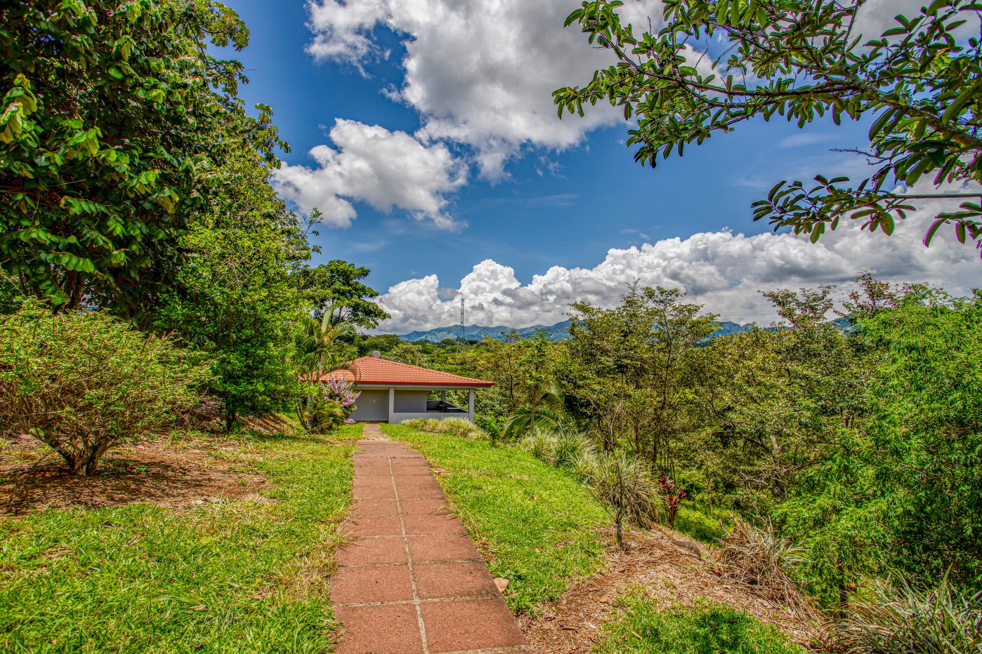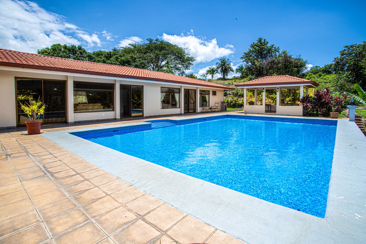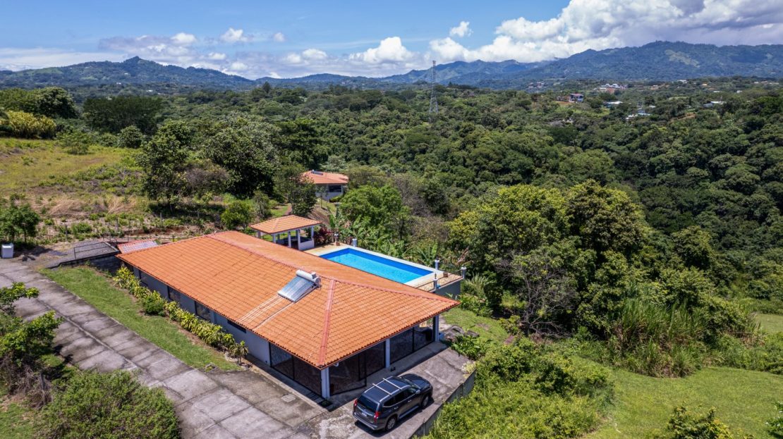 This home is perfect for those seeking a property with a home and a guest home in total privacy and the natural setting of Atenas’ wilderness. The home sits on a spacious lot 2.5 acre lot with beautiful views of the canyon and includes an adjacent 2.5 acre separate lot. There are great views towards Grecia and area mountains and is located in a private gated community just a couples minutes drive from Atenas center. It features a main home with spacious rooms, a main suite with walk-in safe-room, an open floor plan living room with tall ceilings that lead to the porch and nicely manicured garden area and inviting pool and deck perfect for entertaining and enjoying the outside living that Atenas has to offer. The property also includes a nicely designed one bedroom/one bath private guest home and additional usable space adjacent to the forest for further building as well as plenty of added space on the added lot for added projects. The home is sold with all appliances and furniture included.