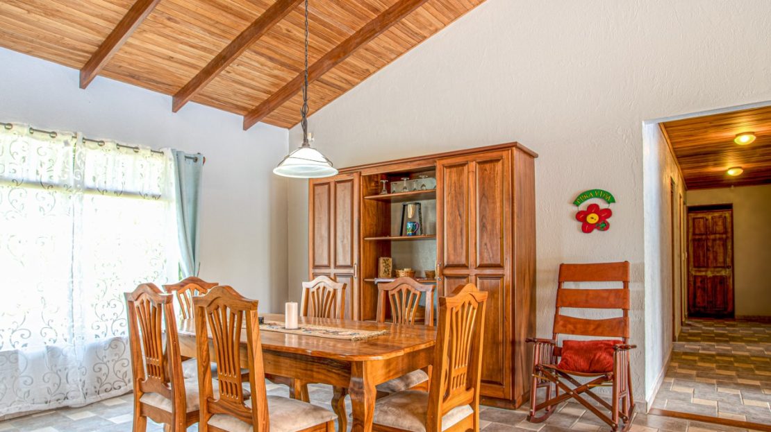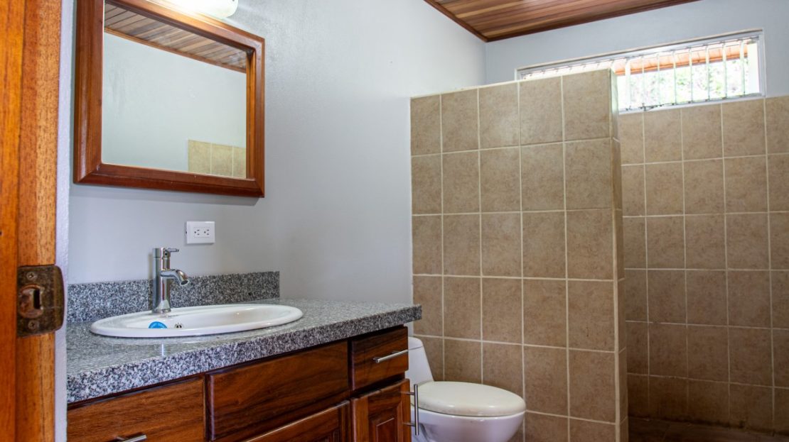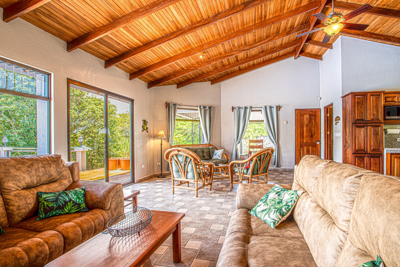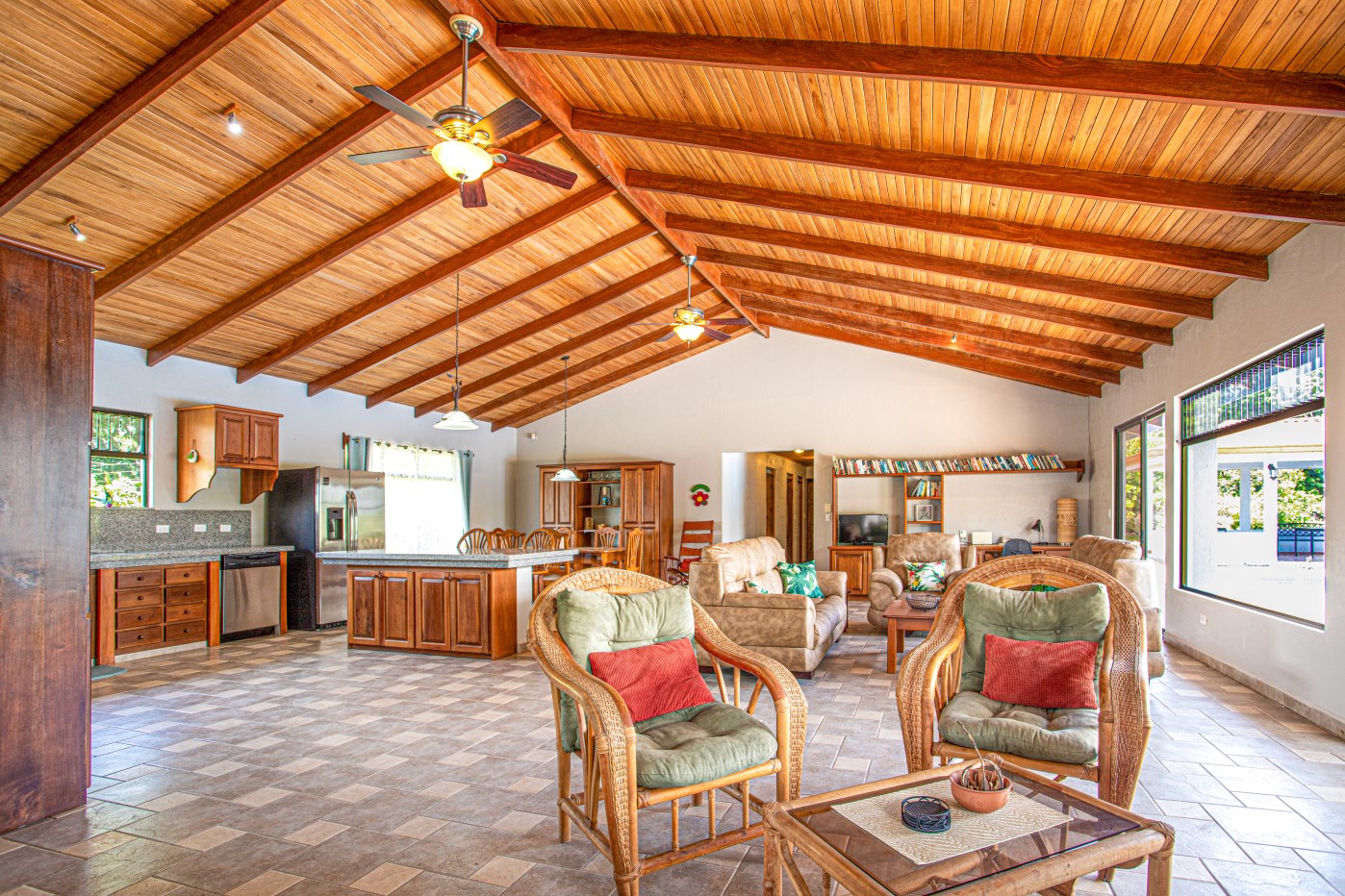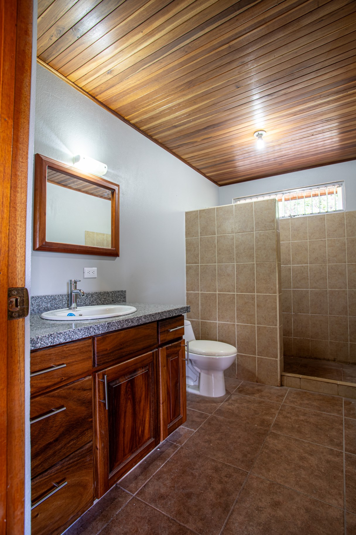 This home is perfect for those seeking a property with a home and a guest home in total privacy and the natural setting of Atenas’ wilderness. The home sits on a spacious lot 2.5 acre lot with beautiful views of the canyon and includes an adjacent 2.5 acre separate lot. There are great views towards Grecia and area mountains and is located in a private gated community just a couples minutes drive from Atenas center. It features a main home with spacious rooms, a main suite with walk-in safe-room, an open floor plan living room with tall ceilings that lead to the porch and nicely manicured garden area and inviting pool and deck perfect for entertaining and enjoying the outside living that Atenas has to offer. The property also includes a nicely designed one bedroom/one bath private guest home and additional usable space adjacent to the forest for further building as well as plenty of added space on the added lot for added projects. The home is sold with all appliances and furniture included.