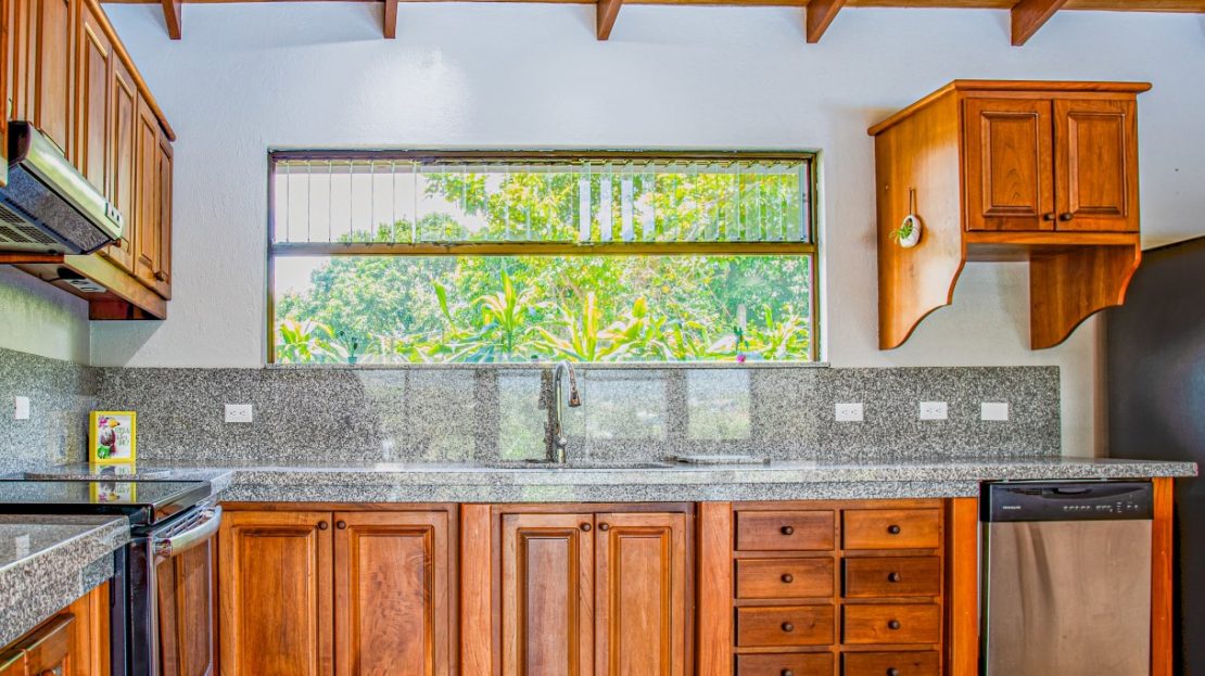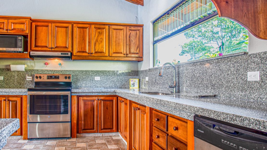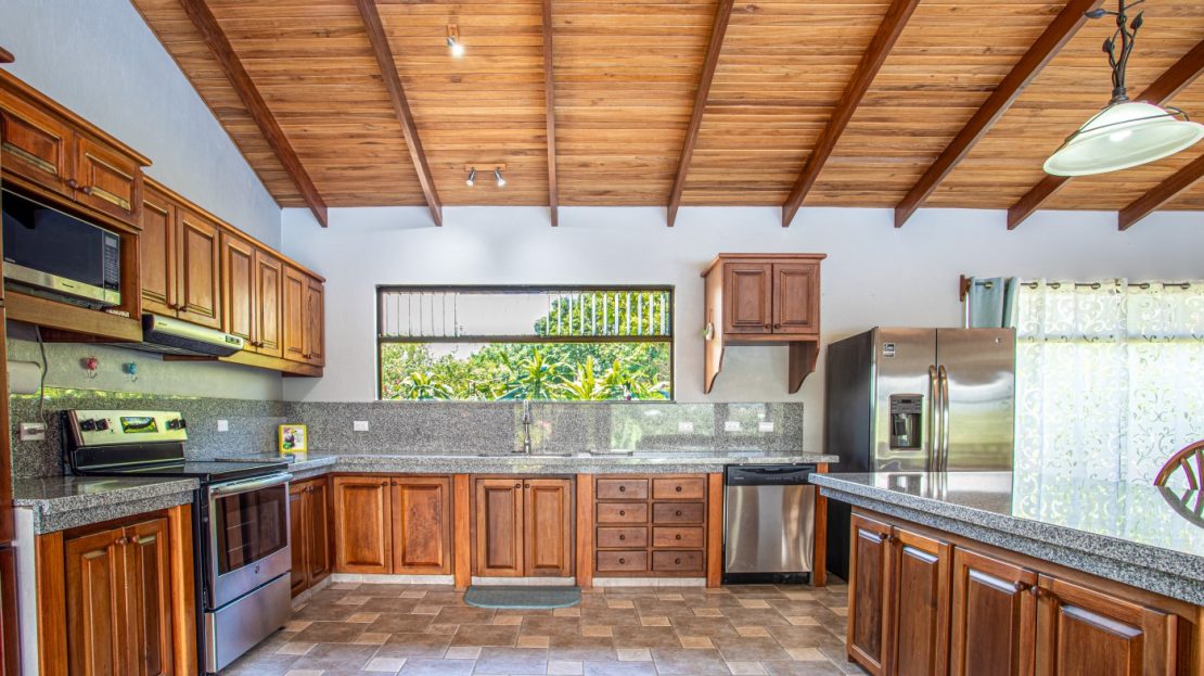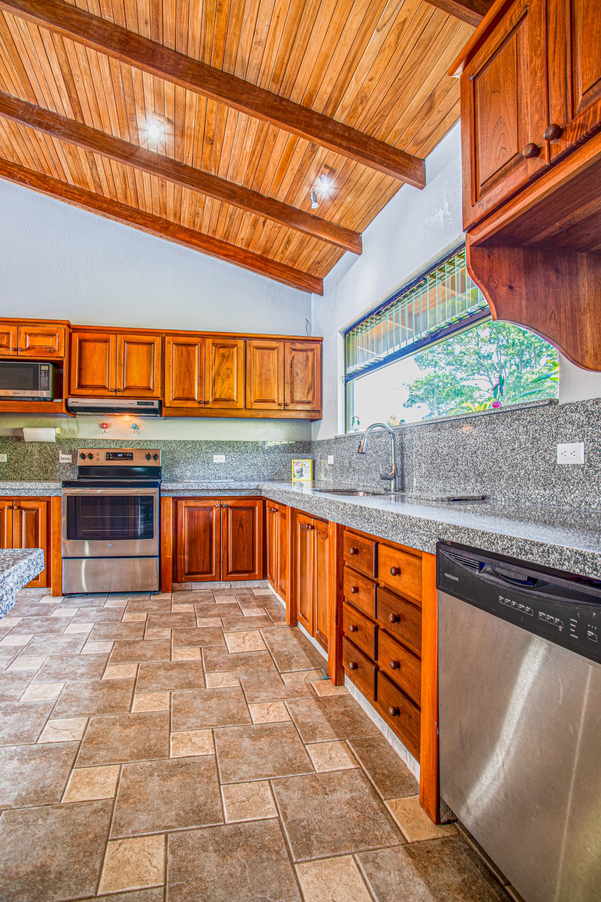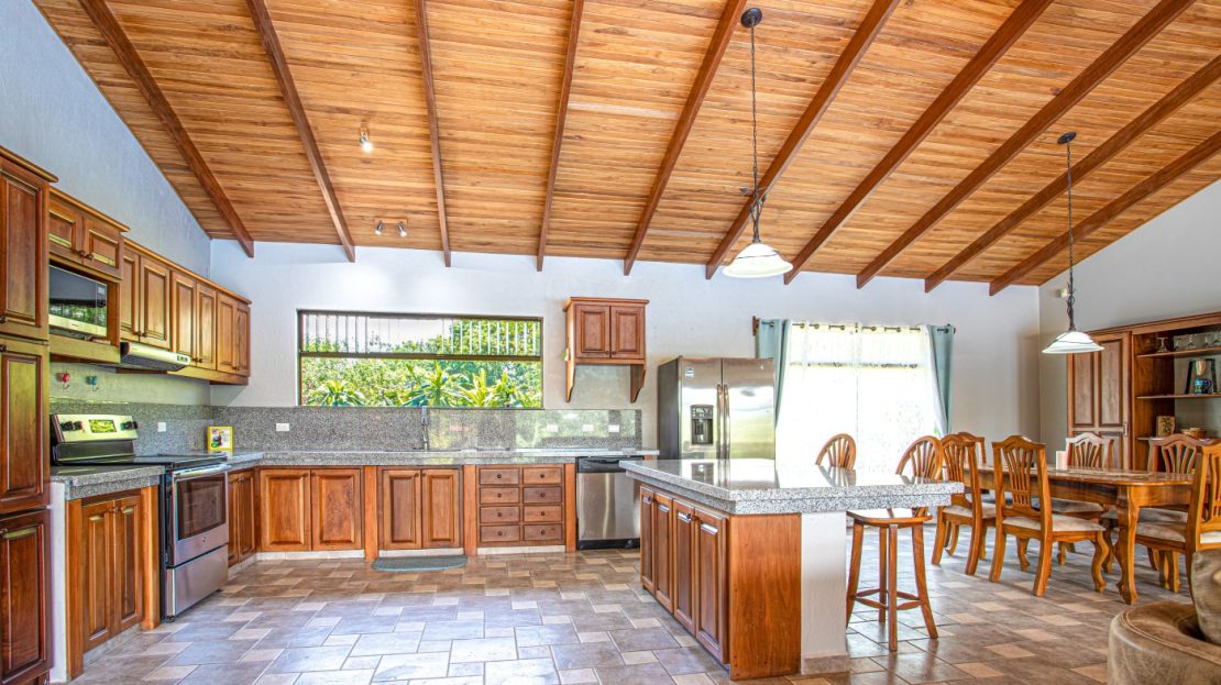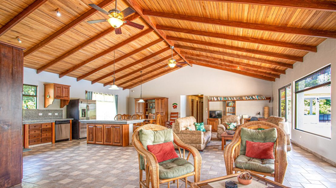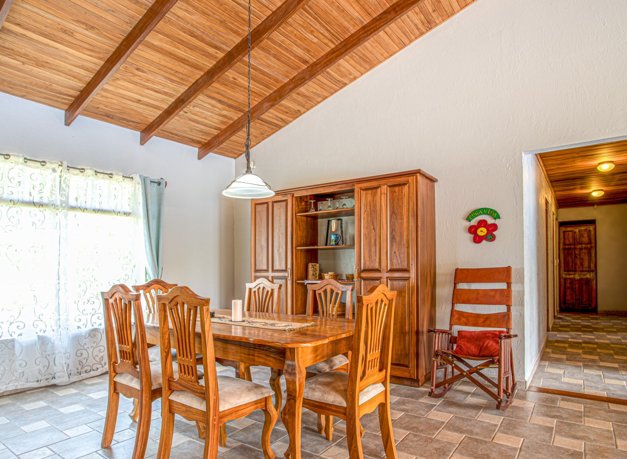 This home is perfect for those seeking a property with a home and a guest home in total privacy and the natural setting of Atenas’ wilderness. The home sits on a spacious lot 2.5 acre lot with beautiful views of the canyon and includes an adjacent 2.5 acre separate lot. There are great views towards Grecia and area mountains and is located in a private gated community just a couples minutes drive from Atenas center. It features a main home with spacious rooms, a main suite with walk-in safe-room, an open floor plan living room with tall ceilings that lead to the porch and nicely manicured garden area and inviting pool and deck perfect for entertaining and enjoying the outside living that Atenas has to offer. The property also includes a nicely designed one bedroom/one bath private guest home and additional usable space adjacent to the forest for further building as well as plenty of added space on the added lot for added projects. The home is sold with all appliances and furniture included.
